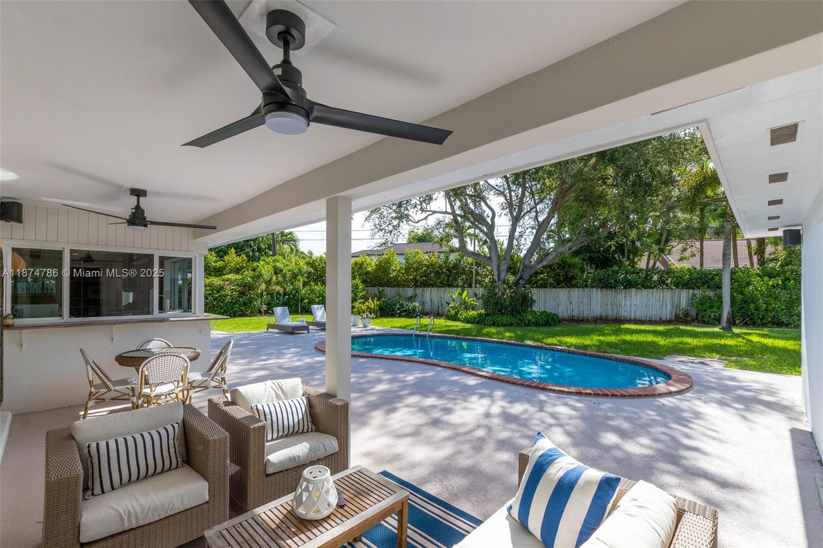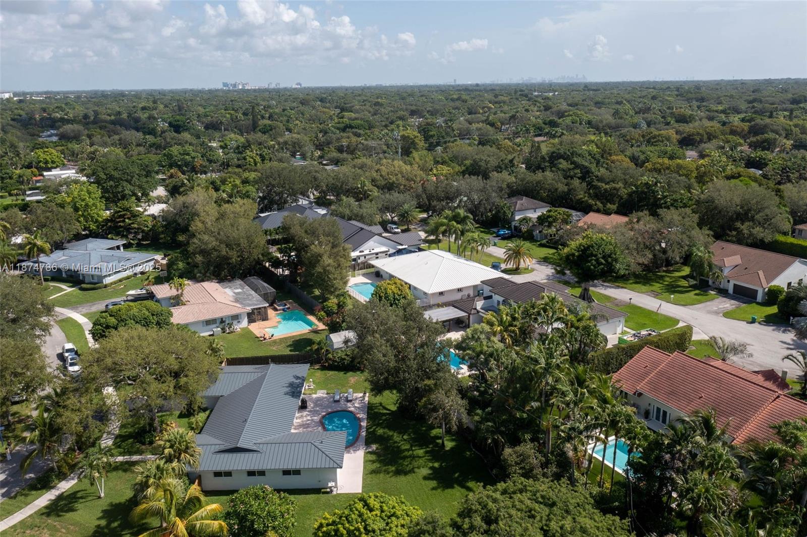 Gorgeous 4 bdrm, 2 bath home on a spectacular oversized lot in Palmetto Bay. Newly painted exterior. New metal roof installed: 2023. Impact windows. Sun-filled formal living & dining rms w/ gorgeous floor to ceiling windows, plantation shutters & neutral tile floors. Open kitchen features oversized island w/ seating, double ovens, gas stove & sliding corner windows w/ adjacent family rm complete w/ cozy bookshelves. Primary suite overlooks the lovely backyard, has walk-in closet & bath w/ glass enclosed shower, jetted tub, double sinks. Lush, private backyard w/ mature trees, fully fenced w/ double gate; plenty of space to park your boat or build a pickle ball court! Plus pool, covered patio. 2 car garage.