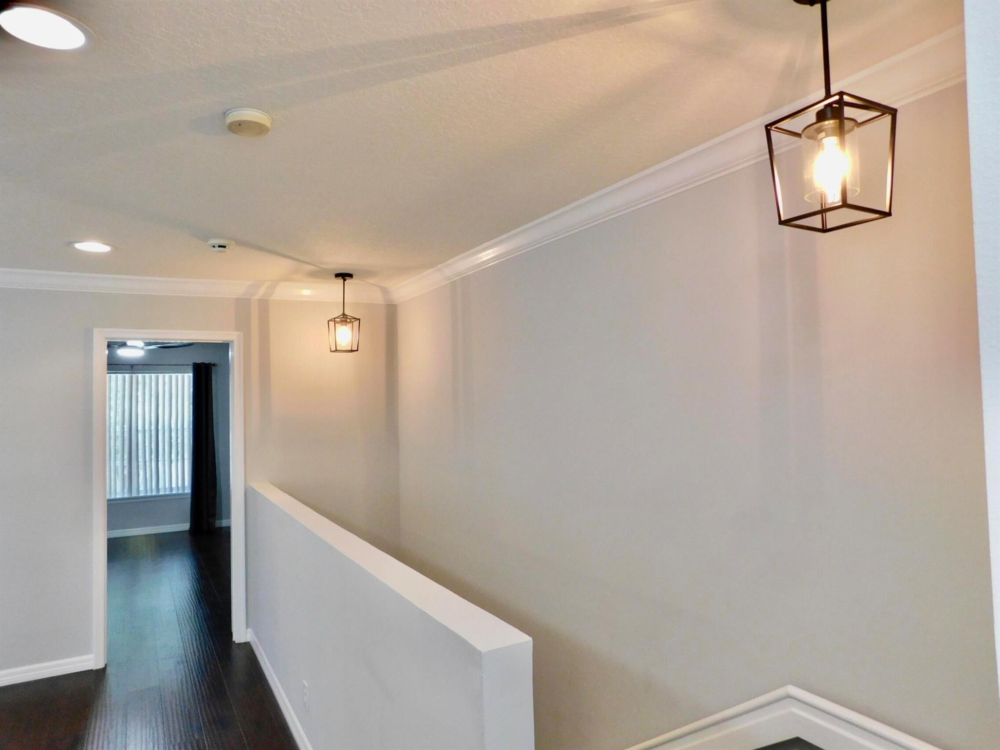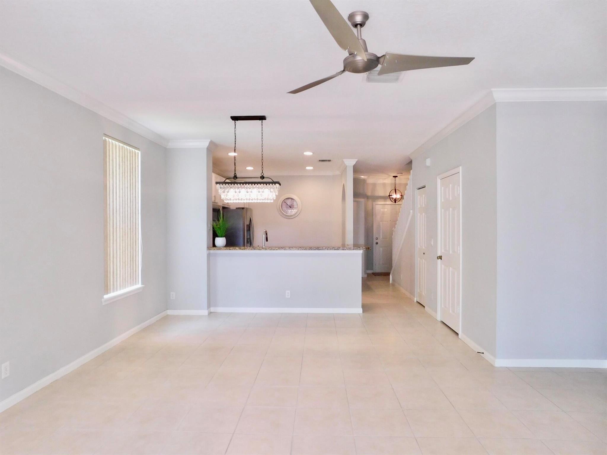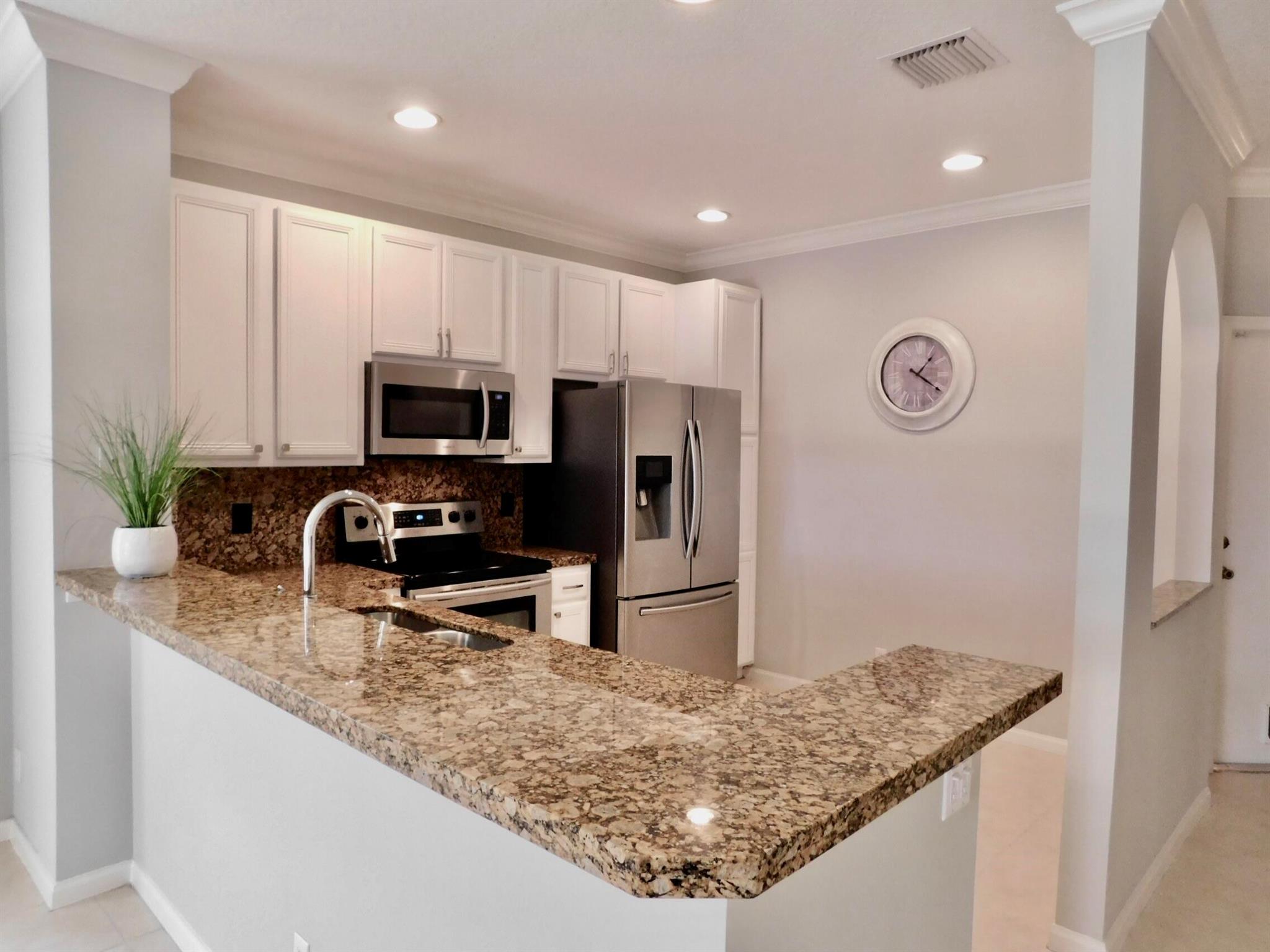 Best location in Verona Lakes! 9653 Porta Leona Ln. is a 2 bed+loft/3rd bedroom, 2.5 bath,1 car garage, sought-after end unit townhome with no rear neighbors.This desirable Siena corner model offers more natural light and more privacy, a larger lot, a cul-de-sac location, and a 2024 roof and driveway! Immaculately maintained with an open-concept floor plan with stainless steel appliances, including a large French-door refrigerator, granite counters and backsplash, white 42'' kitchen cabinetry, crown molding throughout, decorative arches, trendy light fixtures, and many more stylish designer touches. No carpet anywhere-elegant dark wood laminate flooring upstairs and tile downstairs, as well as accordion hurricane shutters on every window for safety and convenience. Upstairs you will find