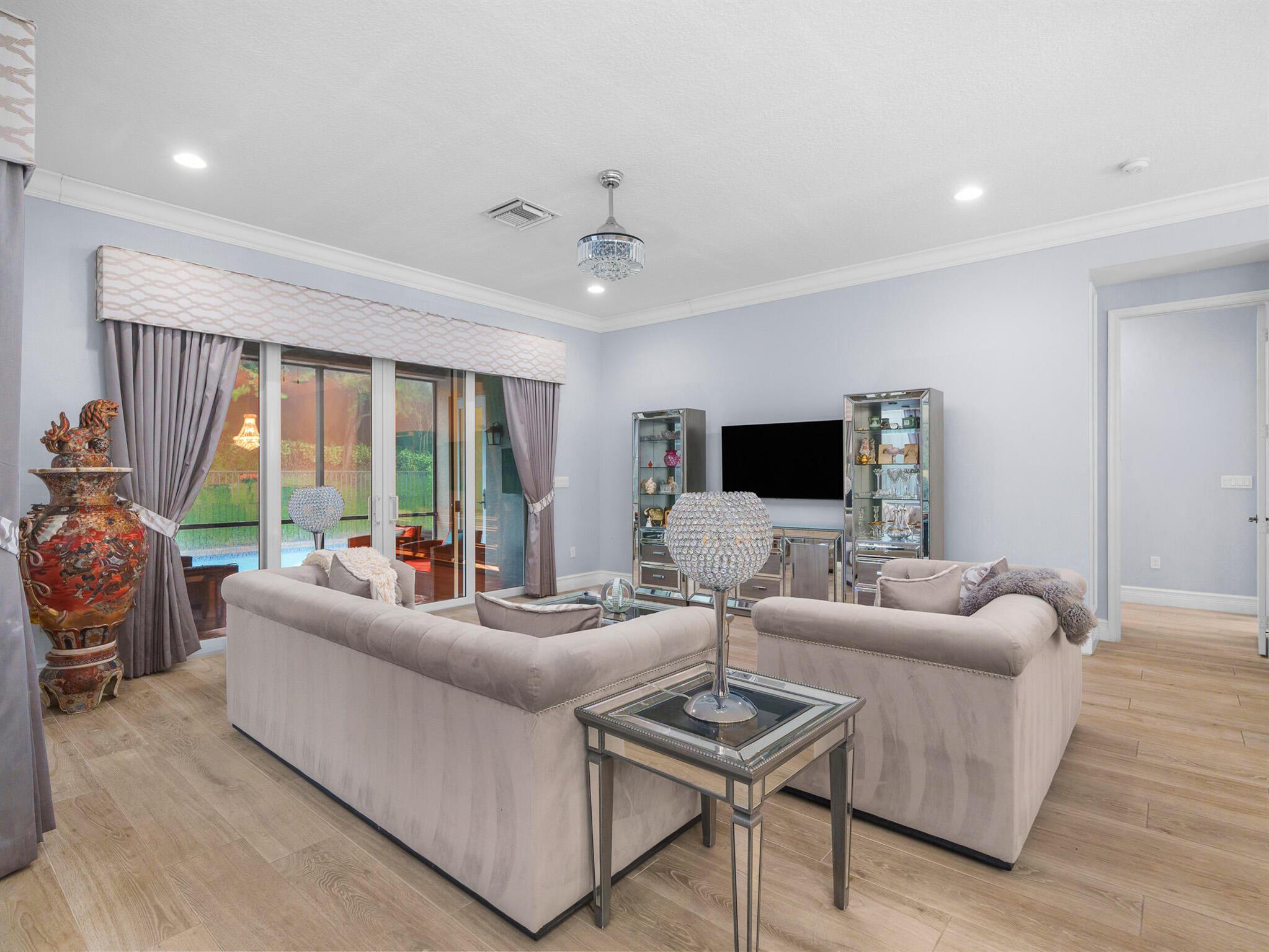 This beautiful custom home is 3002 total sf, and 2009 sf of living space, 3 bedroom, 3 full bath + Den/office, or 4th bedroom, 2 car garage, The Bimini model sits on a private lot. Includes impact windows, open floor plan, all custom floors, recessed lights with custom light package and custom trim package . The gourmet kitchen w quartz countertops, custom backsplash, built-in pantry cabinet, stainless steel appliances and under cabinet lighting. Breakfast area, dining room . Can be sold furnished or unfurnished. Screened Patio, heated pool. New ultra quiet generator, with buried LP Tank, fenced yard. HOA provides Lawn, all garden maintenance, sprinklers basic cable, clubhouse amenities.