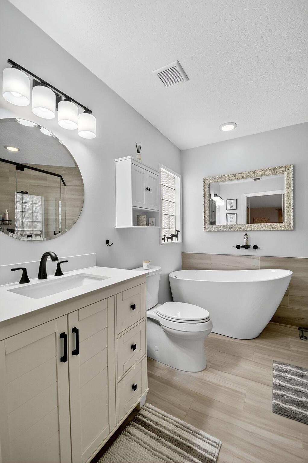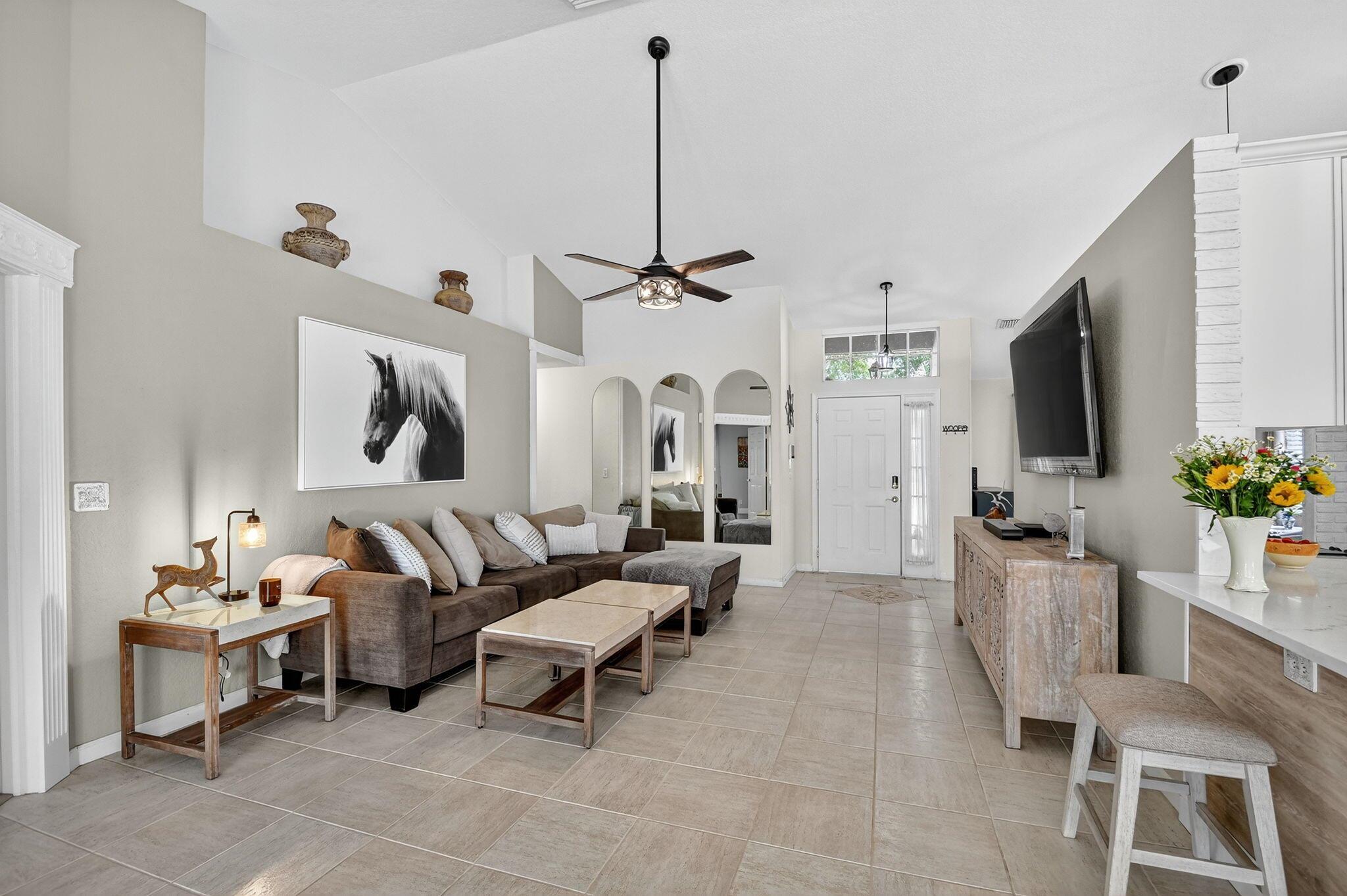 Looking for your Florida dream home? This stunning lakefront property has been completely updated with warm, inviting finishes and breathtaking views! Kitchen remodeled in 2024 with luxury upgrades including quartz countertops, bathrooms tastefully updated, and a Screened patio with serene lake views to enjoy your morning coffee or a relaxing barbecue at the end of the day. The open floor plan offers a separate Den for retreating to read a good book or enjoying some ''me'' time. A/C 2006, W/H 2024, roof original but in great condition. Community offers Resort-style community pool, fitness center & tennis courts. Low HOA includes cable, ADT, landscaping & more! Close to shopping, dining, and everything you need. Don't just dream it--live the Florida lifestyle!