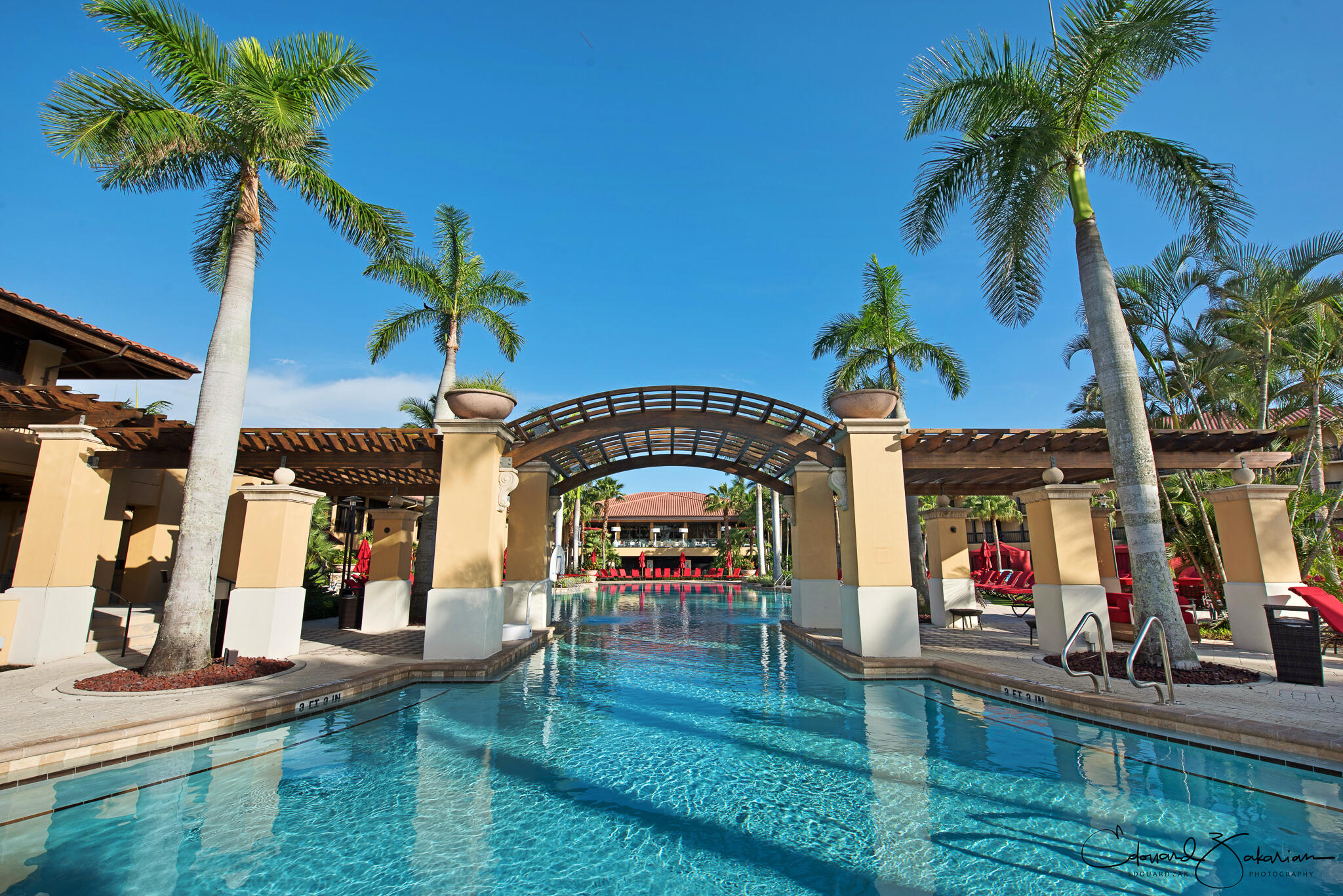 Discover luxury living in the heart of PGA National's prestigious Marlwood. Perfectly situated on the 13th hole of The Match Course, this elegant 5-bedroom, 3 full bath 2 half bath estate (including a private casita) blends timeless design with resort-style amenities offering the ultimate in South Florida living.The main residence features 4 bedrooms, 2 full bath and 2 half baths, with a thoughtfully designed layout ideal for entertaining. A custom wood front door with glass accents welcomes you into marble-clad living spaces, a sunken living room with sliders to the pool, custom wall coverings, designer lighting, recessed lighting, and skylights. A tranquil water feature and artful details, including sculptures that convey, enhance the home's serene ambiance.