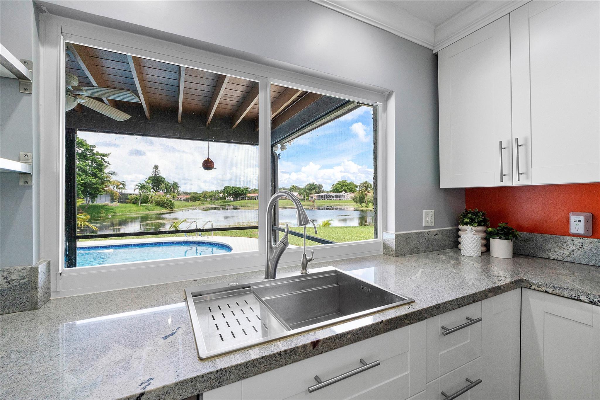 WOW! What an incredible water view in Westchester - west Coral Springs! This private backyard can be your tropical vacation every day! This Remodeled open concept 3 bed 2 bath home + media/bonus room is move-in ready - just waiting for you. Perfect location on a quiet cul-de-sac with NO HOA. Features include: 2012 Roof, 2020 Impact windows/doors, modern kitchen & fixtures, AC system 2018, new exterior electrical panel 2024, new floors 2018, water heater 2023., freshly painted & SO MUCH MORE! Close to: Coral Springs dog park/playground; Incredible Ice, Sawgrass Springs MS, Coral Glades HS, Westchester ES & the Aquatic Center/Fitness Center. This home is perfect for kayaking, canoeing, fishing, floating in your pool & watching wildlife. MUST SEE HOME!