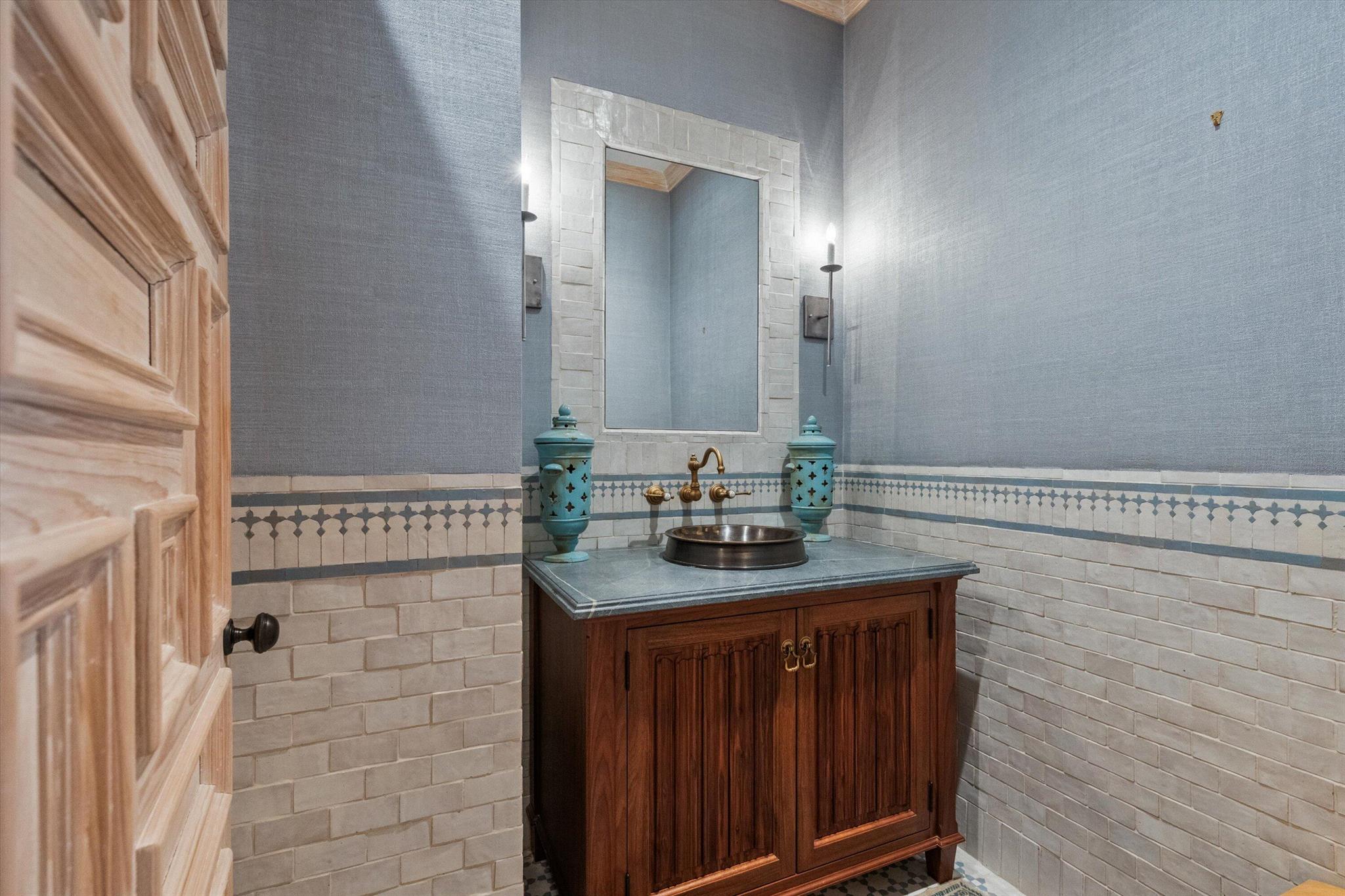 Stunning ocean block, custom 4-bedroom, 4.2-bath home spans 6,030 sq. ft. and showcases timeless elegance with modern luxury. Designed by Thomas Kirchhoff, the residence features a first-floor master suite, study, and a chef's kitchen with a center island opening to a spacious family room and screened loggia overlooking a lush yard, pool/spa, and cabana bath. Upstairs offers three en-suite bedrooms, a sitting room, a wet bar, laundry, and a large terrace--perfect for guests. High end finishes include extensive pecky cypress woodwork, custom millwork, 10-foot ceilings, a wine wall with a 450-bottle fridge, two gas fireplaces, multiple fountains, and a two-car garage. Deeded beach access and a full house generator complete this exceptional offering.