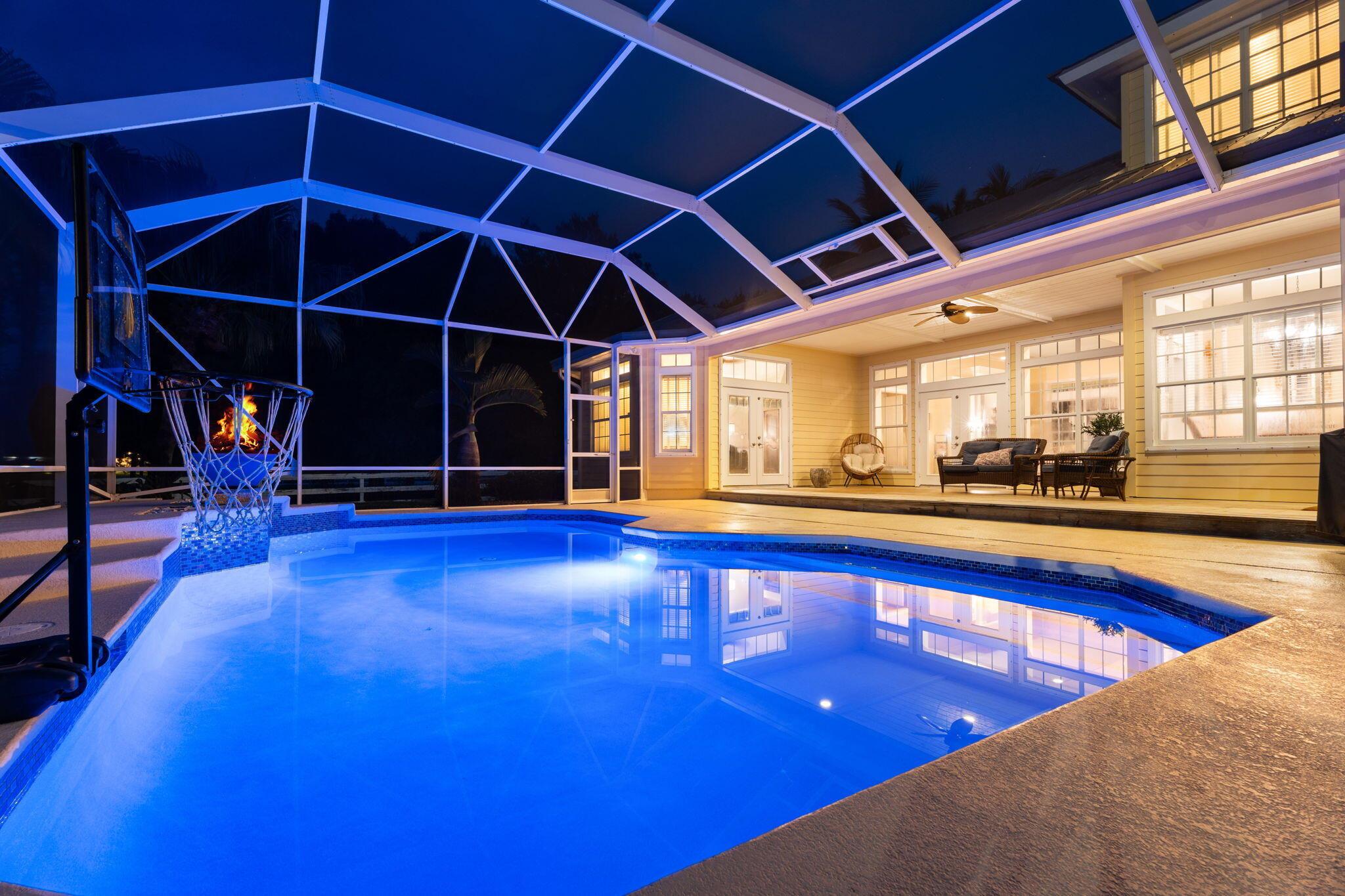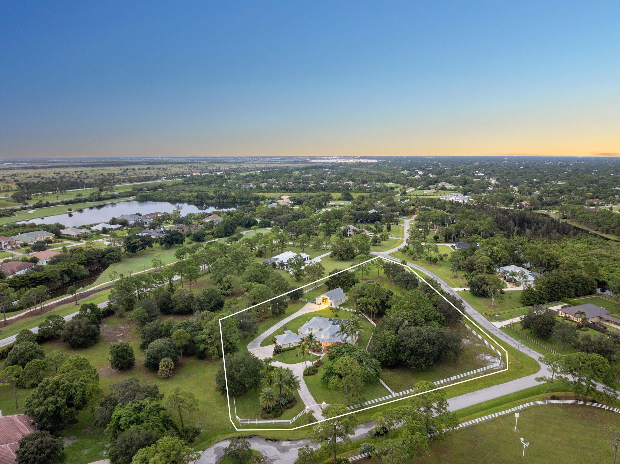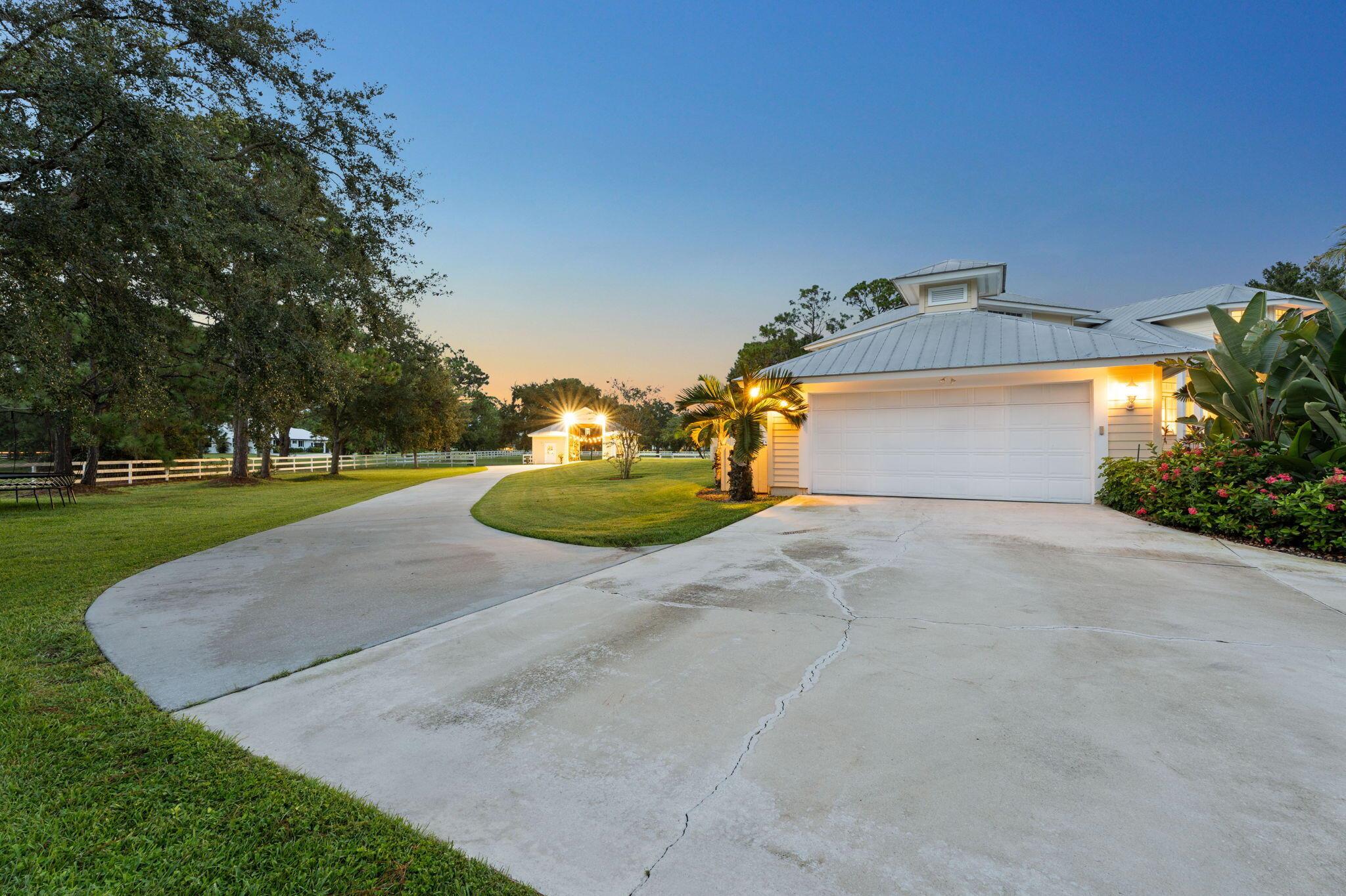 Over 4 acres of dry, fully usable and fenced land in the gated community of Stuart West. This Key West-style estate features a 4-bed, 3-bath pool home with an attached garage, plus a detached 36x46 hurricane-rated RV barn with 12x14 doors and 100-amp service. Inside, enjoy a cozy fireplace, custom finishes, and a wraparound porch. Outside, a beautifully redone pool and over an acre of irrigated landscaping surrounded by mature oaks and vibrant Poincianas. A 400-ft concrete driveway leads to the back acreage, ideal for horses, RVs, or boats. Fully fenced with electric gate, whole-home generator, and no wetlands. A rare mix of privacy, charm, and functionality in one of Martin County's premier acreage communities