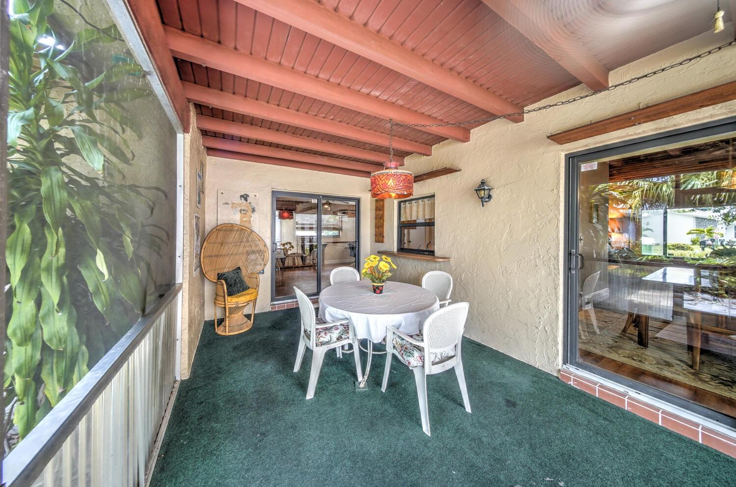 Welcome to this small community of homes with one way in and one way out! This 3-bedroom 2-bath home is situated at the end of a cul-de-sac, perfect for pets. From the moment you enter you are greeted with vaulted ceilings and lots of natural light. The split floorplan is great for privacy. The primary bedroom boasts 2 walk-in closets. The large family room and dining room both have access to the patio. Enjoy the Florida lifestyle on your oversized patio having your morning coffee or entertaining family members for holiday gatherings. Impact windows and doors throughout the home. Located near all major highways, restaurants and shopping.