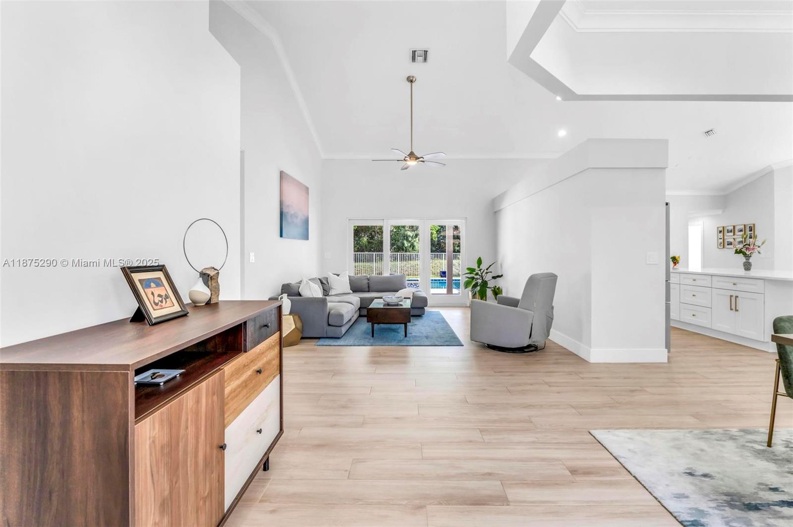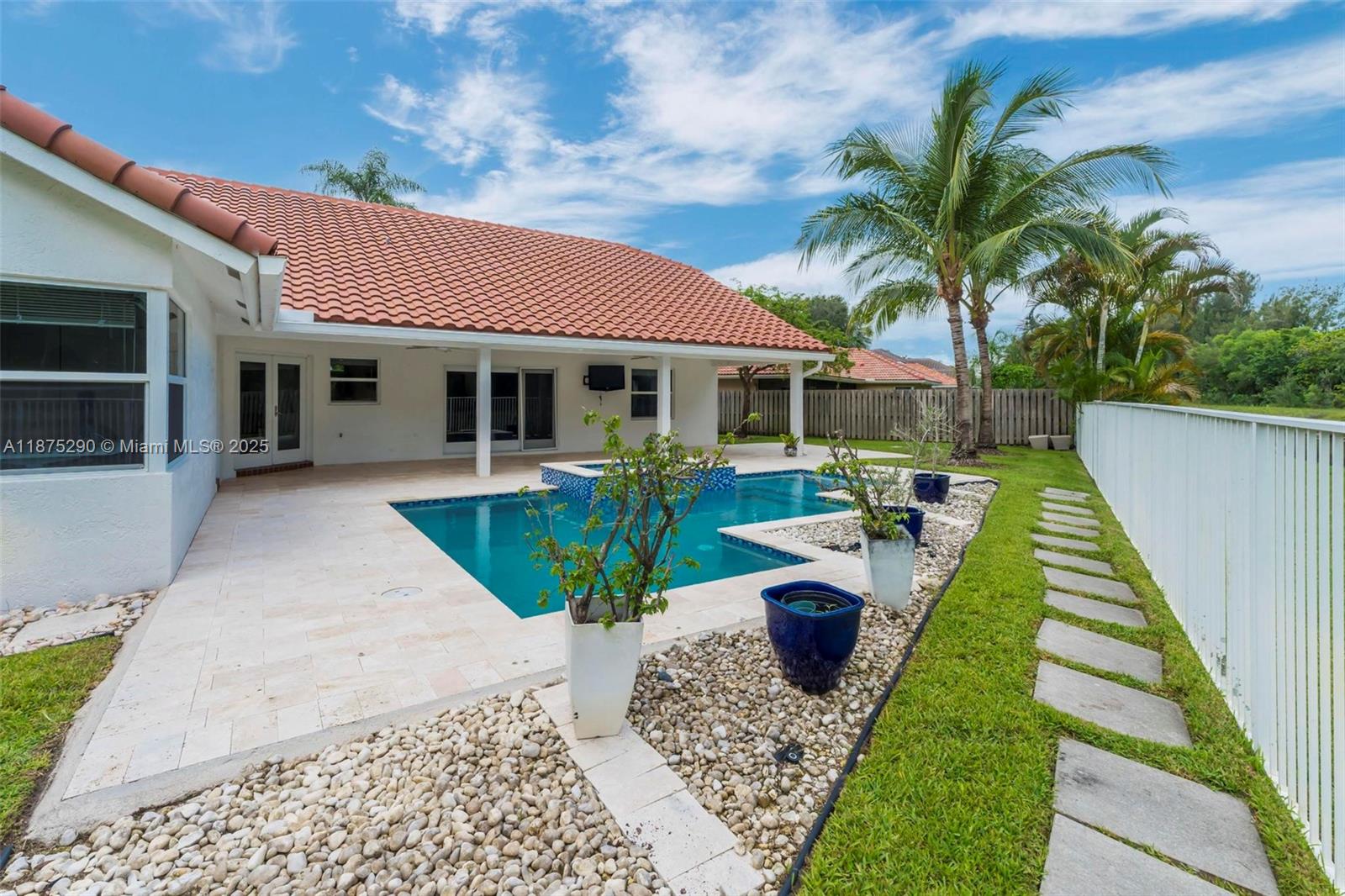 Beautiful 4BR/2.5BA pool home in sought after neighborhood of Fox Run! This home sits on a 9000+ sq. ft. lot with serene water and lush greenery views - no back neighbors! Home features: wood-plank porcelain floors and soaring ceilings that create a bright, open feel. Remodeled kitchen has an expansive island with white quartz countertops, wood cabinets, stainless steel appliances and breakfast nook that opens to the family room - Perfect for gatherings. With a functional layout, PGT impact windows and doors, renovated bathrooms, and a private backyard retreat, this home is truly Move-In Ready!