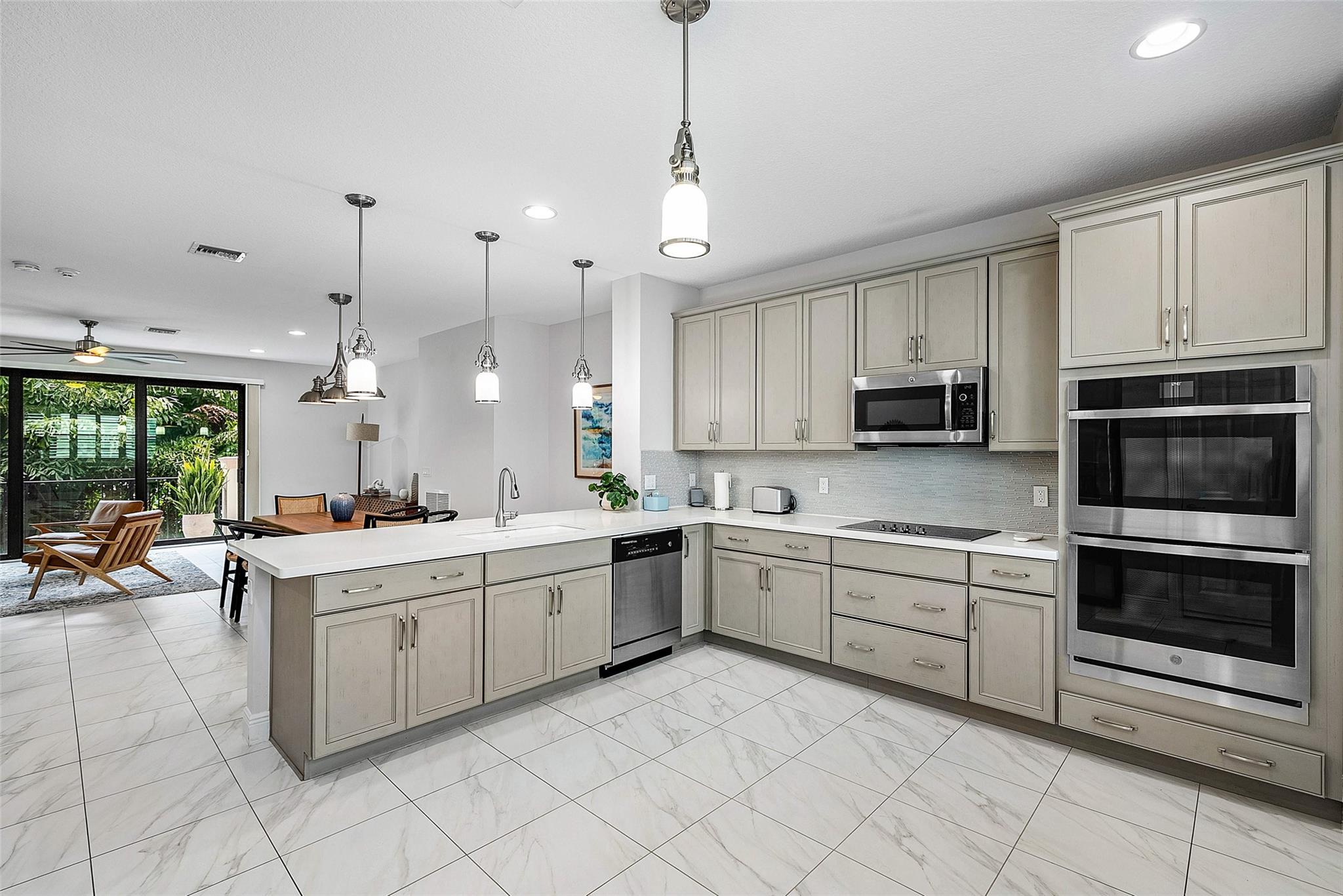 Discover the epitome of luxury living in East Boynton's exclusive Intracoastal enclave, Casa Del Mar. This elegant, tri-level townhome spans an impressive 3,294 total sq. ft. of thoughtfully designed living space, featuring 3 spacious bedrooms, 2 full/2 half baths, and a 2-car garage with additional storage. Every detail has been meticulously crafted to deliver modern comfort, style, and sophistication. Luxury living on three floors with tropical views. Step into the first floor, where a versatile bonus room with a private bathroom awaits. Ideal for a home office, guest suite, or media room, this space offers privacy and functionality to suit your lifestyle needs. The second level showcases a bright, open-concept living area with soaring ceilings and refined finishes.
