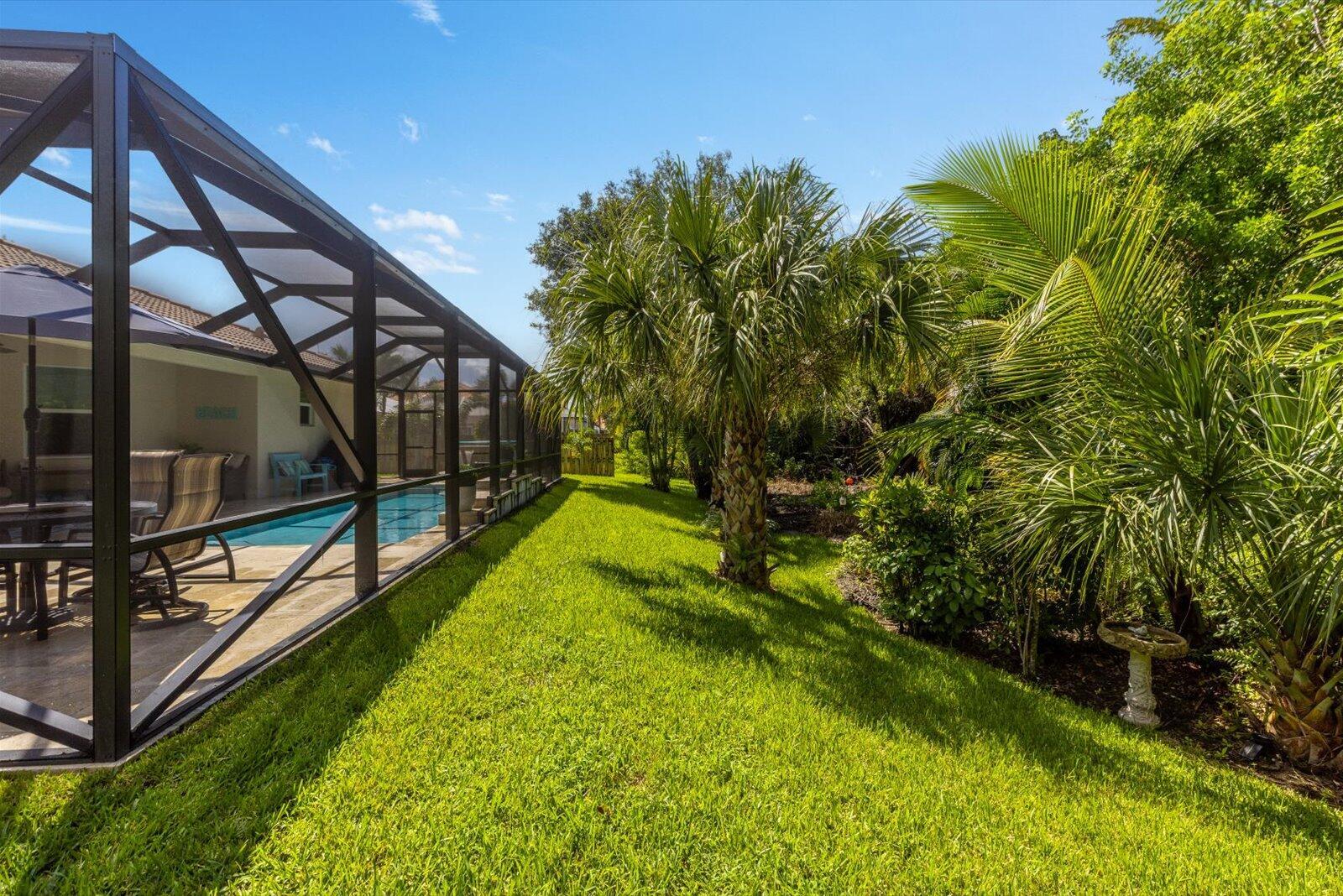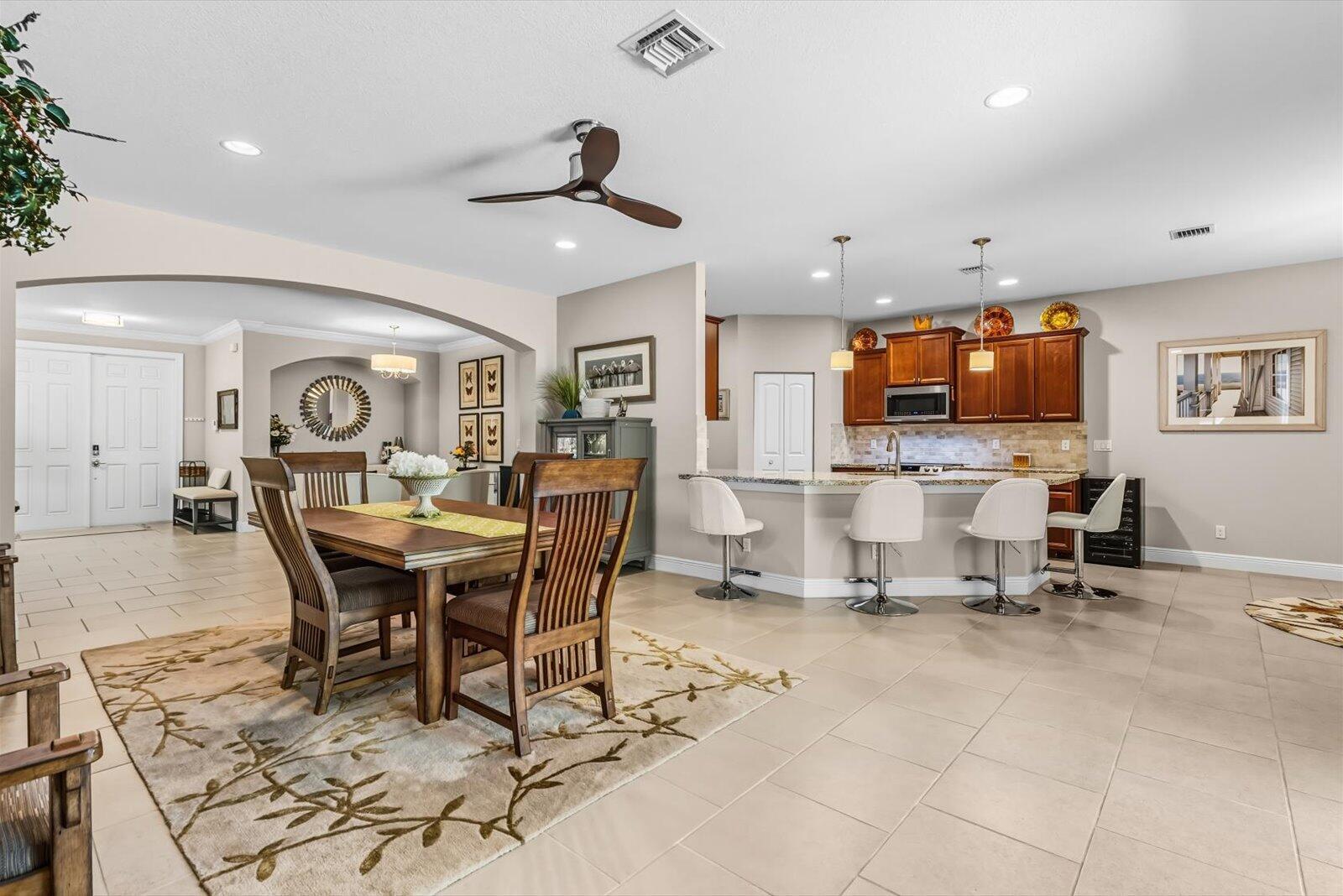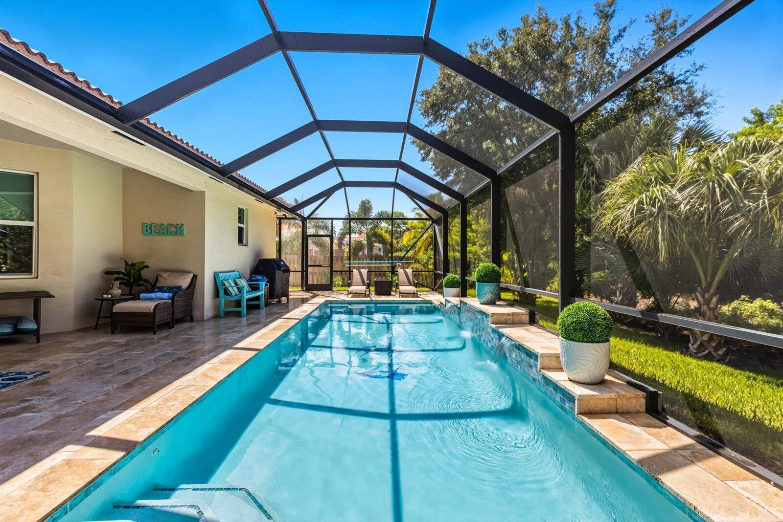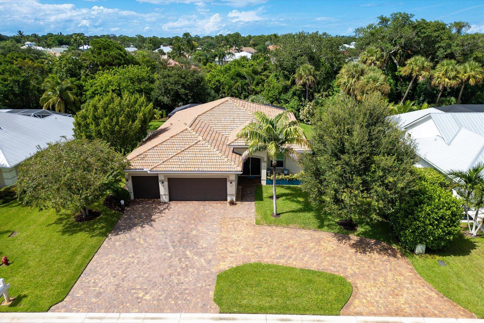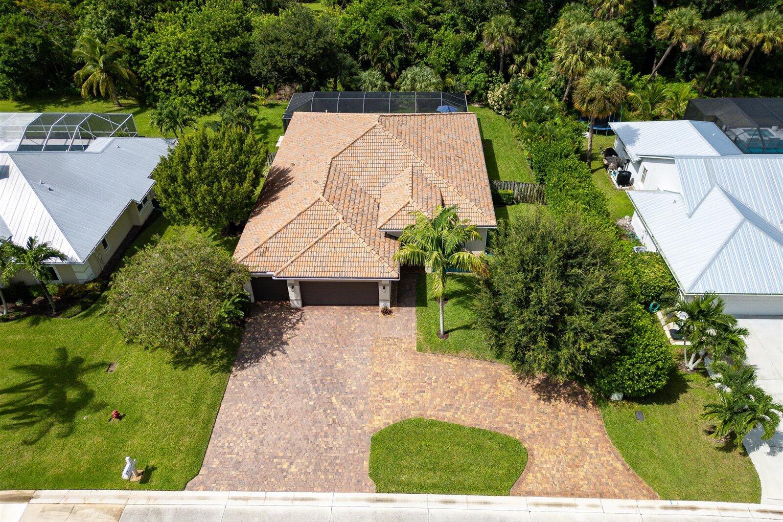 Discover your quiet haven in Bahia Sound, a gated community in Hobe Sound, Florida, that offers an easy, laid-back way of life. This peaceful community is situated on the banks of the intracoastal waterway.This beautiful four-bedroom, three-bathroom home, built in 2016 by DR Horton, is perfect for those seeking a tranquil lifestyle. The original owners have taken great pride in maintaining and improving every inch of the property. The home features a paver circle driveway and a sturdy concrete construction. As you enter through the double doors, you'll be welcomed by a natural and easy flowing floor plan, highlighting one of the best triple split layouts. Inside, the walls and ceilings have a knockdown finish.