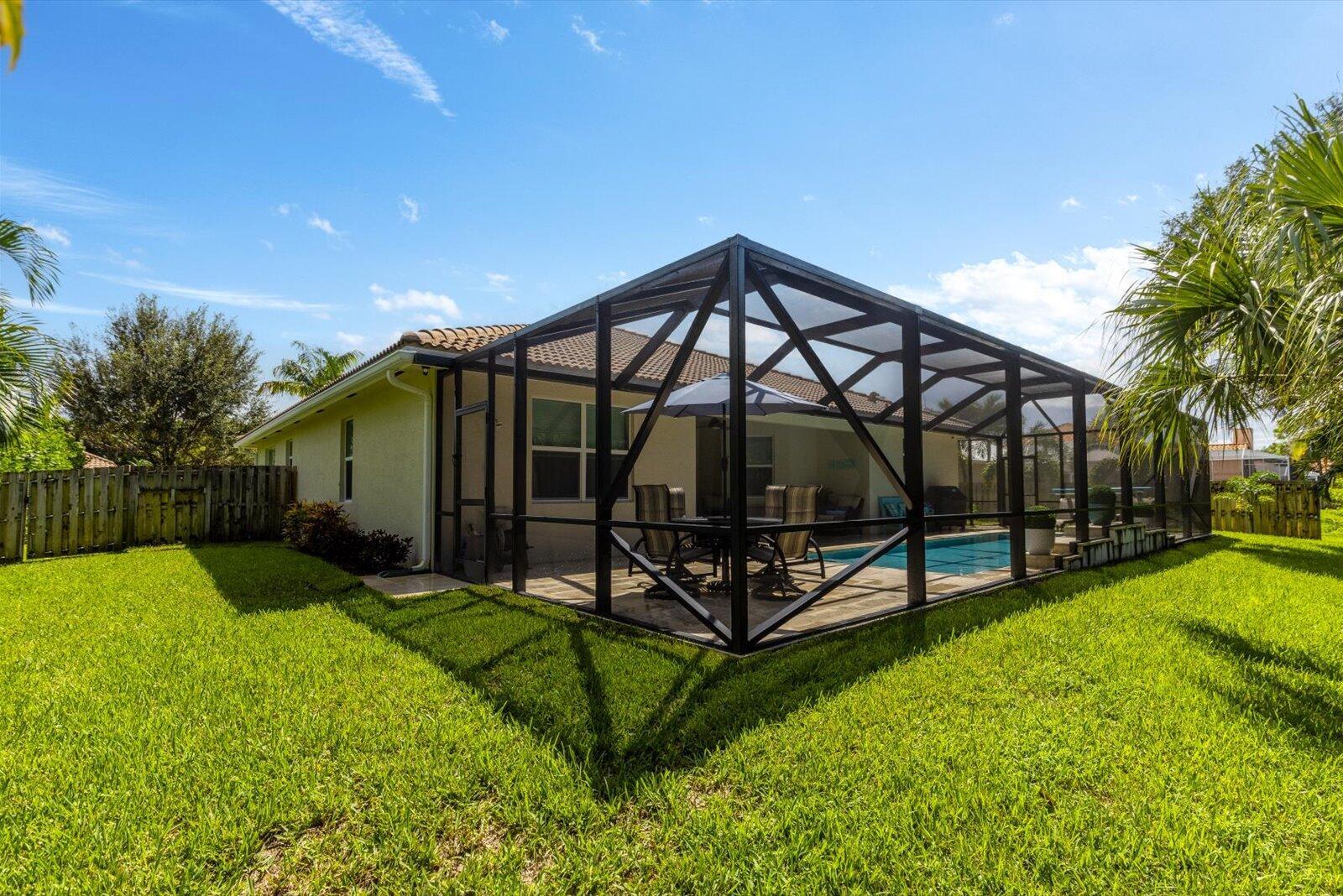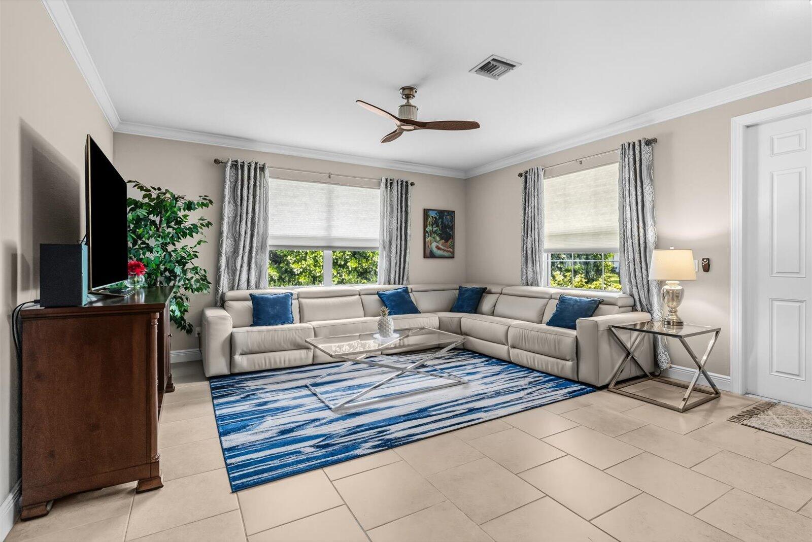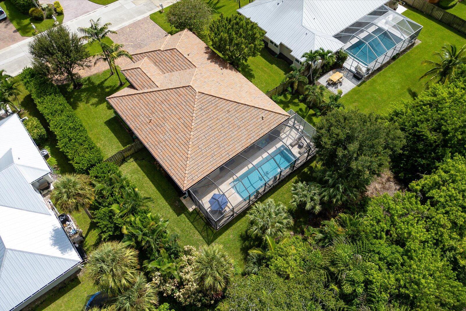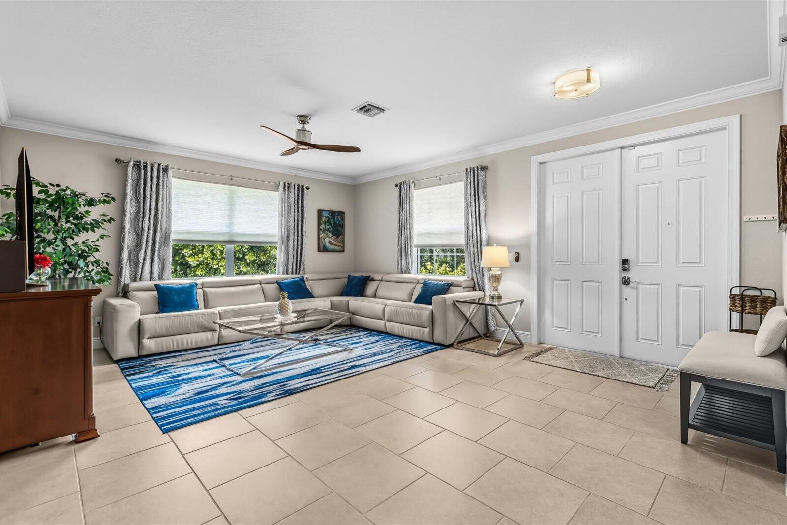 Discover your quiet haven in Bahia Sound, a gated community in Hobe Sound, Florida, that offers an easy, laid-back way of life. This peaceful community is situated on the banks of the intracoastal waterway.This beautiful four-bedroom, three-bathroom home, built in 2016 by DR Horton, is perfect for those seeking a tranquil lifestyle. The original owners have taken great pride in maintaining and improving every inch of the property. The home features a paver circle driveway and a sturdy concrete construction. As you enter through the double doors, you'll be welcomed by a natural and easy flowing floor plan, highlighting one of the best triple split layouts. Inside, the walls and ceilings have a knockdown finish.