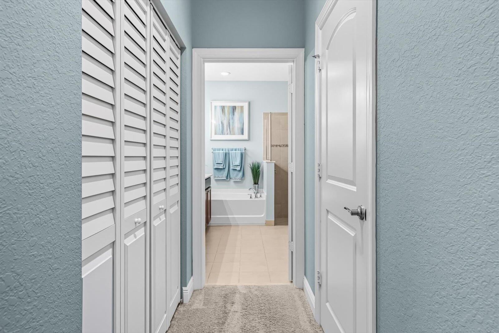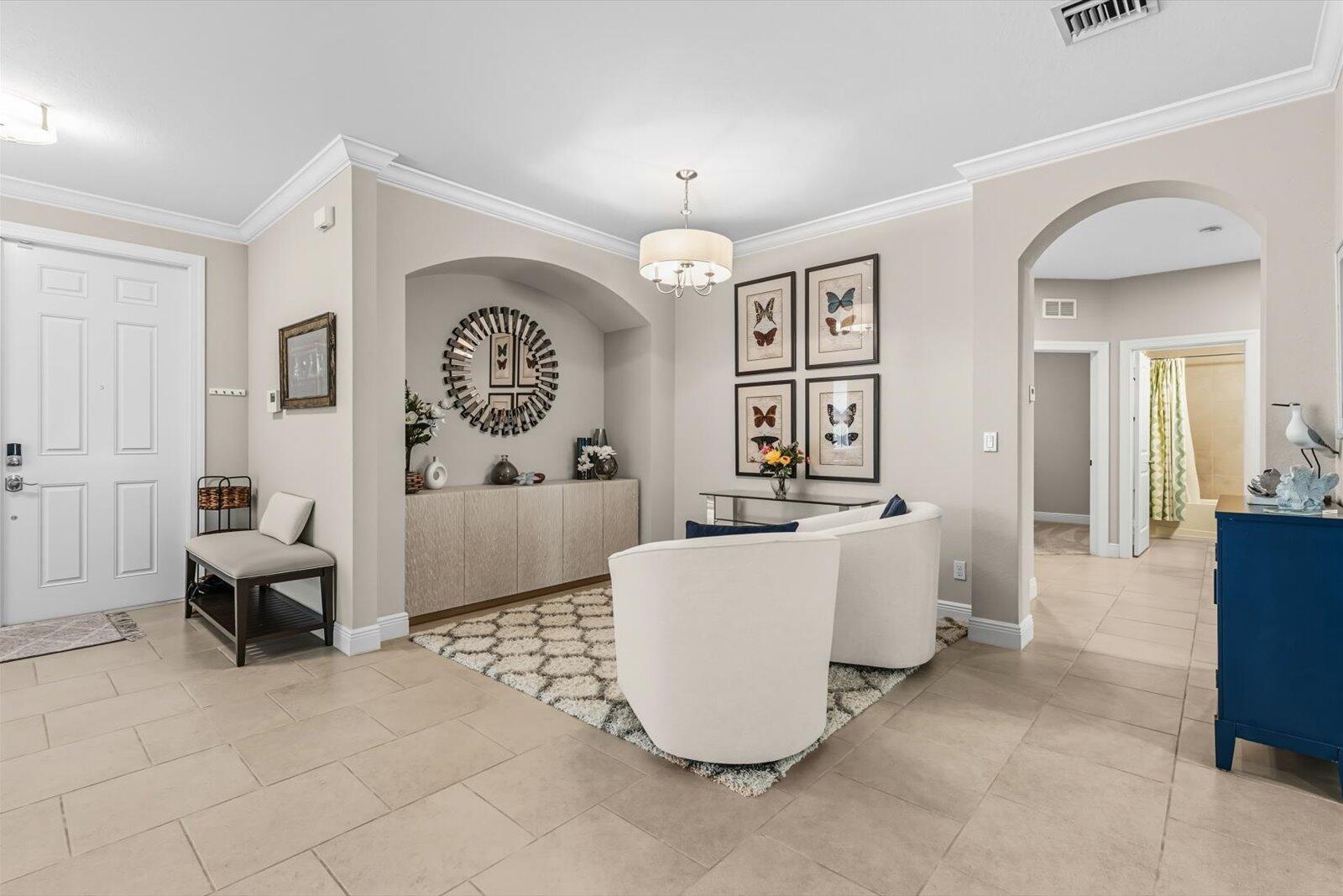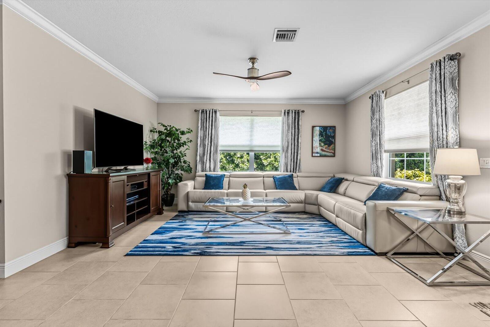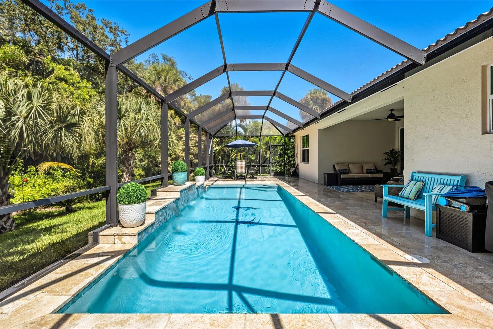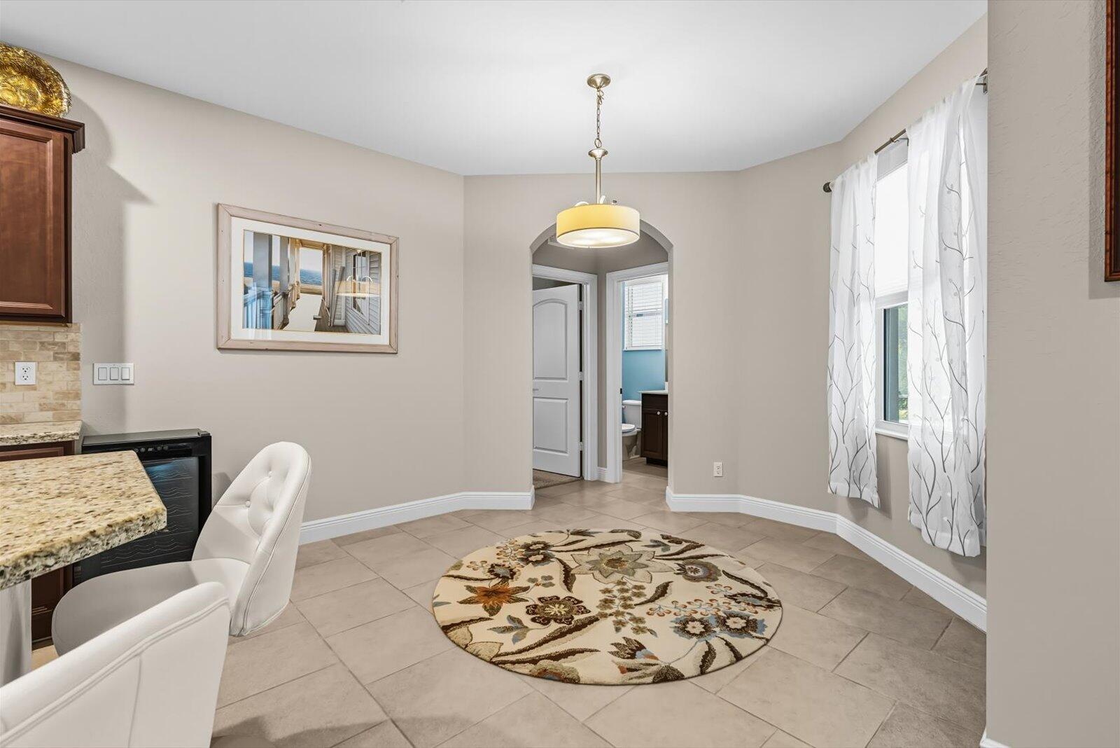 Discover your quiet haven in Bahia Sound, a gated community in Hobe Sound, Florida, that offers an easy, laid-back way of life. This peaceful community is situated on the banks of the intracoastal waterway.This beautiful four-bedroom, three-bathroom home, built in 2016 by DR Horton, is perfect for those seeking a tranquil lifestyle. The original owners have taken great pride in maintaining and improving every inch of the property. The home features a paver circle driveway and a sturdy concrete construction. As you enter through the double doors, you'll be welcomed by a natural and easy flowing floor plan, highlighting one of the best triple split layouts. Inside, the walls and ceilings have a knockdown finish.