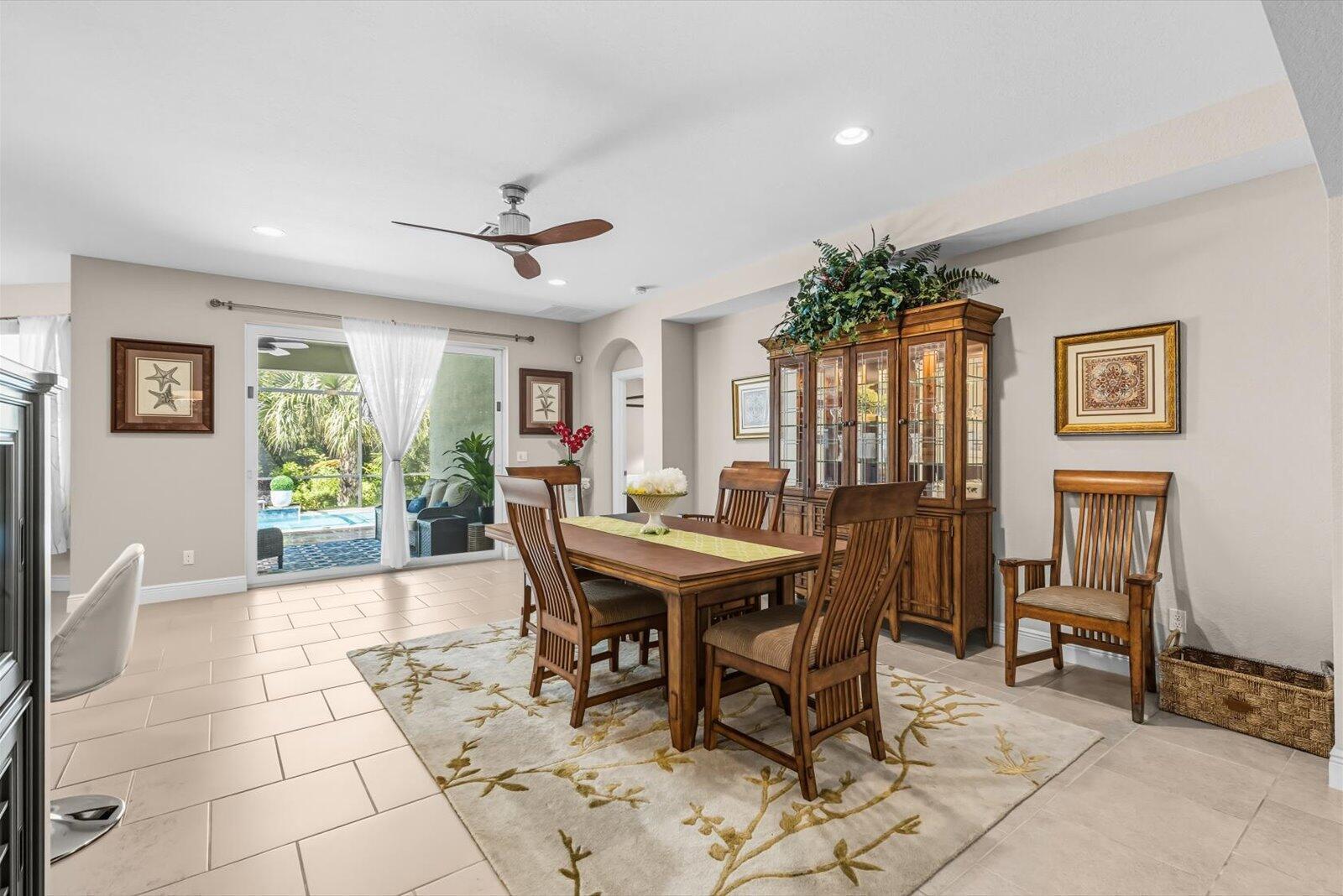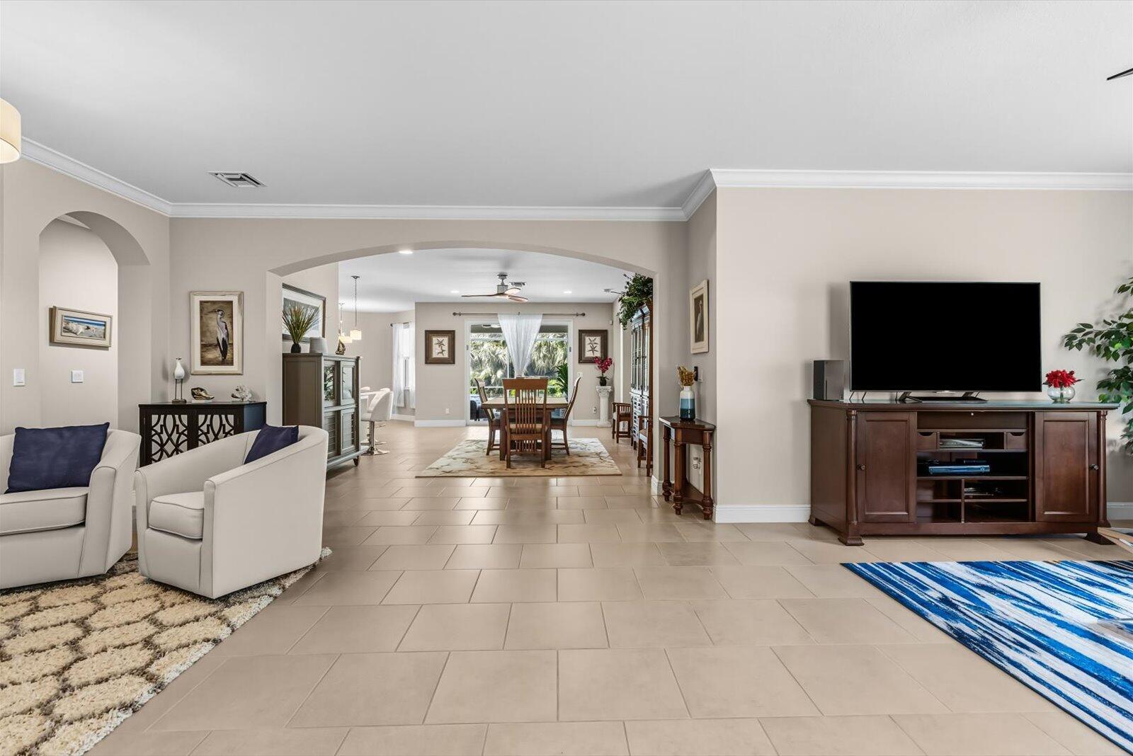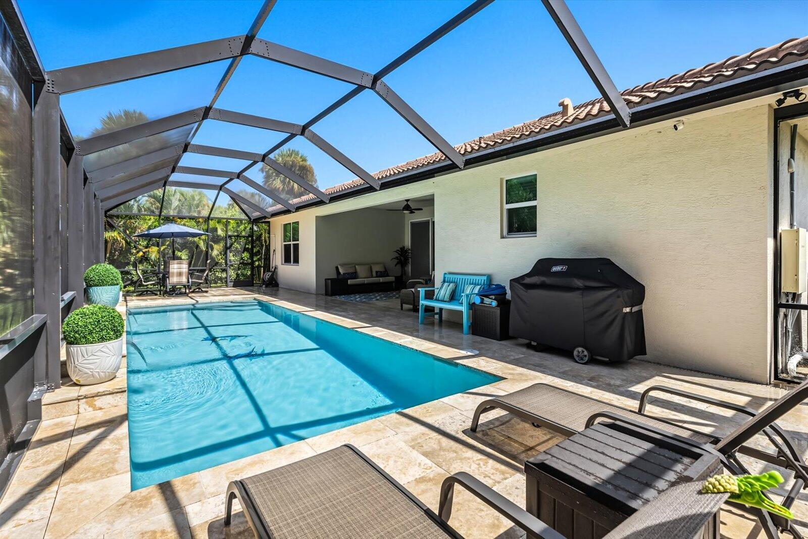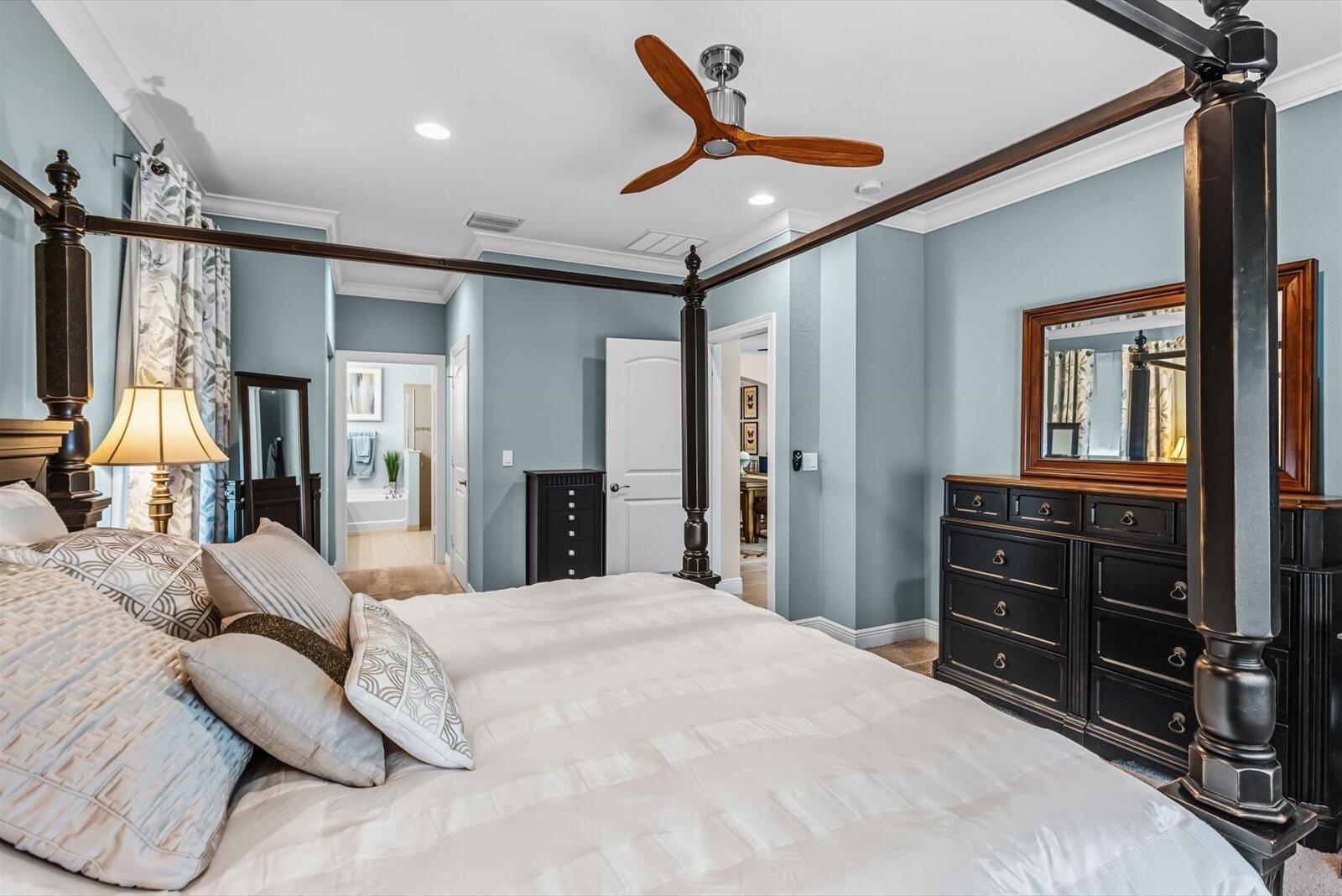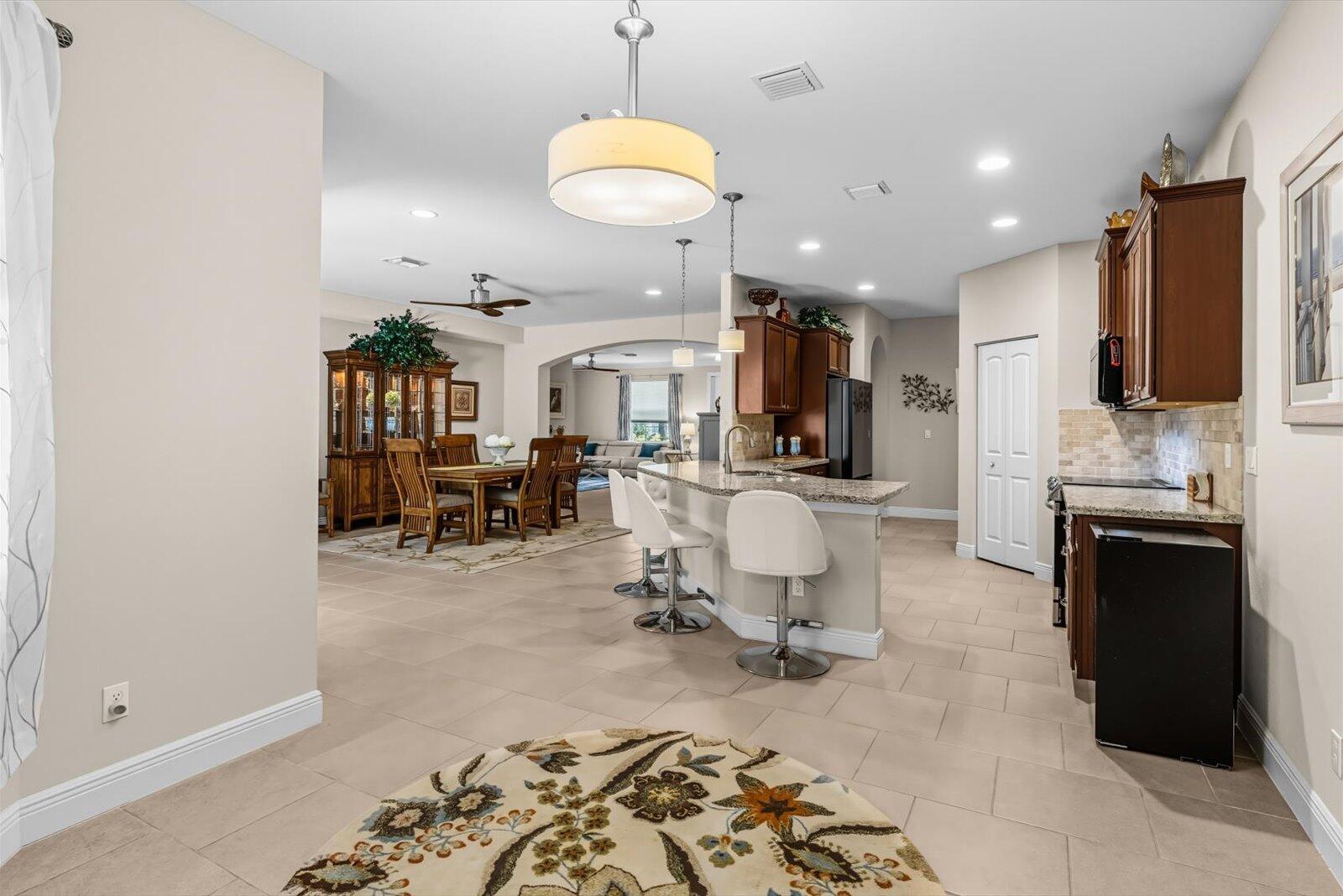 Discover your quiet haven in Bahia Sound, a gated community in Hobe Sound, Florida, that offers an easy, laid-back way of life. This peaceful community is situated on the banks of the intracoastal waterway.This beautiful four-bedroom, three-bathroom home, built in 2016 by DR Horton, is perfect for those seeking a tranquil lifestyle. The original owners have taken great pride in maintaining and improving every inch of the property. The home features a paver circle driveway and a sturdy concrete construction. As you enter through the double doors, you'll be welcomed by a natural and easy flowing floor plan, highlighting one of the best triple split layouts. Inside, the walls and ceilings have a knockdown finish.