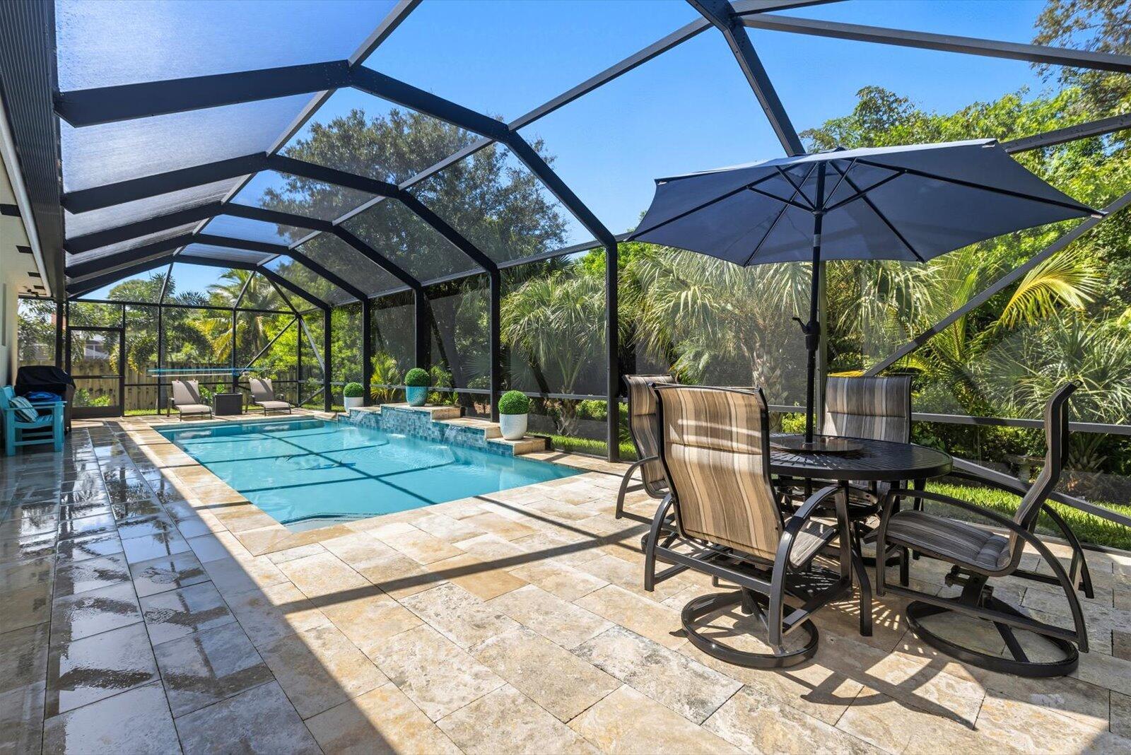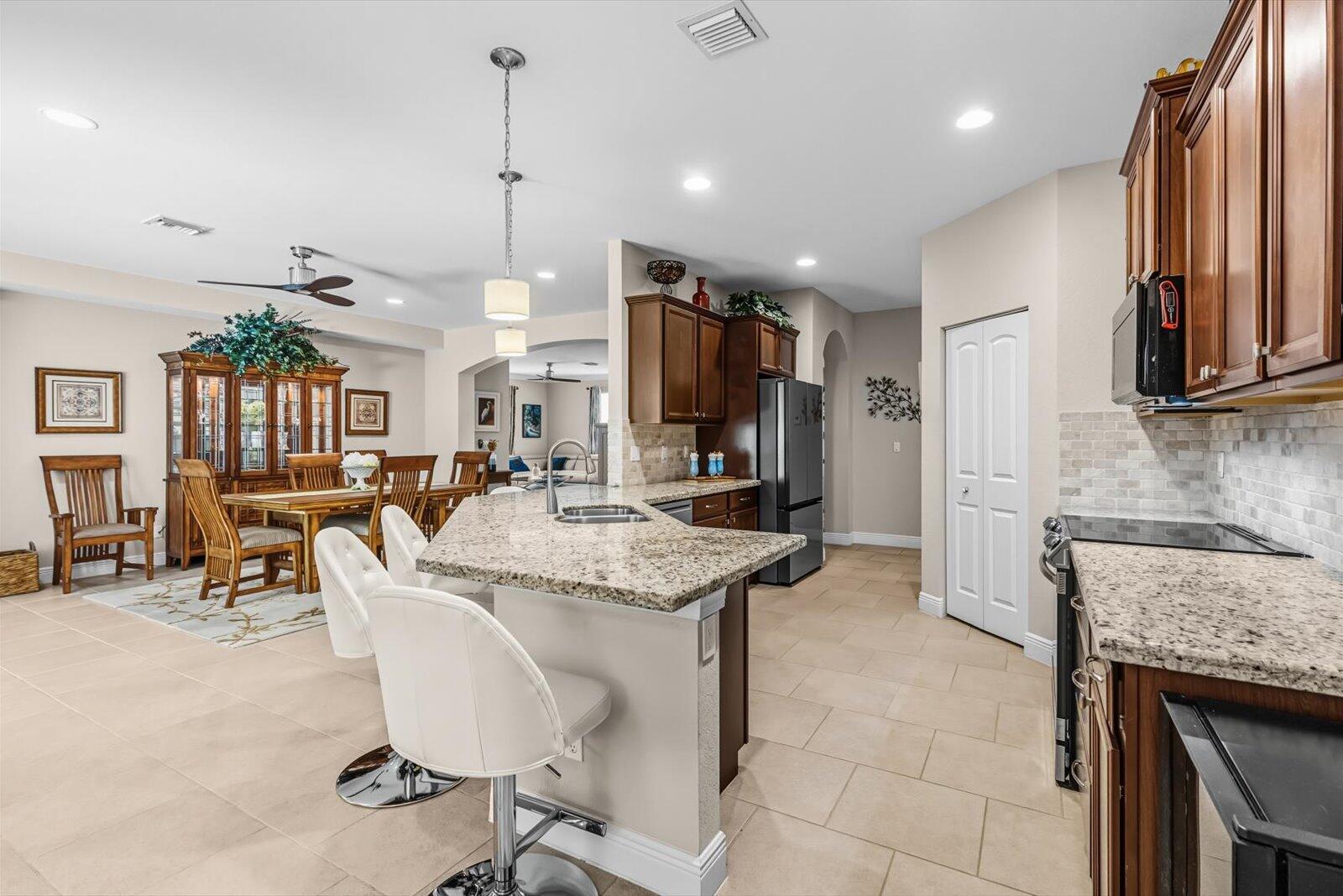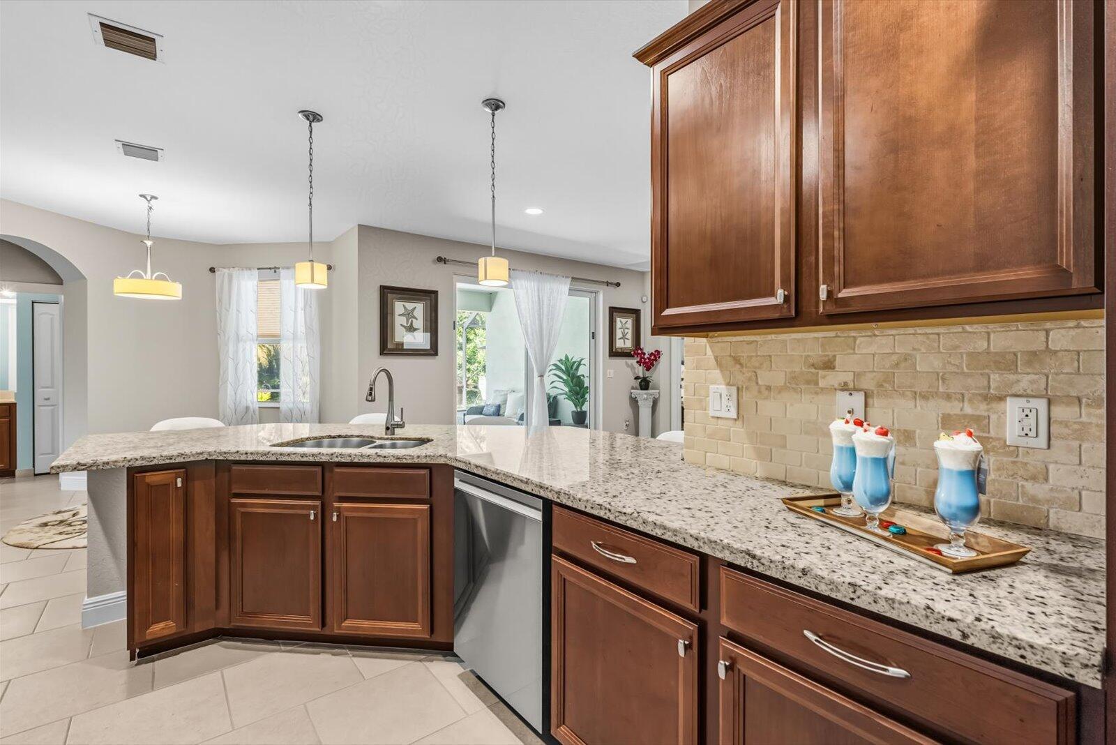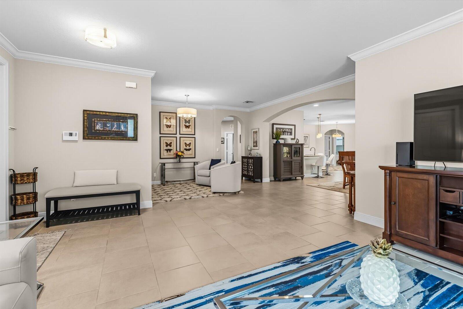 Discover your quiet haven in Bahia Sound, a gated community in Hobe Sound, Florida, that offers an easy, laid-back way of life. This peaceful community is situated on the banks of the intracoastal waterway.This beautiful four-bedroom, three-bathroom home, built in 2016 by DR Horton, is perfect for those seeking a tranquil lifestyle. The original owners have taken great pride in maintaining and improving every inch of the property. The home features a paver circle driveway and a sturdy concrete construction. As you enter through the double doors, you'll be welcomed by a natural and easy flowing floor plan, highlighting one of the best triple split layouts. Inside, the walls and ceilings have a knockdown finish.