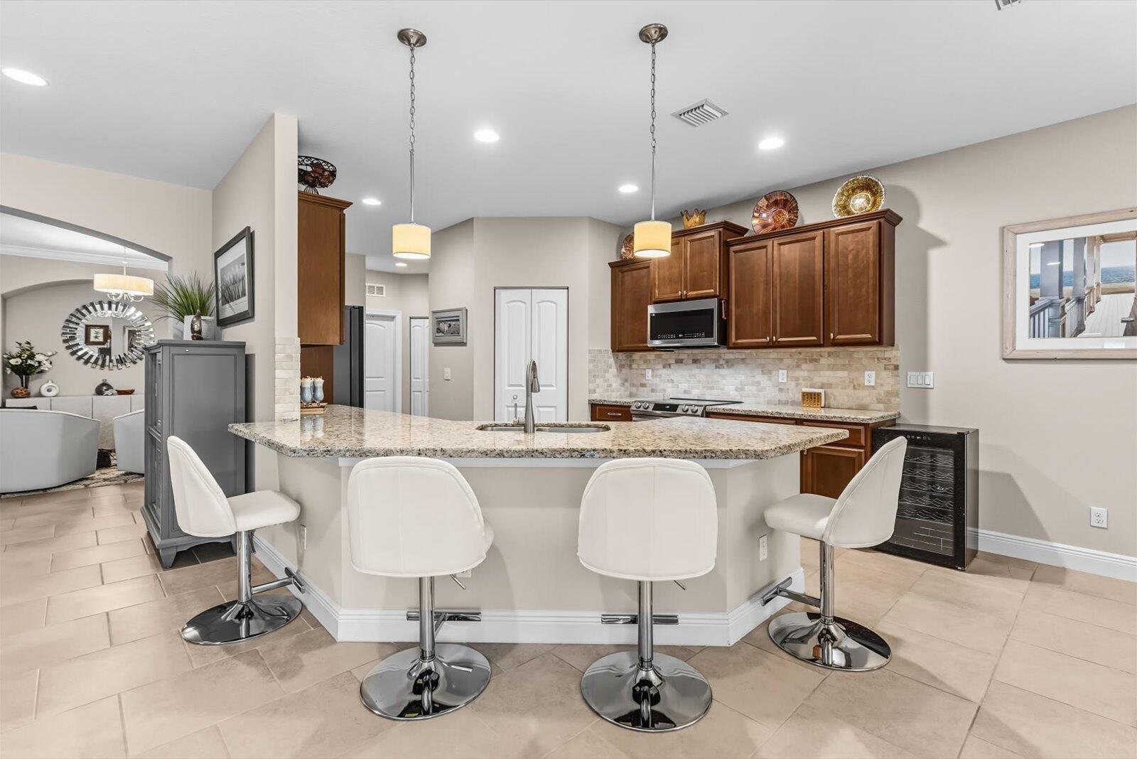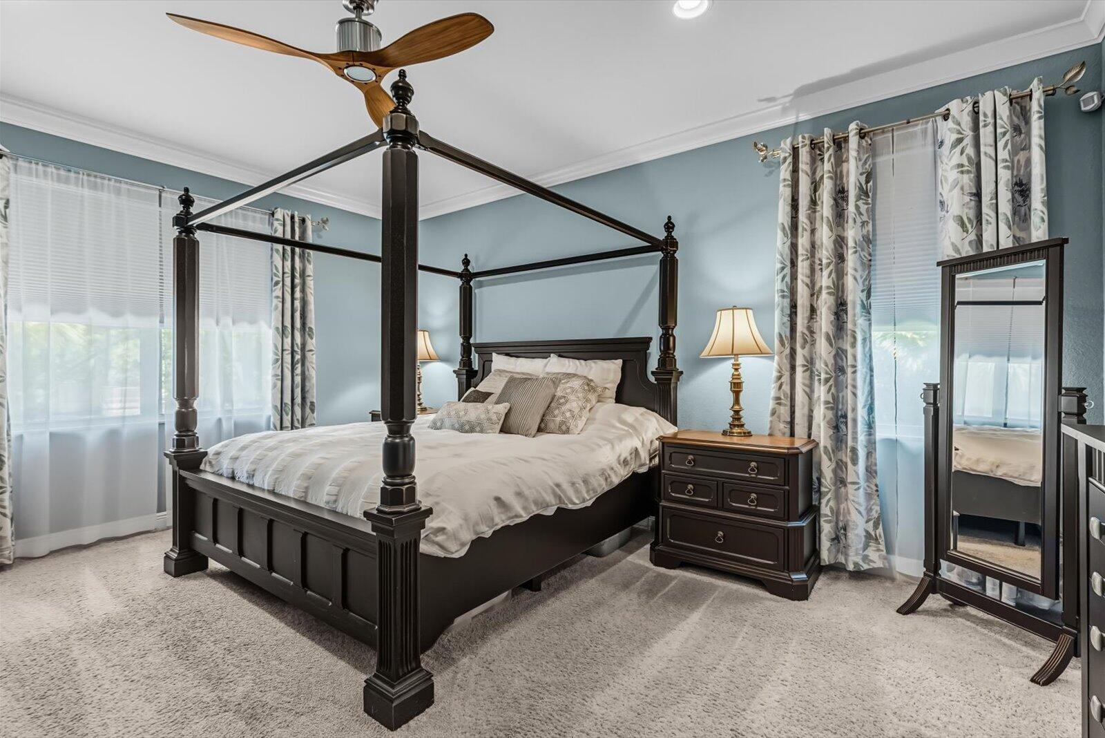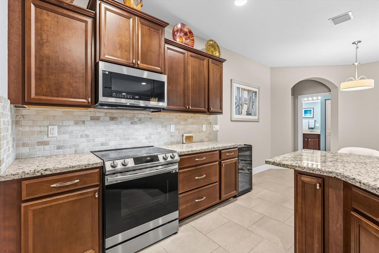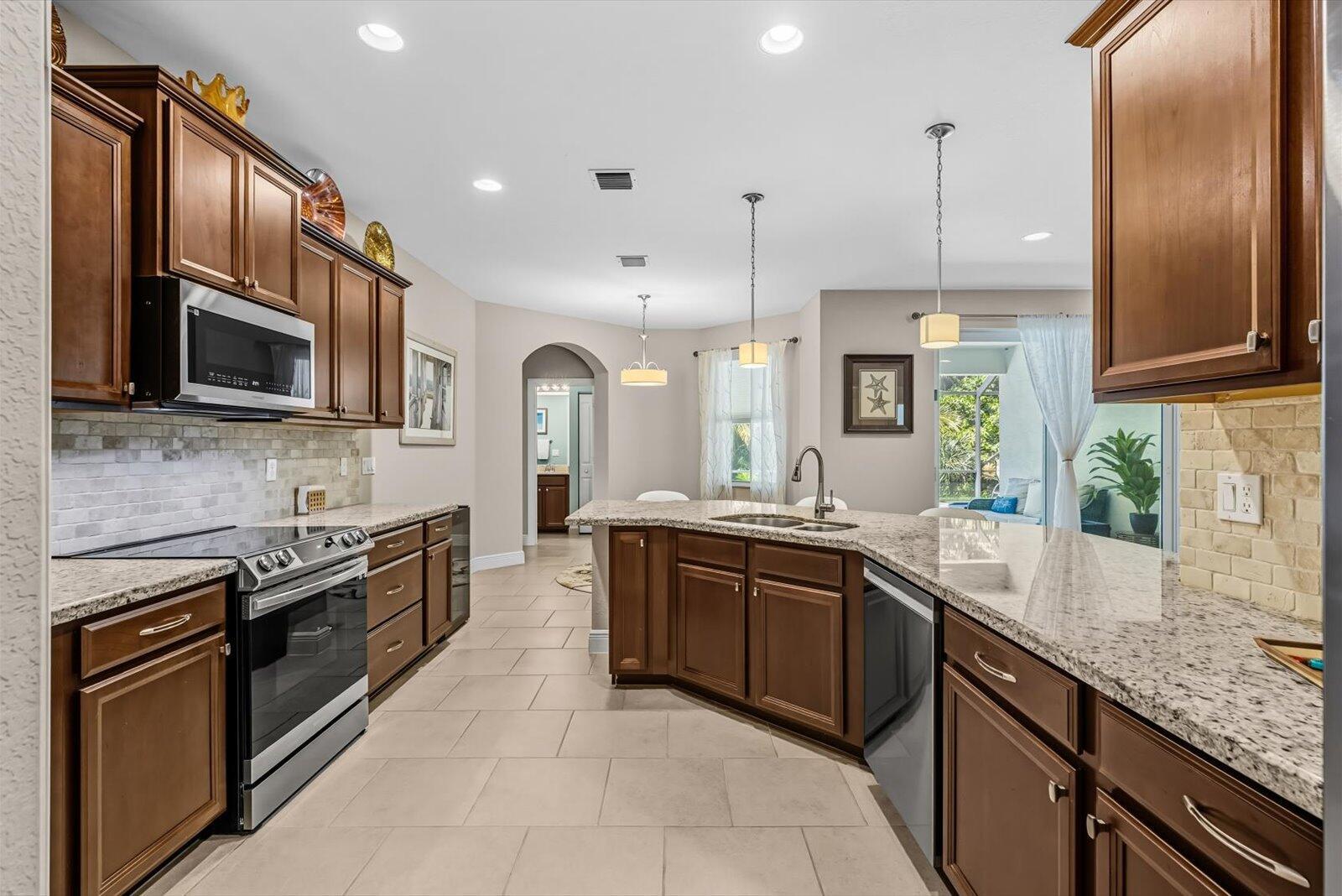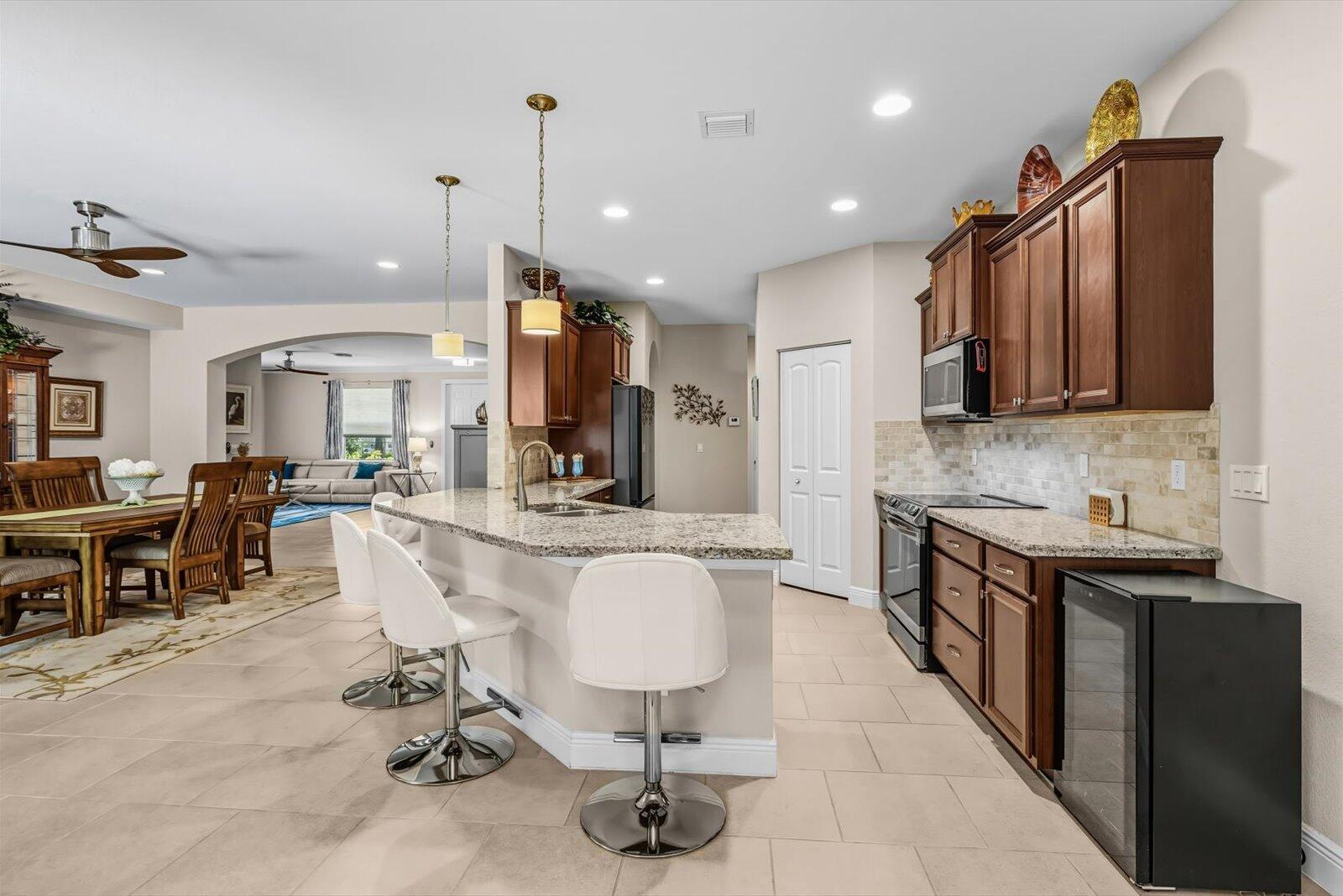 Discover your quiet haven in Bahia Sound, a gated community in Hobe Sound, Florida, that offers an easy, laid-back way of life. This peaceful community is situated on the banks of the intracoastal waterway.This beautiful four-bedroom, three-bathroom home, built in 2016 by DR Horton, is perfect for those seeking a tranquil lifestyle. The original owners have taken great pride in maintaining and improving every inch of the property. The home features a paver circle driveway and a sturdy concrete construction. As you enter through the double doors, you'll be welcomed by a natural and easy flowing floor plan, highlighting one of the best triple split layouts. Inside, the walls and ceilings have a knockdown finish.