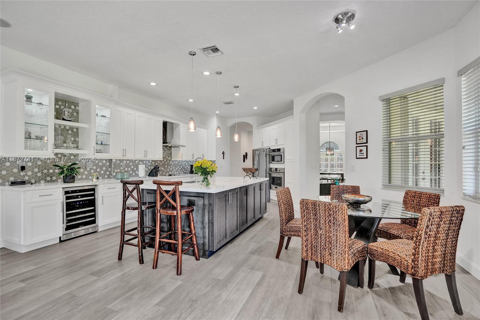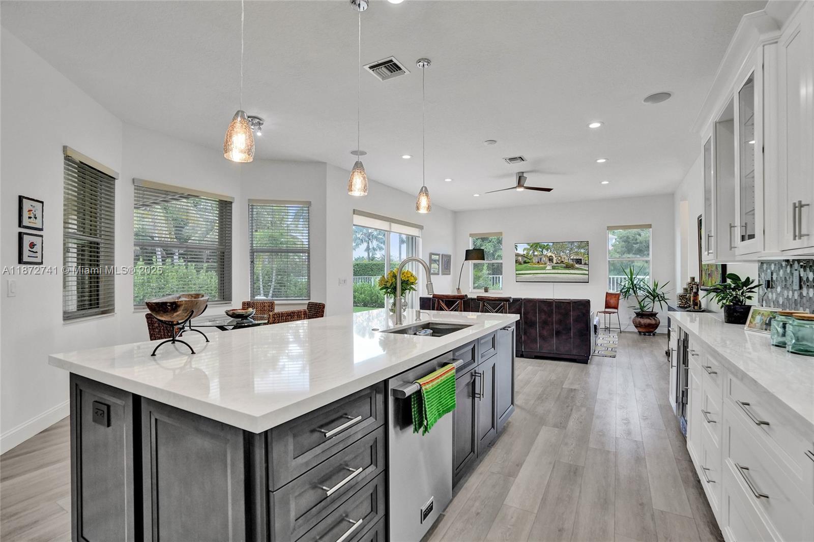 Welcome to Isles at Weston ...Just Listed! Experience luxury living in the prestigious Isles at Weston. This freshly painted 4-bed, 3-bath home features soaring 14-ft ceilings, brand-new flooring, and a chef’s kitchen with quartz island, wet bar, wine cooler, double oven, flat cooktop, and custom 42” cabinetry with stainless-steel appliances. Situated on an oversized cul-de-sac lot, enjoy serene lake views, extended patios, a fenced backyard with room for a large pool, and accordion shutters. Resort-style amenities include a renovated clubhouse, fitness center, pools, and 24/7 security. Walking distance to Weston’s A+ rated schools, this home blends elegance, comfort, and convenience. Your dream lifestyle awaits.