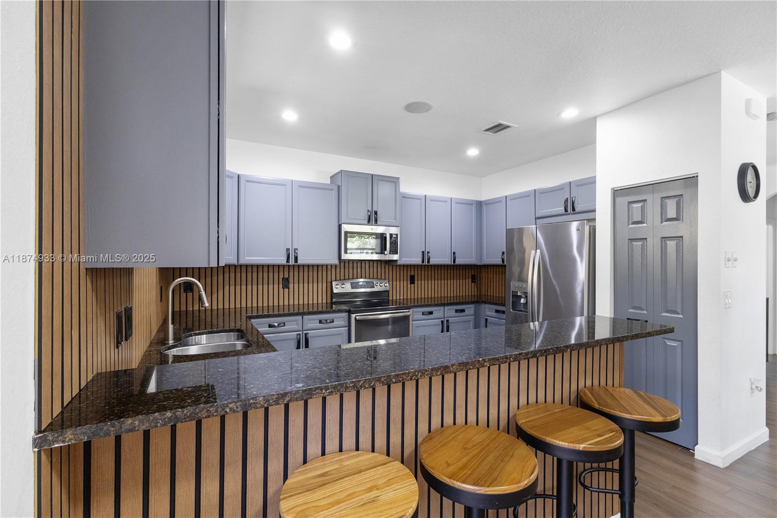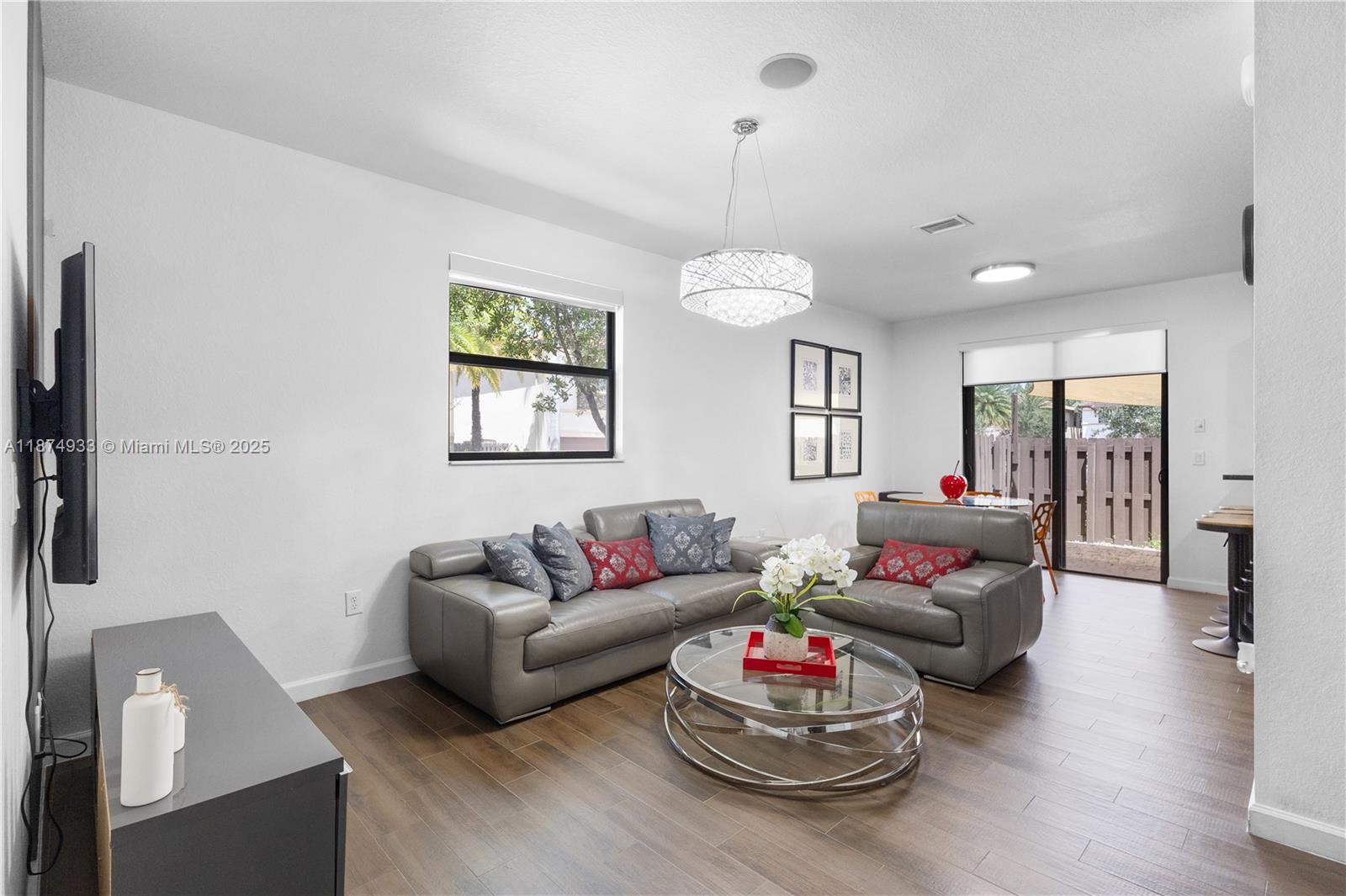 This beautiful home features a modern open-concept design, with a spacious living area and an elegant kitchen equipped with stainless steel appliances, granite countertops, and an eat-in island—perfect for family gatherings and entertaining. The first level boasts stylish wood-look porcelain tile flooring, while the second floor offers cozy carpeting. Enjoy outdoor living in the covered backyard patio, ideal for relaxing or hosting get-togethers. As a resident of Grand Bay Estates, you’ll have access to one of Doral’s largest and most exclusive clubhouses, featuring a resort-style pool, spa, fitness center, playground, splash park, basketball courts, and much more. The property is also conveniently located near top-rated schools, shopping centers, restaurants, and major highways.