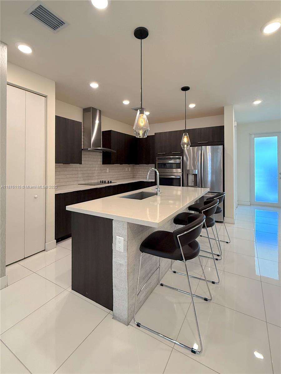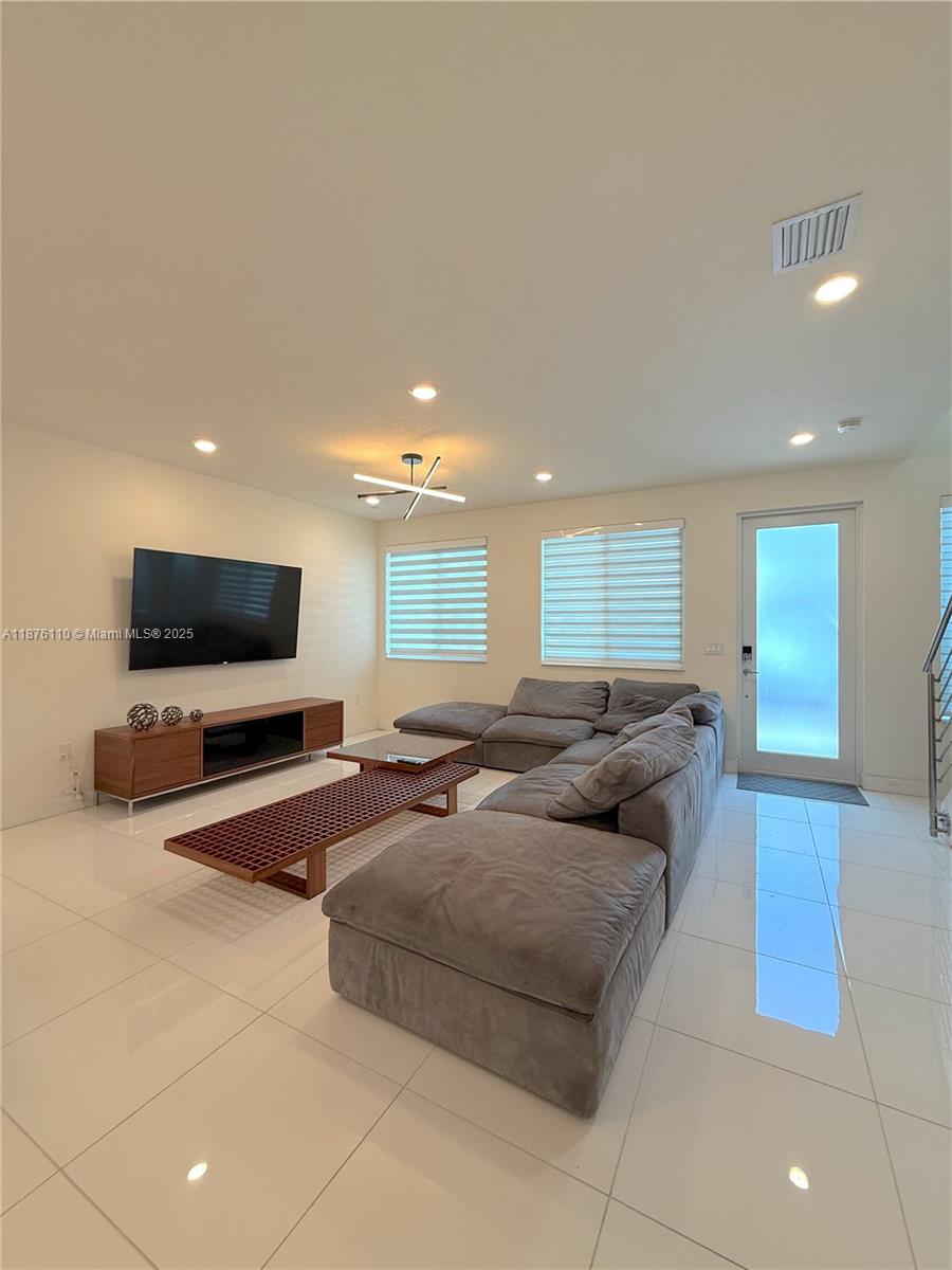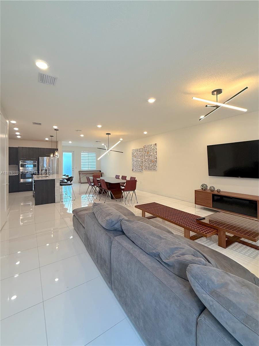 Luxury townhouse ready to move into the prestigious Landmark community. This modern unit features impact windows, 3 bedrooms, 2.5 bathrooms, 2 parking spaces in the back plus a garage for 1 car. An open design for living and dining room with a fully equipped kitchen and quartz countertop, stainless steel appliances, and a 3-door refrigerator. Private backyard. Master bedroom with walk-in closet and master bathroom with his and hers sinks, glass door shower, and separate toilet area; 2 perfectly sized bedrooms sharing a full bathroom, a laundry room with large washer and dryer. Beautiful clubhouse with tennis courts, pool, gym equipped with sauna, pool, and splash zone for kids. Top-tier public and private schools and public parks nearby.