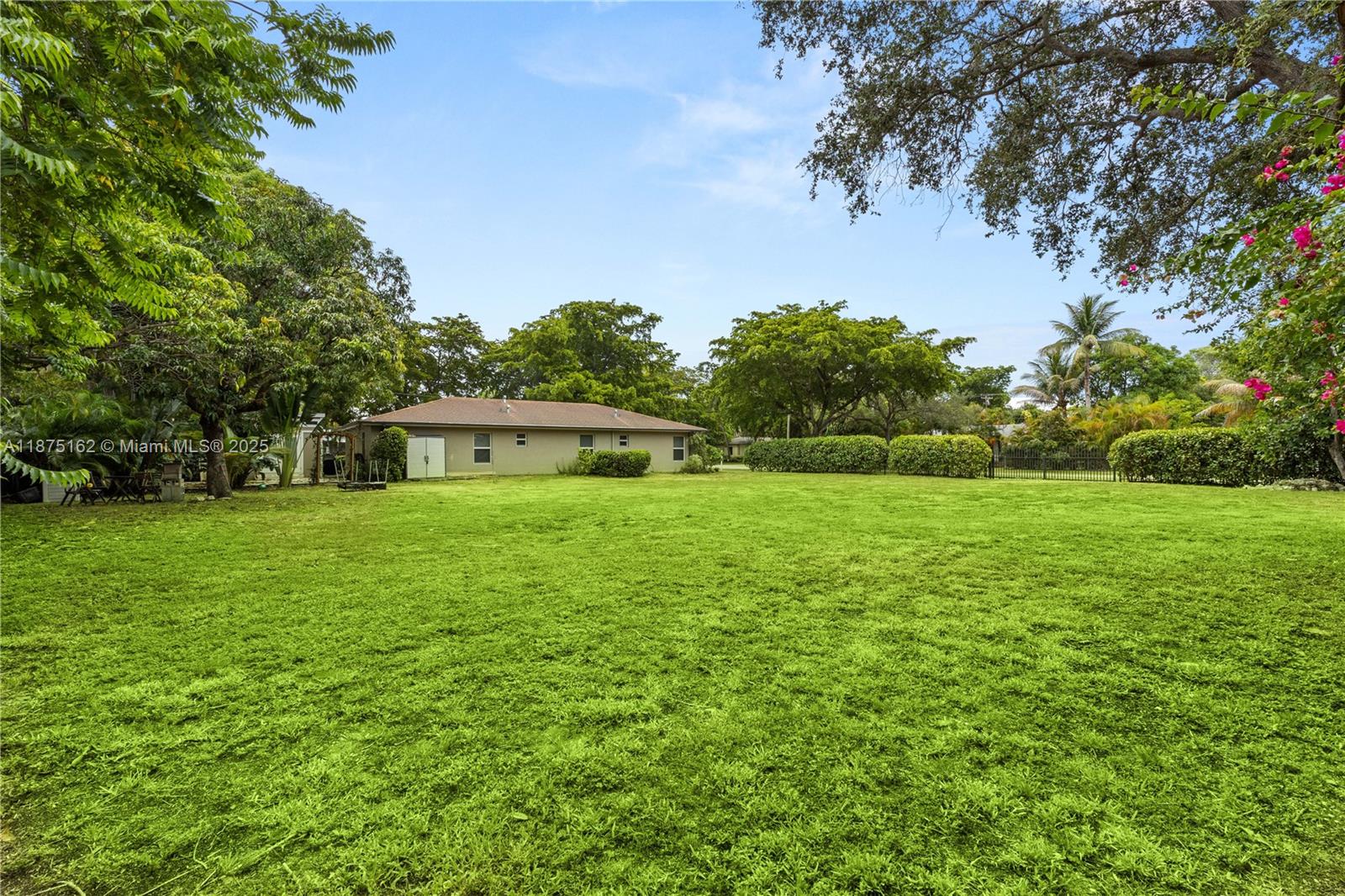 Exceptional 2019 home on an expansive 18,600 sqft corner lot. An open floor plan filled with natural light from hurricane-impact windows connects spacious living and dining areas to a sleek kitchen with high-end appliances, including a glass cooktop and dishwasher. Three generously sized bedrooms and two thoughtfully designed baths , and inside laundry for everyday convenience. Step outside to a patio and yard framed by mango and avocado trees, creating a peaceful, tropical setting to enjoy year-round. A detached backyard structure provides versatile space for a studio, guest quarters, or workspace. The oversized lot is large enough to subdivide and build an additional residence, with two separate water meters and a gated entry for independent access, offering unique development potential.