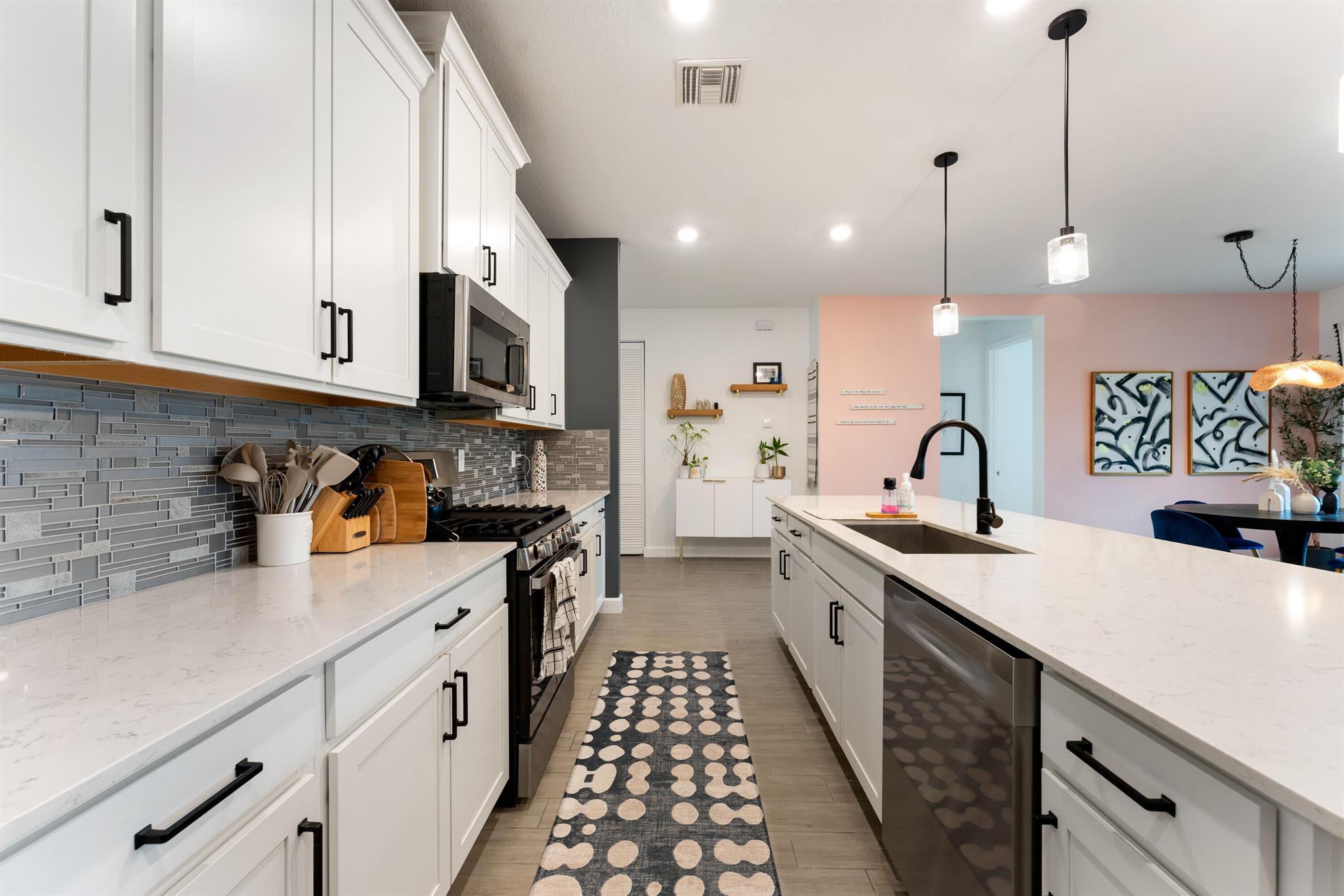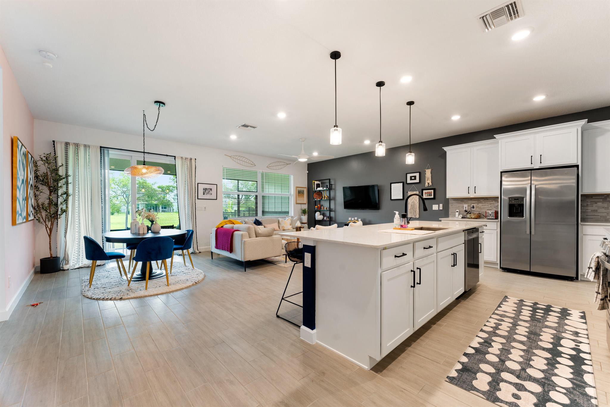 Welcome to Arden, one of Palm Beach County's most sought-after communities! This stunning 2022 Dahlia model offers the perfect blend of modern design, comfort, and upgrades throughout. Featuring 3 bedrooms, 2 bathrooms, and an open-concept layout, this home is designed for both everyday living and entertaining.Step inside to find quartz countertops throughout, a gourmet kitchen with gas oven, oversized island, glass backsplash, and soft-close cabinetry, plus a dramatic impact glass waterfall entry door. The main living areas boast tile flooring, while the bedrooms feature luxury vinyl floors for both beauty and durability.Additional upgrades include:-Remi Halo air purification system-New dishwasher-24KW whole-house generator