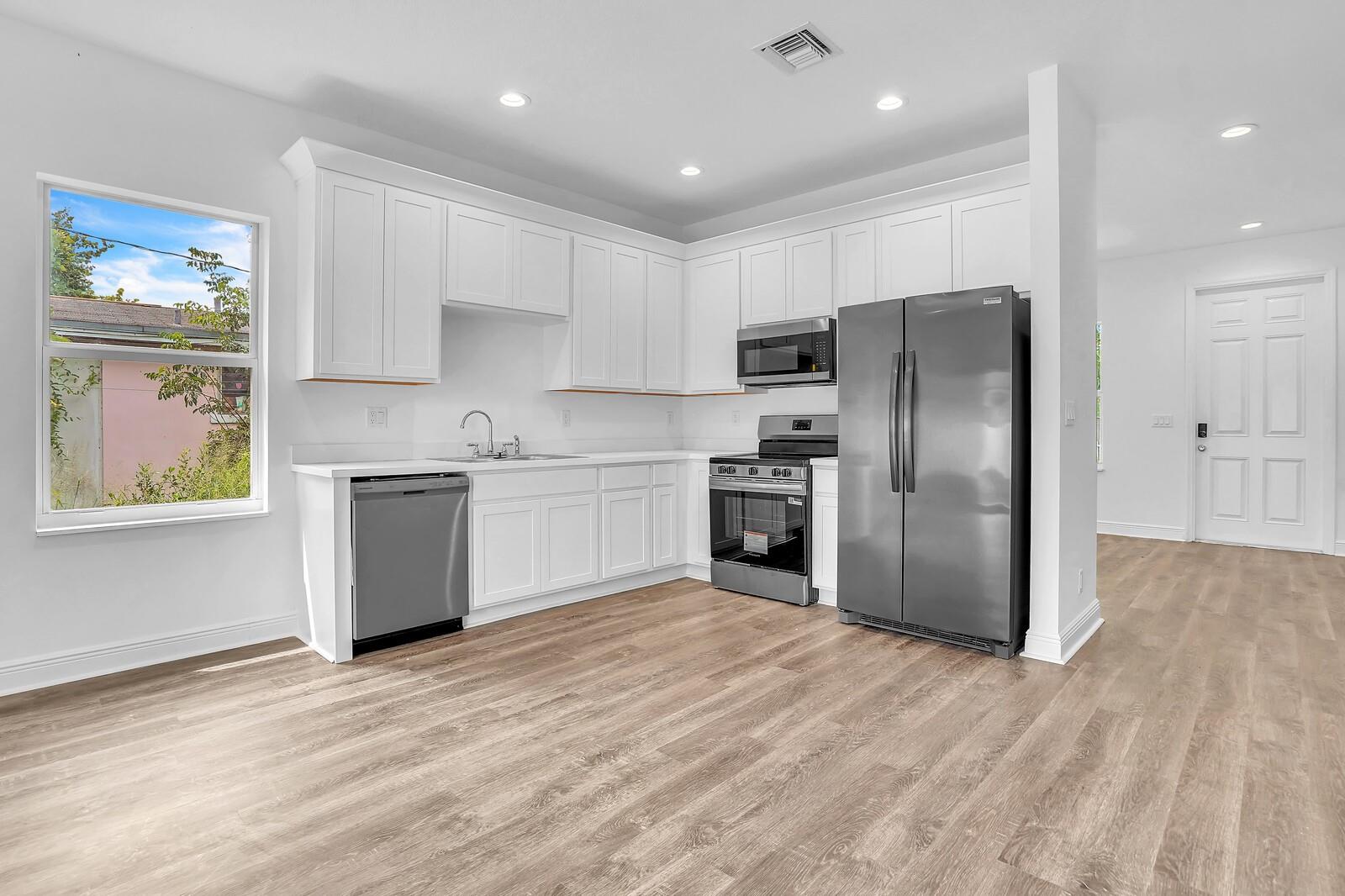 New construction cute bungalow type, 3 bedrooms, 2 baths, fam room, living room, CBS construction, impact windows, all kitchen appliances, washer/dryer, laminate floors, high ceilings, 2 off street parking spaces, 50' x 100' lot, fully sodded. minutes to beach. NO HOA ! leafy Lantana location