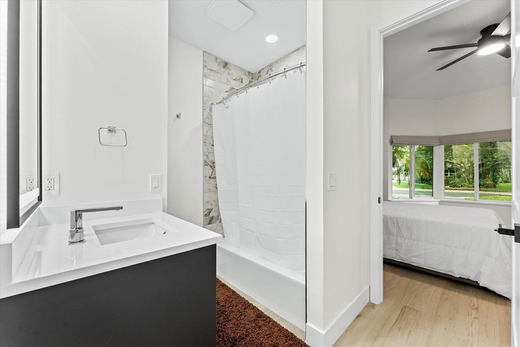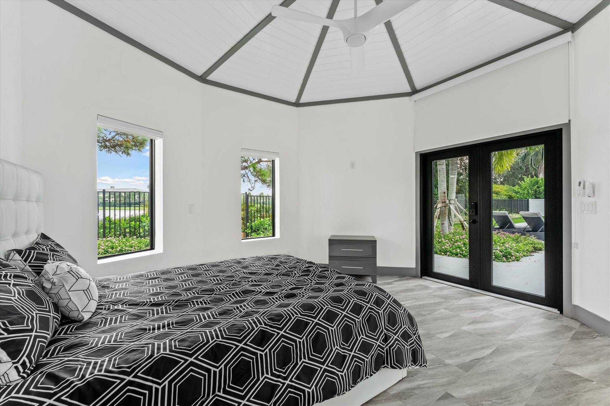 An exceptional blend of luxury, lifestyle, and premier location awaits in the prestigious Bear Lakes Estates. This beautifully renovated 3BD/3BA residence, paired with a private 1BD/1BA guest house, delivers timeless elegance with modern comforts throughout. Enjoy direct backyard access to the 15th hole, perfect for a morning round of golf before returning to your private oasis for poolside relaxation. Inside, premium appliances, quartz countertops, a sophisticated wet bar, and impact windows and doors create a bright, secure, and turnkey environment. Outdoors, a resort-style saltwater pool and spa, supported by a brand-new pump system, provide an ideal setting for unwinding or hosting, all framed by serene lake views.