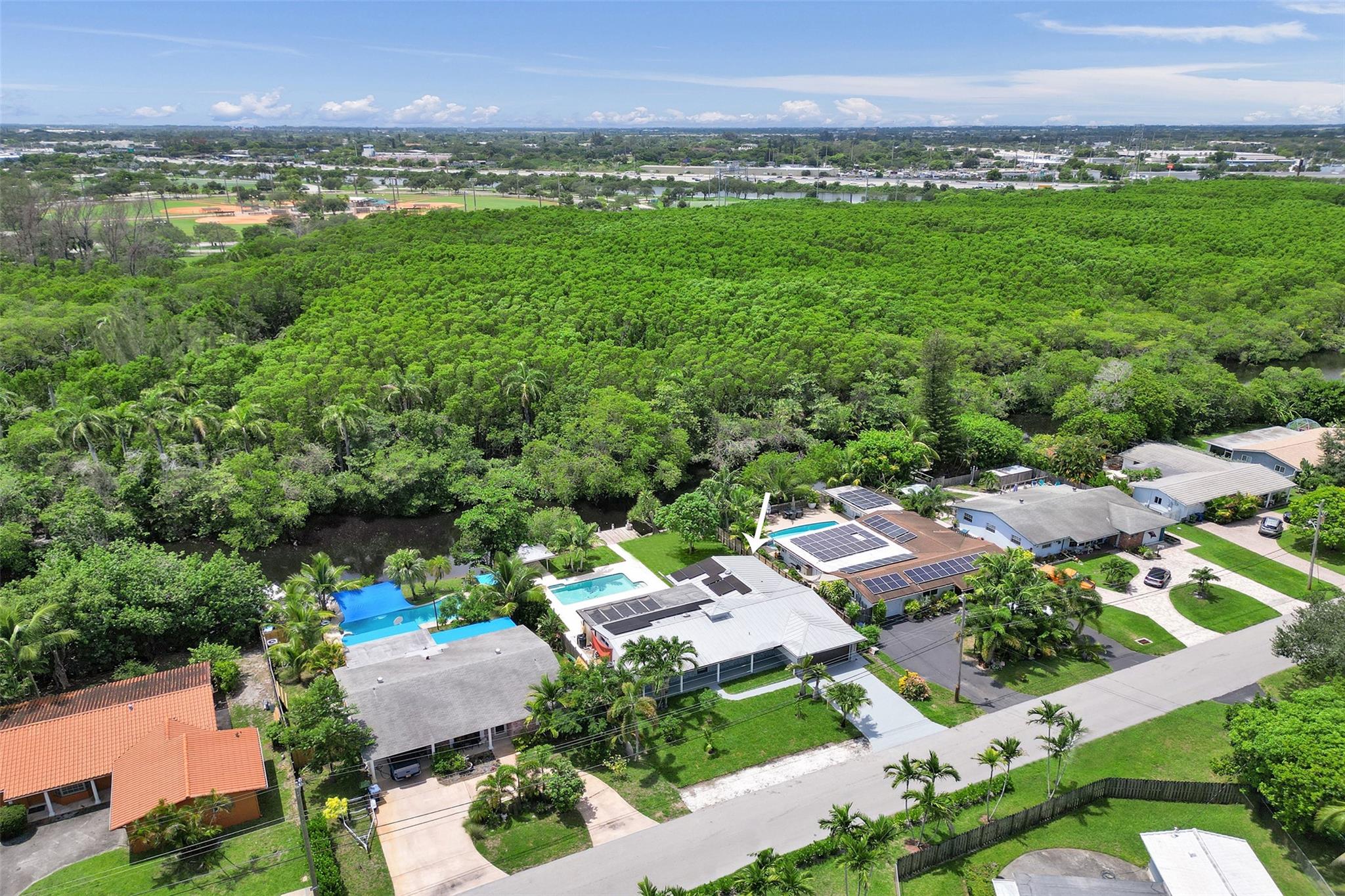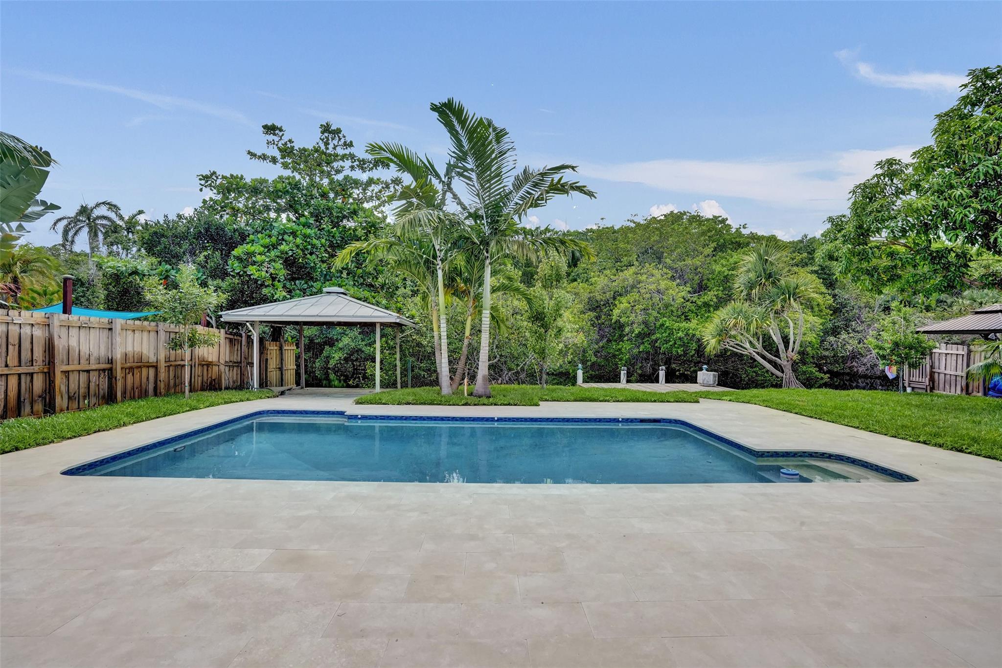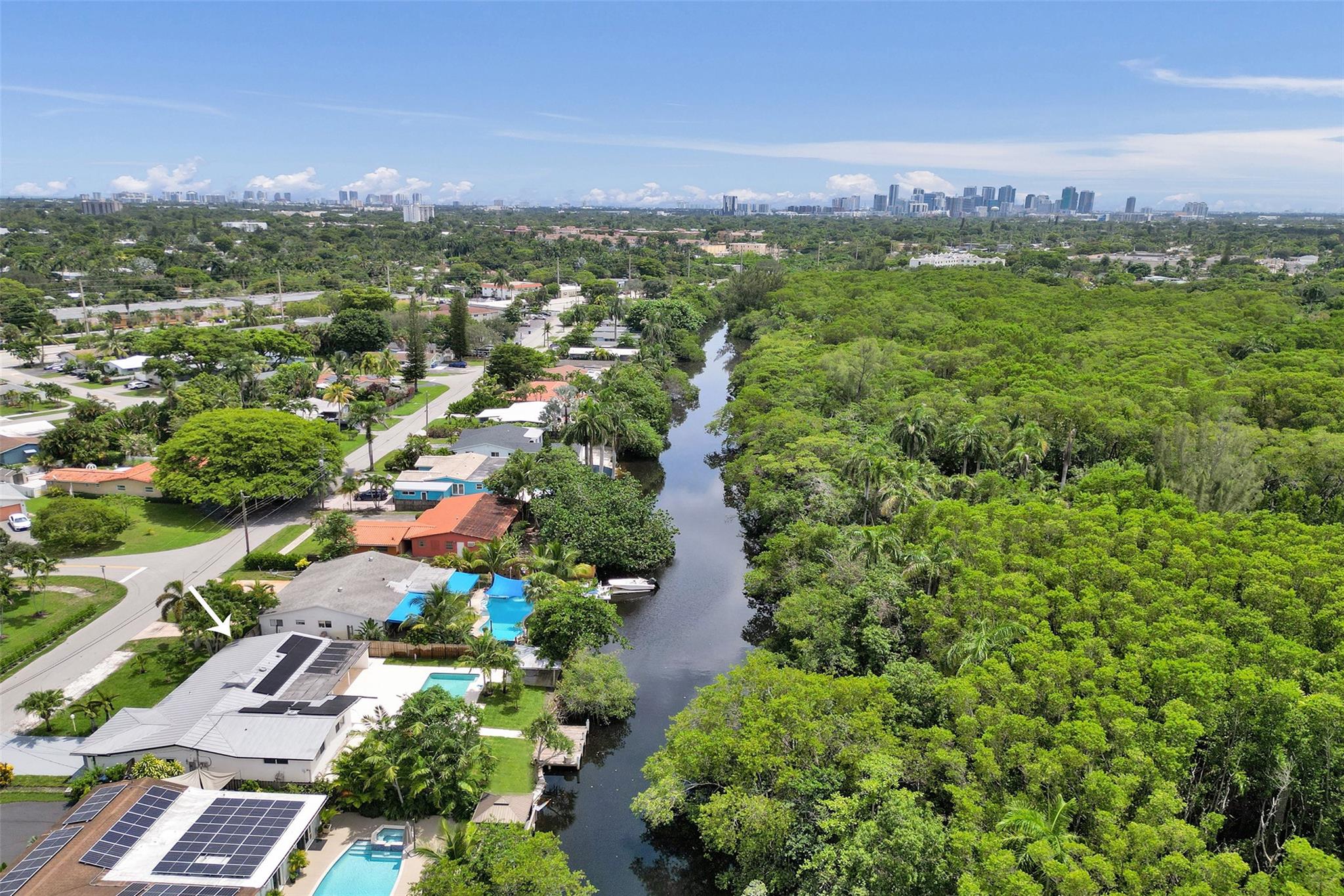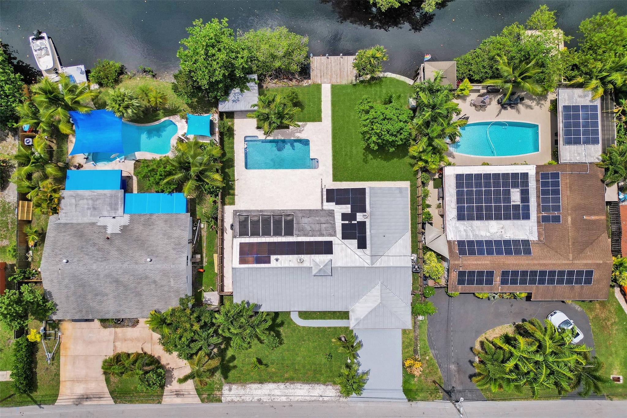 For those seeking a luxuriously remodeled, contemporary home w/ ocean access & extensive upgrades, look no further—this is your private paradise! Striking stacked-stone façade w/ 2002 metal roof & energy-efficient 2024 solar panels. Inside, the open-concept kitchen showcases shaker cabinetry, quartz counters, waterfall-edge bar & premium appliances accented in gold. Split BR layout ensures privacy, while spa-inspired baths create a resort-like atmosphere. Elegant porcelain tile flows thru/out, supported by a 2-zone AC system (2020/2022). Step outside to your oversized backyard designed for entertaining, featuring Jerusalem stone patio, sparkling pool, tiki hut & private dock. 2-car garage, sep. laundry, upgraded lighting, fans & more add to this exceptional property...a true must-see!
