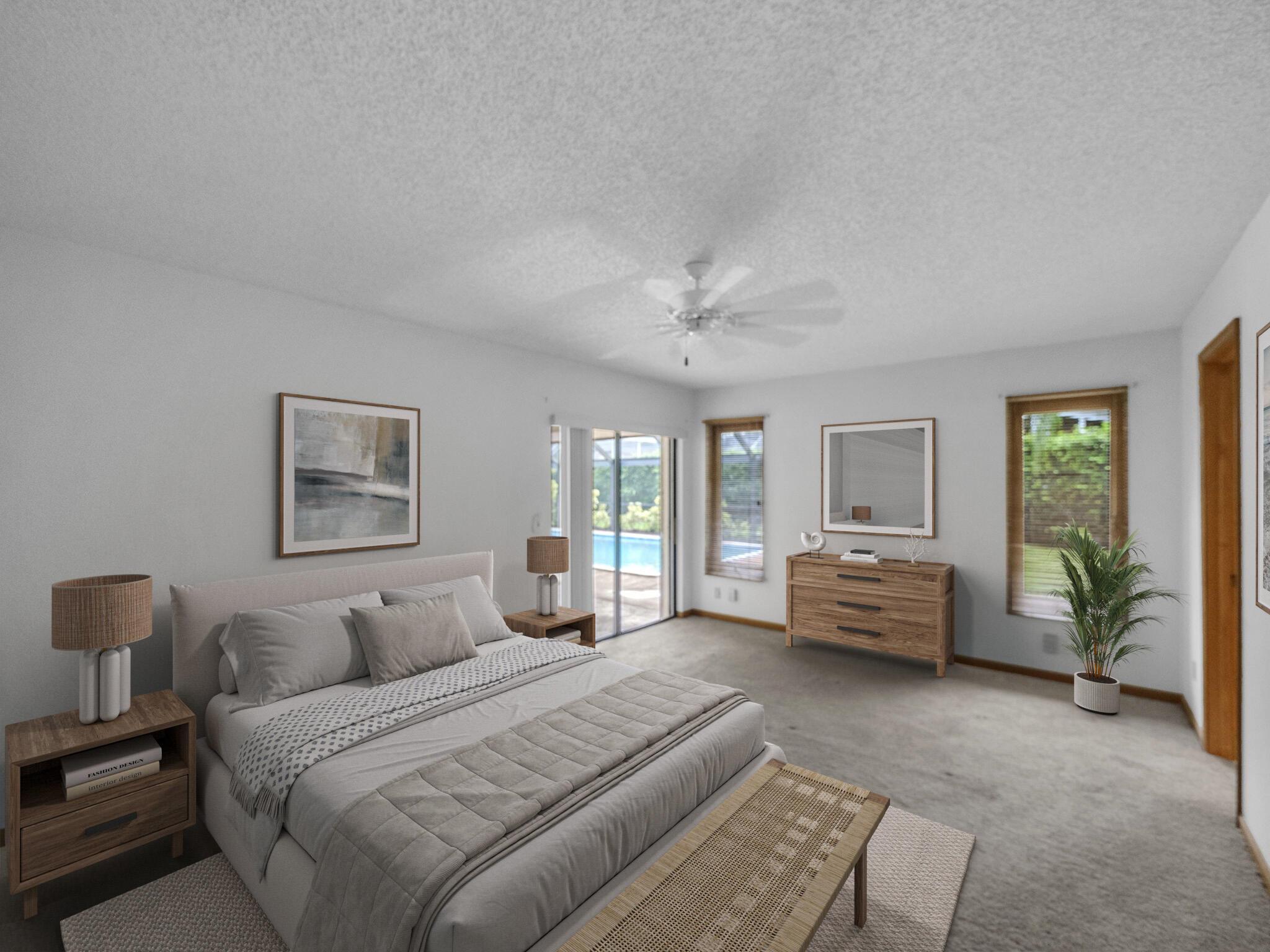 Original owner home, meticulously maintained and built with quality CBS construction. The versatile floor plan is ideal for those seeking a solid investment with the opportunity to remodel and personalize to their taste. This residence has been lovingly cared for and provides the perfect canvas for updating! The flexible layout includes 2 LARGE bedrooms w/walk in closets. Master has cabana bath & sliders open to pool. The den and laundry room can both be converted into a 3rd & 4th bedroom/office. The 1/2 bath has space to add a shower. Features include metal roof, soaring cathedral ceilings, a cozy fireplace, 2019 ac unit and pocket sliding doors that connect indoor and outdoor living. The private oversized backyard has a screened in pool that was resurfaced and retiled in 2024,