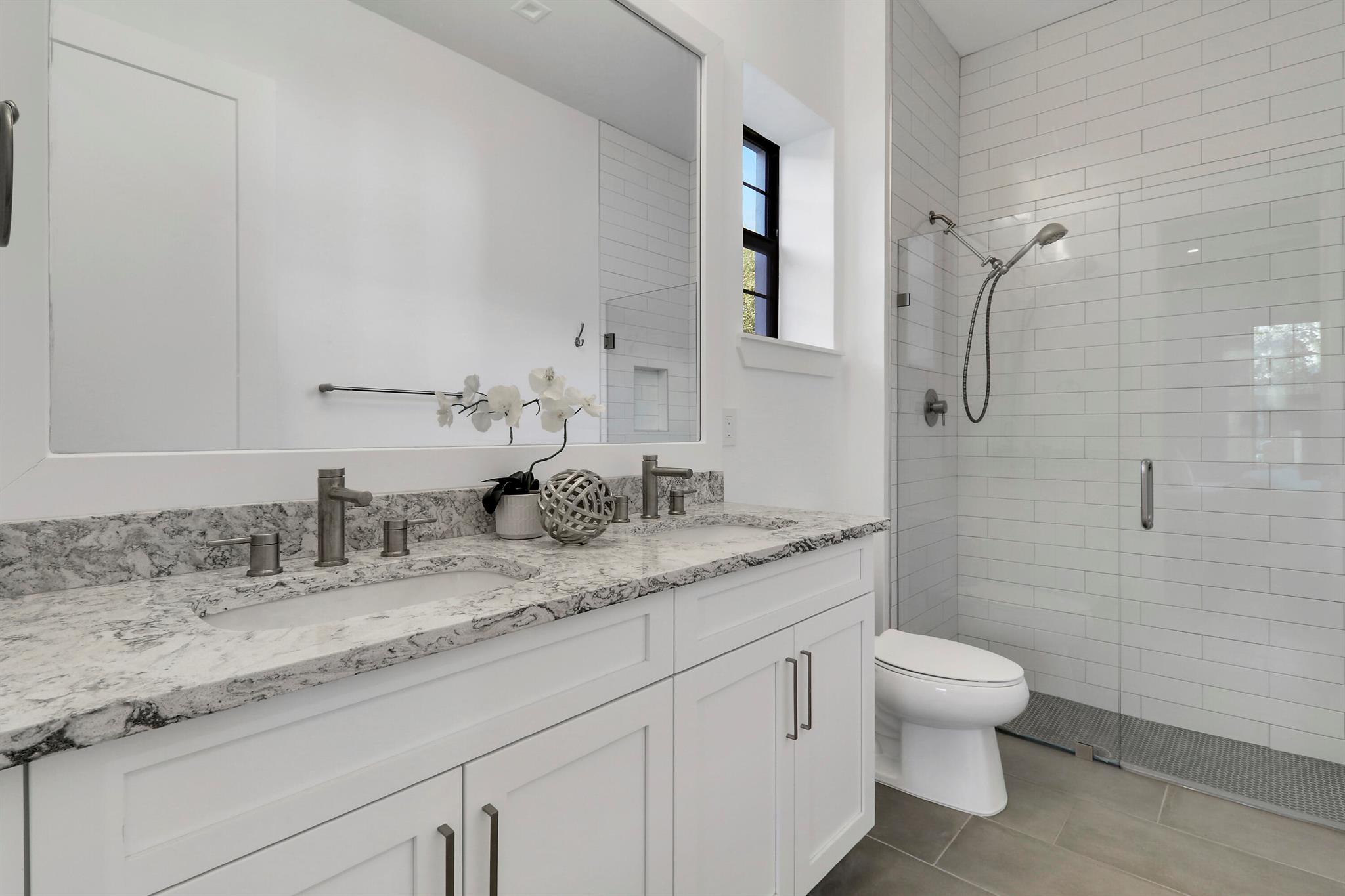 Welcome to the gated community of Banyan Cay, where luxury living meets modern design. This stunning Grenada model built in 2021 offers 3 bedrooms and 3.5 bathrooms plus a 2-car garage, complemented by exceptional upgrades and thoughtful details throughout. An elegant den features custom built-in shelves with a library ladder and a cozy seating area, while the chef's kitchen boasts floor-to-ceiling cabinetry, quartz countertops, and upgraded appliances.The main level includes a bedroom with an attached full bathroom, perfect for guests, a large storage closet under the stairs, and open living spaces that feature motorized shades. Sliding doors in the living room and kitchen open seamlessly to the covered patio, creating inviting indoor/outdoor living during the cooler months.