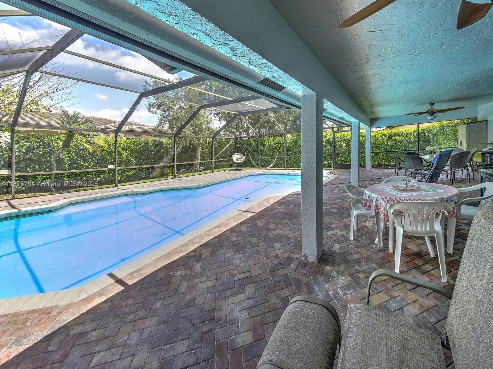 This beautiful 4 bedrooms and 2 bathrooms single-home features a bright eat-in kitchen with oak cabinets, spacious counter space, vaulted ceilings, a security system, and a recently remodeled bathroom. Perfect for families with children and pets, for entertainment and serene relaxation in a domed screened pool, surrounded by a beautiful landscape oasis. All living areas have access to the pool and deck. Covered patio area for barbequing with cool deck surface. Two-car garage, spacious living areas, and dining room. The perfect home for holiday gatherings or simply enjoying the Florida lifestyle in a great community. NO HOA