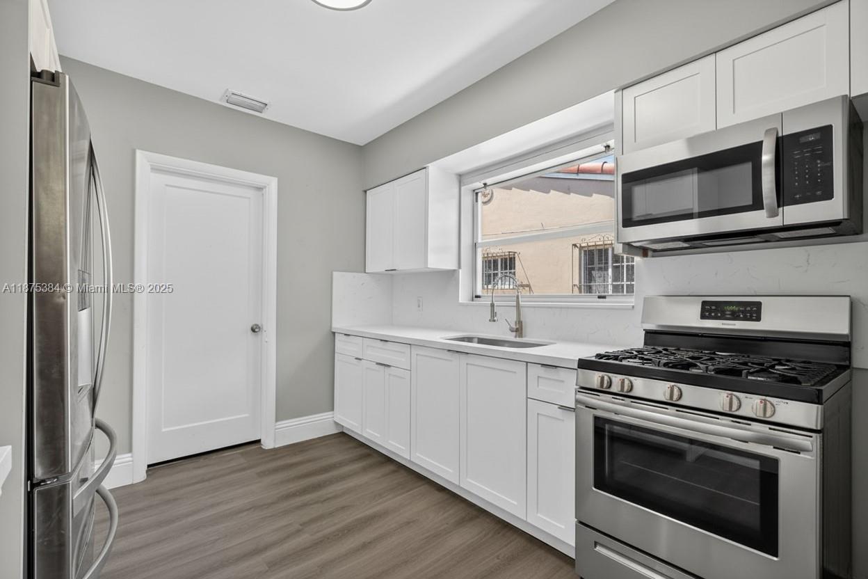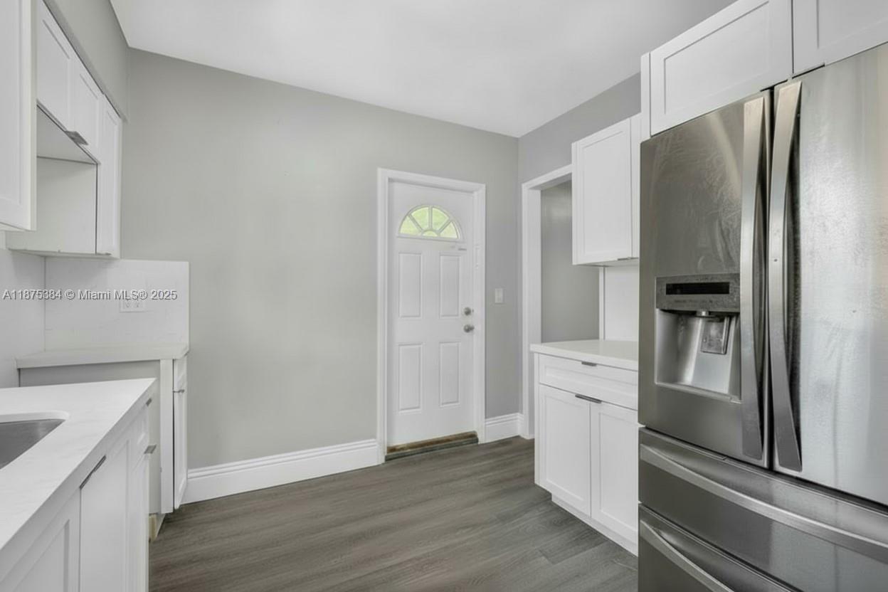 Renovated Starter Home w/ brand new vinyl floors & paint, brand new modern white kitchen w/ stainless steel appliances. Bright Floor plan w/ lots of windows. Mostly PVC & Copper Plumbing. NEW IMPACT WINDOWS INSTALLED NOV 20/25. APPLIANCES in process of installation included in the price. Large screened patio. Roof 10-11 years. AC 2022. Centrally located in Miami, just 15 mins from Coconut Grove, Brickell, Coral Gables, Merrick Park, close to parks, schools. Large backyard with extra concrete storage room. Plenty of Room for RV or boat. NO HOA great for investors, FHA/VA/CONV financing okay. Huge Backyard to make it a paradise or add a pool and pergola for enjoying the outdoors. 3rd bedroom is a large room from converted garage, perfect for in law quarters, or convert back to a 1 car garage.