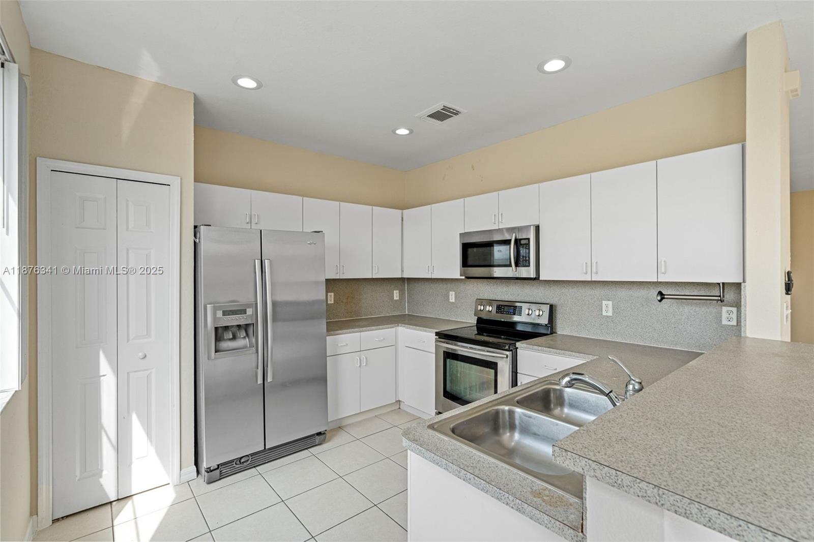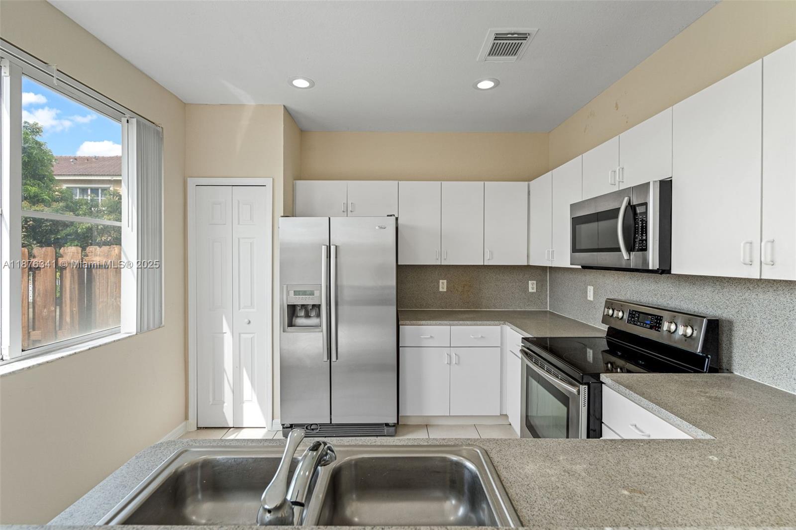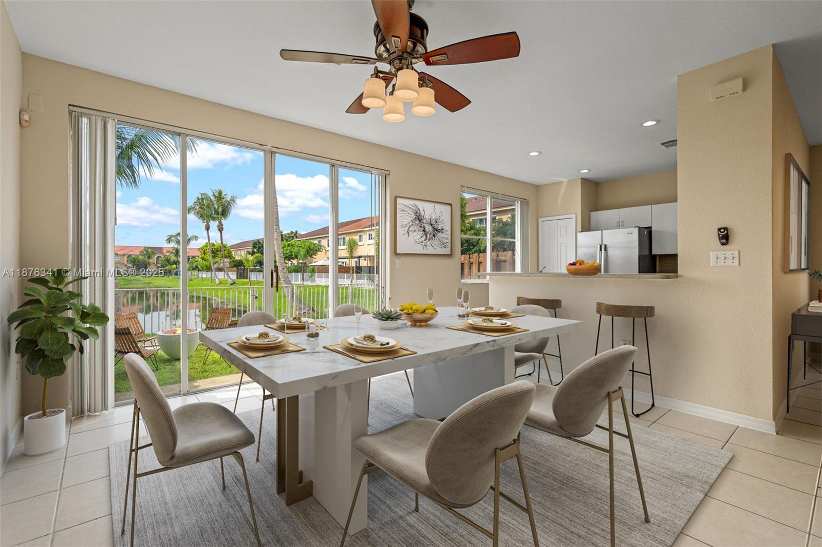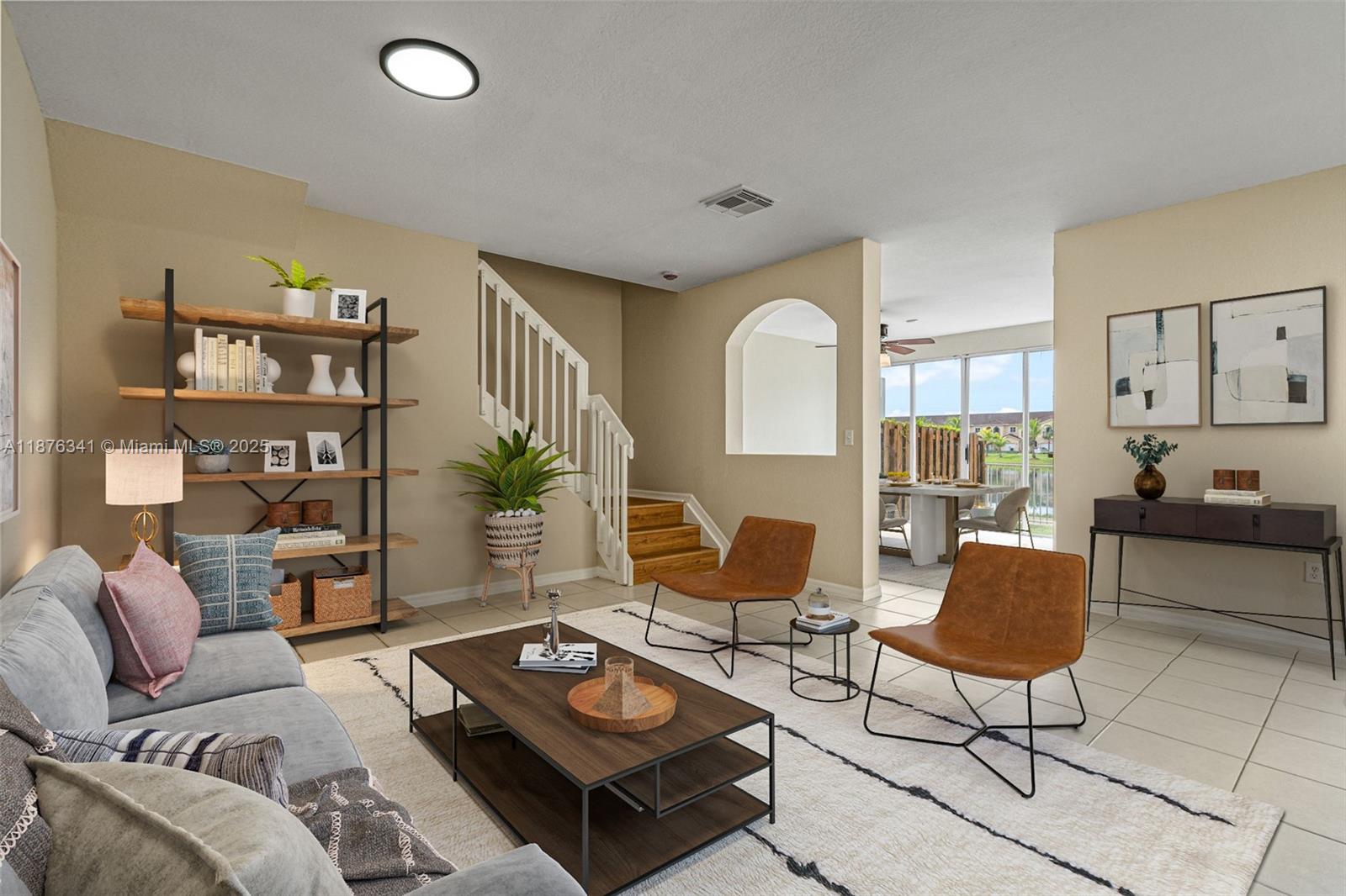 Welcome to Sunset Lake Townhomes in West Miami! This spacious 4-bedroom, 2.5-bathroom townhouse offers nearly 2,000 sq ft of living space and a desirable two-car garage. The interior has been freshly painted, features a new A/C, and boasts new luxury vinyl floors upstairs. The open floor plan connects to a private back patio with serene lake views, ideal for relaxing or entertaining. Upstairs, the bedrooms are generously sized, offering comfort and flexibility for today’s lifestyle. With its size, layout, and waterfront setting, this residence truly feels like a single-family home. To help visualize this home’s floor plan and to highlight its potential, virtual furnishings may have been added to photos found in this listing.