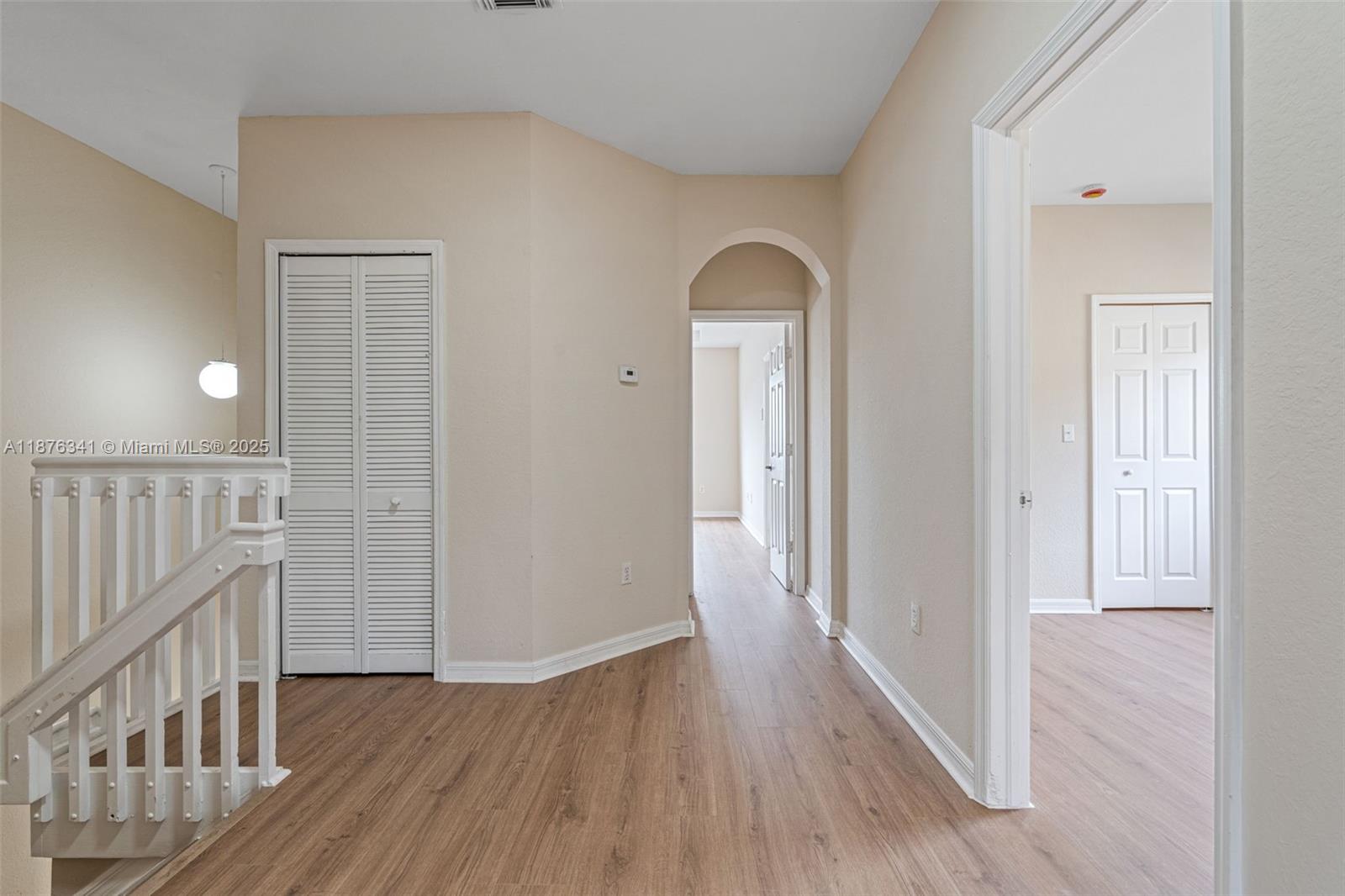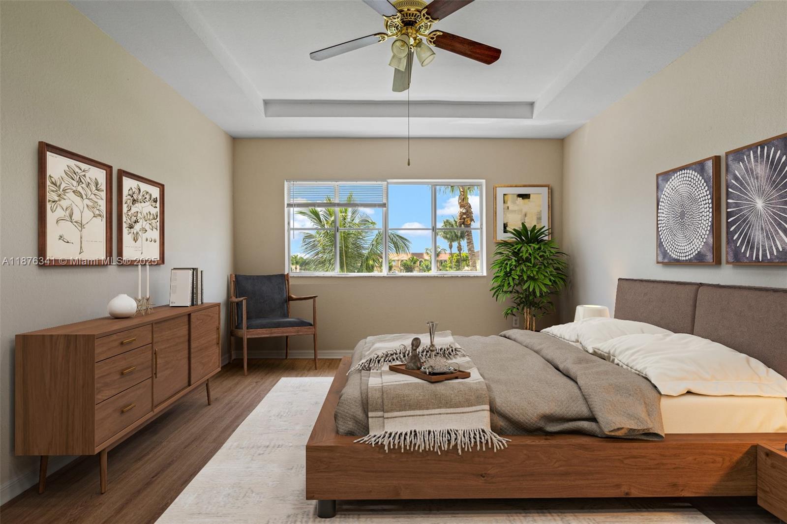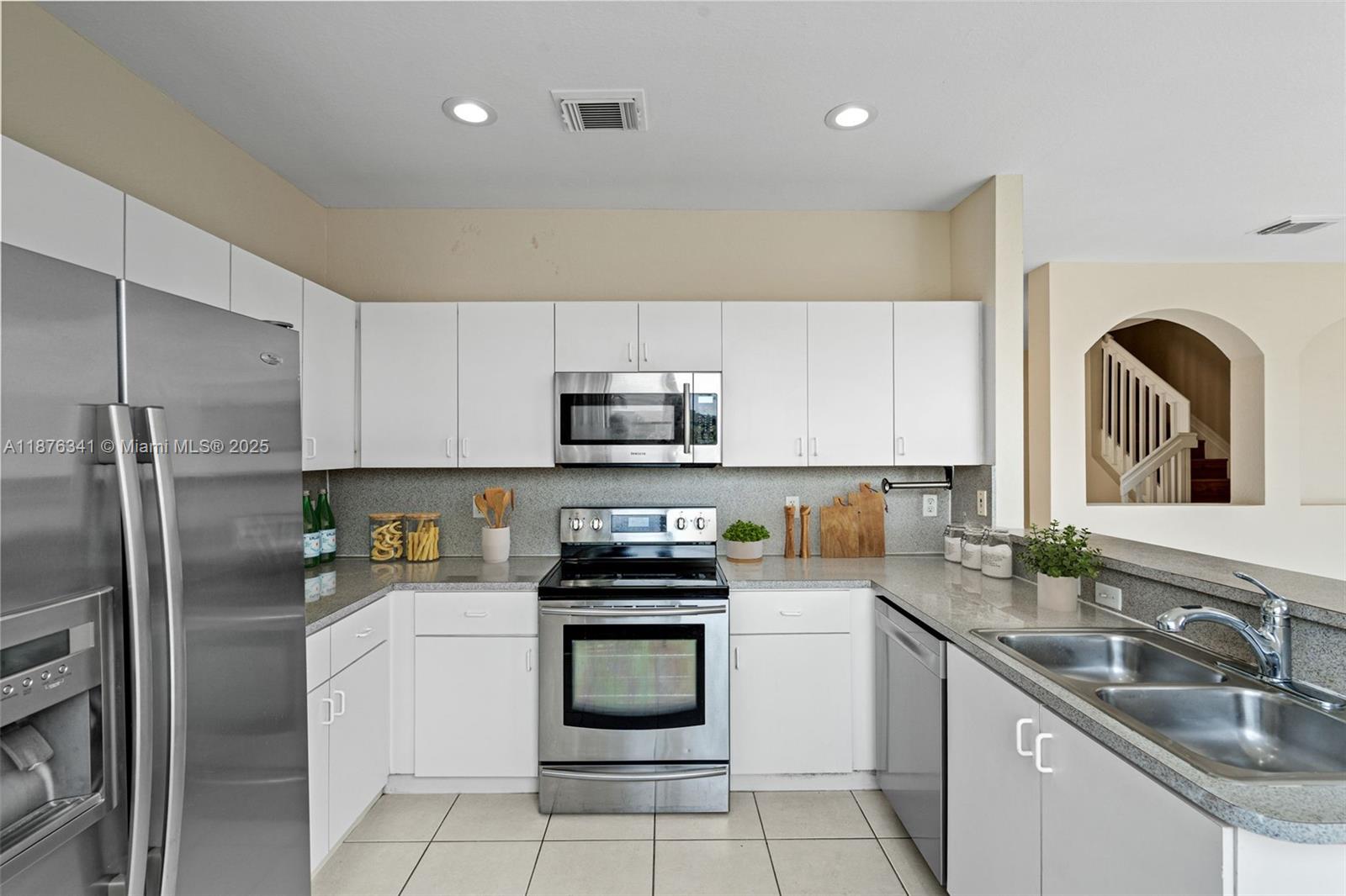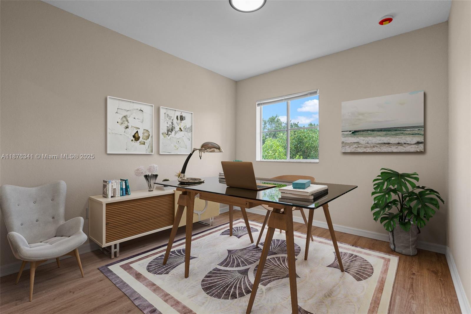 Welcome to Sunset Lake Townhomes in West Miami! This spacious 4-bedroom, 2.5-bathroom townhouse offers nearly 2,000 sq ft of living space and a desirable two-car garage. The interior has been freshly painted, features a new A/C, and boasts new luxury vinyl floors upstairs. The open floor plan connects to a private back patio with serene lake views, ideal for relaxing or entertaining. Upstairs, the bedrooms are generously sized, offering comfort and flexibility for today’s lifestyle. With its size, layout, and waterfront setting, this residence truly feels like a single-family home. To help visualize this home’s floor plan and to highlight its potential, virtual furnishings may have been added to photos found in this listing.