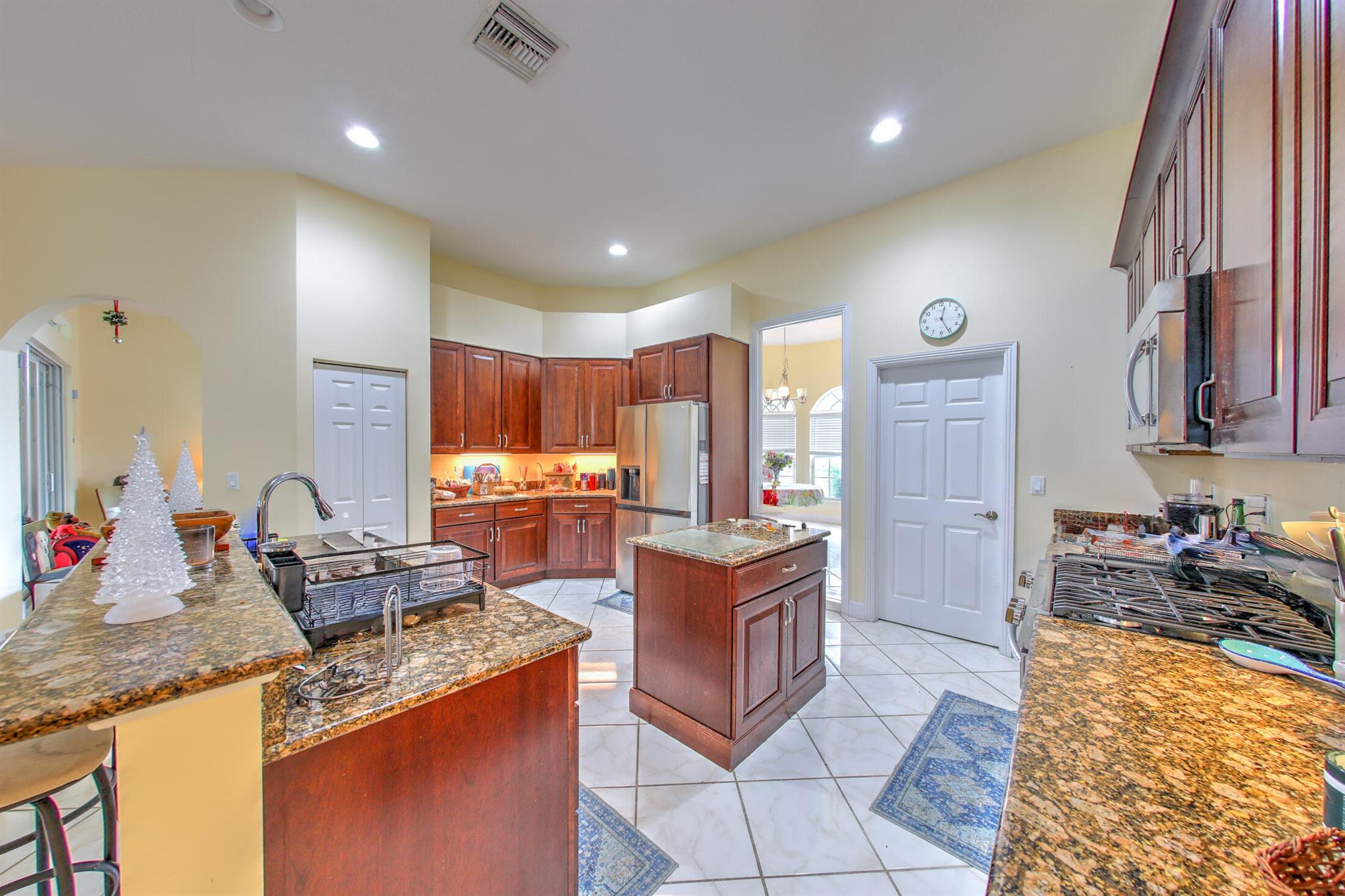 Nestled in the desirable east area of Port St. Lucie, this beautiful custom home with a Mediterranean Style flair offers the perfect blend of elegance, space, style and comfort. Home Features: 4 BR,3 Full baths, a den/office, formal dining, living and family room, Impact windows and doors and resort style pool. As you step inside, you'll be welcomed by an open concept layout, tile flooring throughout and custom triple tray/ volume ceiling, creating a seamless and modern feel from room to room. Kitchen has granite countertops,Built-in Island,SS appliances, Gas Stove and custom cabinetry. Master bedroom includes his and hers closets,open Walk-In shower and a separate jacuzzi tub. Home is closer to Jensen Beach/Martin County, minutes away to beaches,shopping,restaurants,hospital and schools.