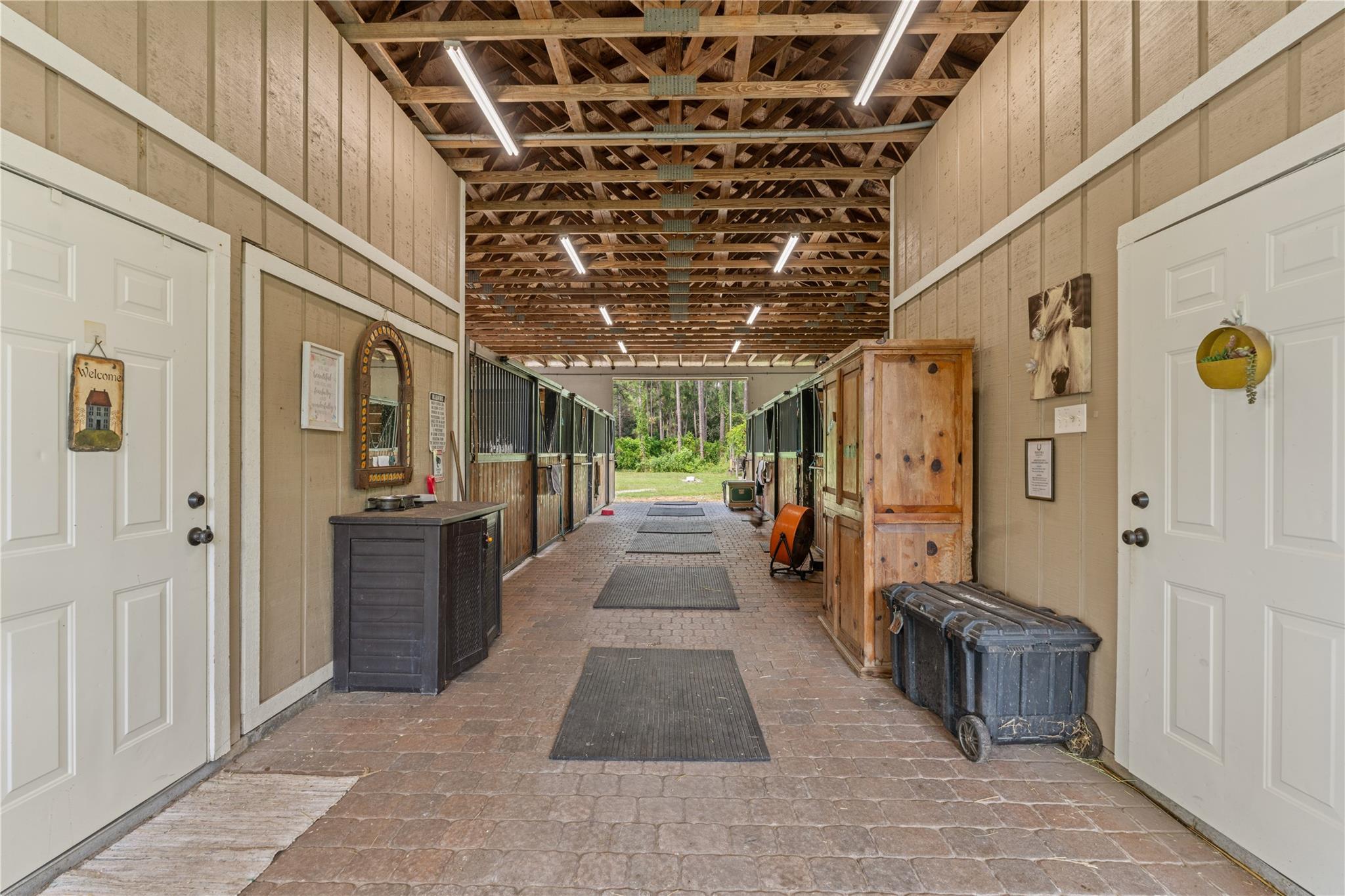 Equestrian’s Dream Property! TWO LOTS spanning across almost 3 acres of pristine property just minutes to the horseshow. CBS airy center aisle barn with 6 12x12 stalls with individual fans and windows with "smart" wiring system and tack & feed rooms, 150’X120’ professionally built irrigated and lit sand ring with drainage base, 3 paddocks w/ room for more. Trailer entrance at back of property & another driveway for hay, feed, etc. separate from main drive to house. 2000 CBS, 4 bed / 3 bath main house with additional office. Upgrades include complete impact glass, roof 2021, 2 new A/Cs in 2022, pool & spa heater 2024, LVP flooring throughout. So many more upgrades you must see for yourself. Bring the family, bring the horses and get ready to enjoy.