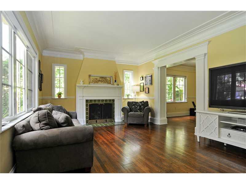 Updated old Spanish beauty exudes charm and ambiance! Formal living room w/fireplace. Formal dining room. Spacious, cheerful eat-in kitchen w/family room. 2 large bedrooms downstairs w/bonus room, master upstairs. Wood floors. NEW impact windows and doors , electrical, LG W/D, Bosch dishwasher, ceiling fans, exterior lighting all in 2013! Lushly landscaped yard with picturesque brick patio and fountain. Picture perfect!