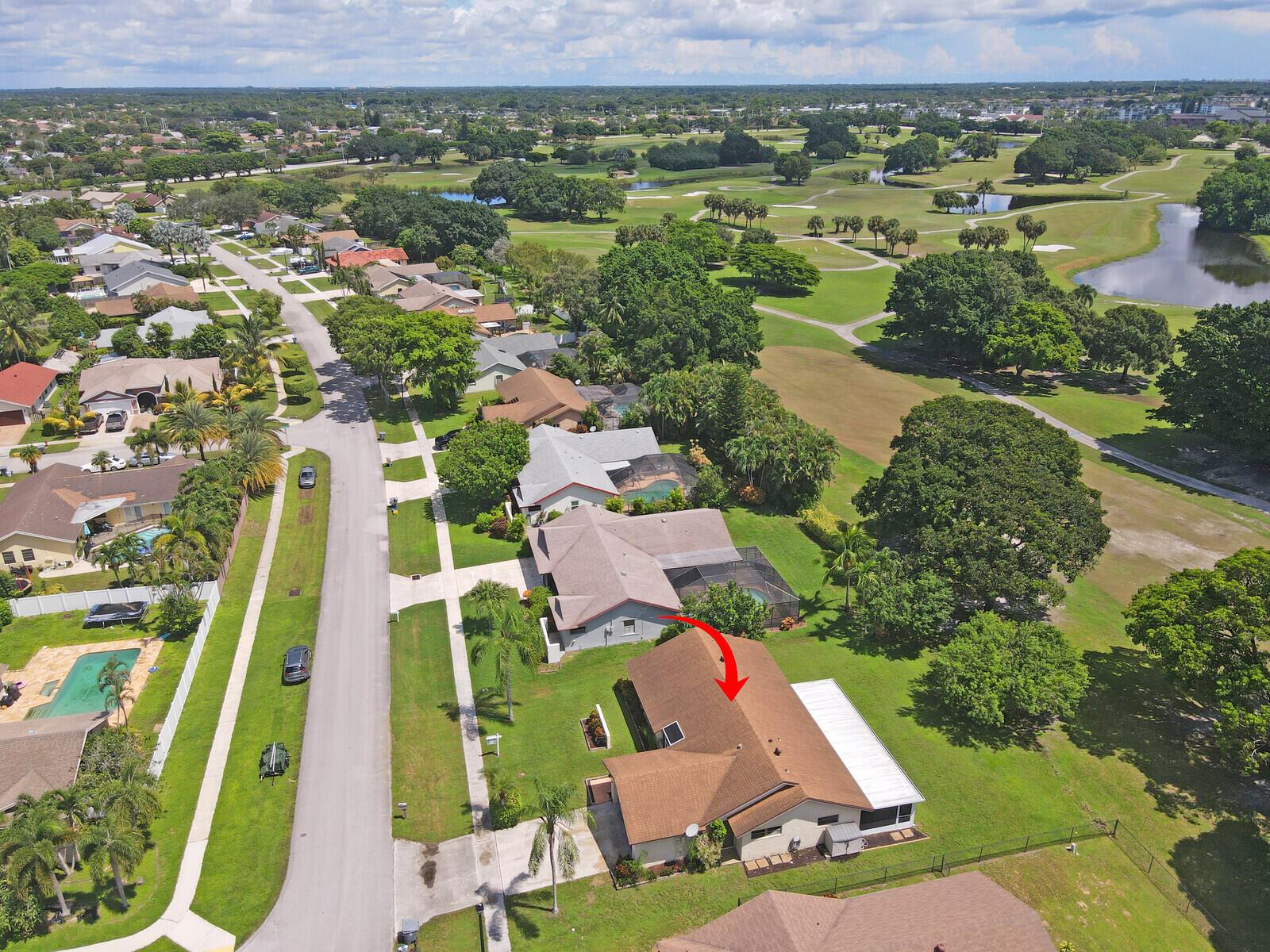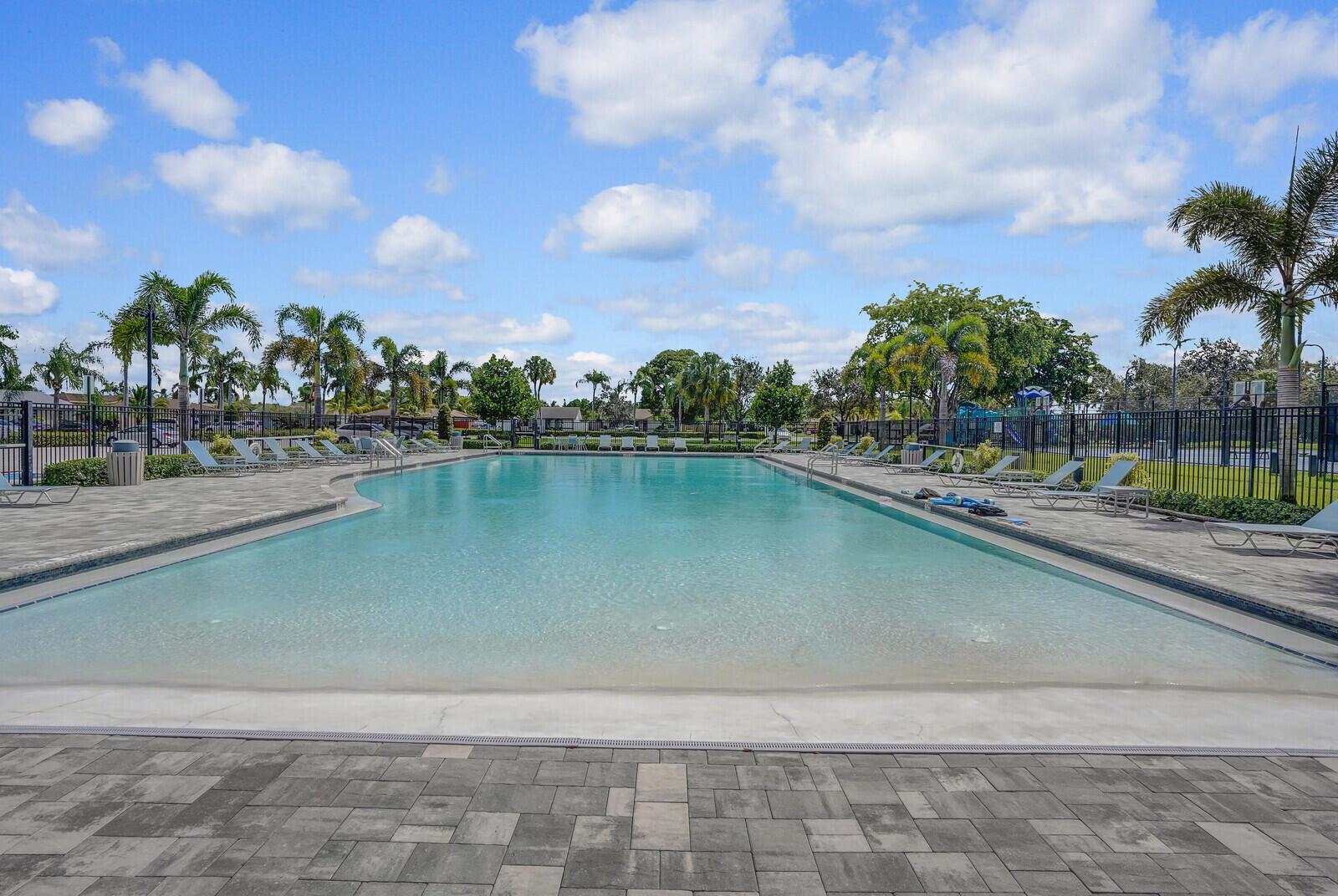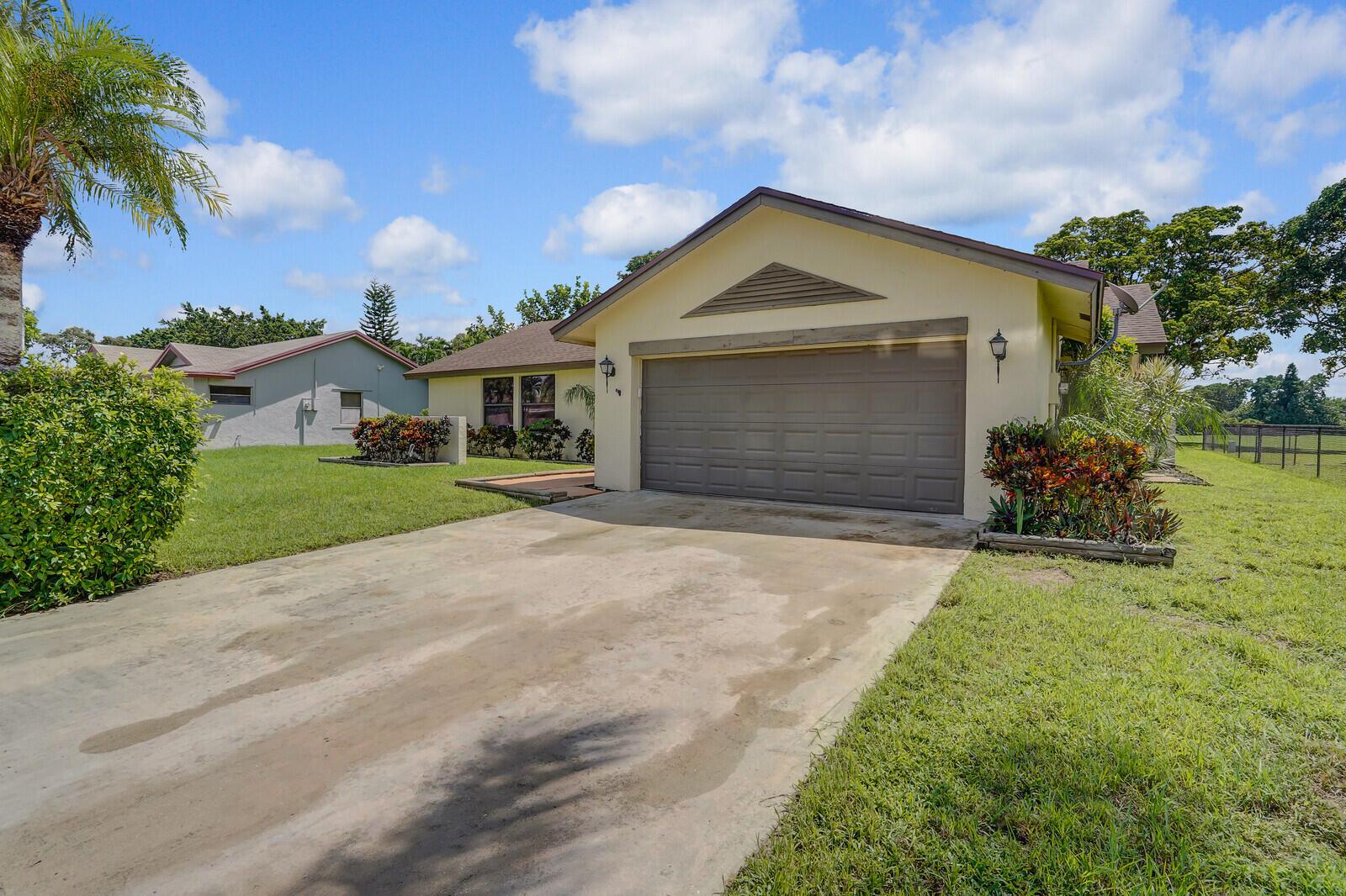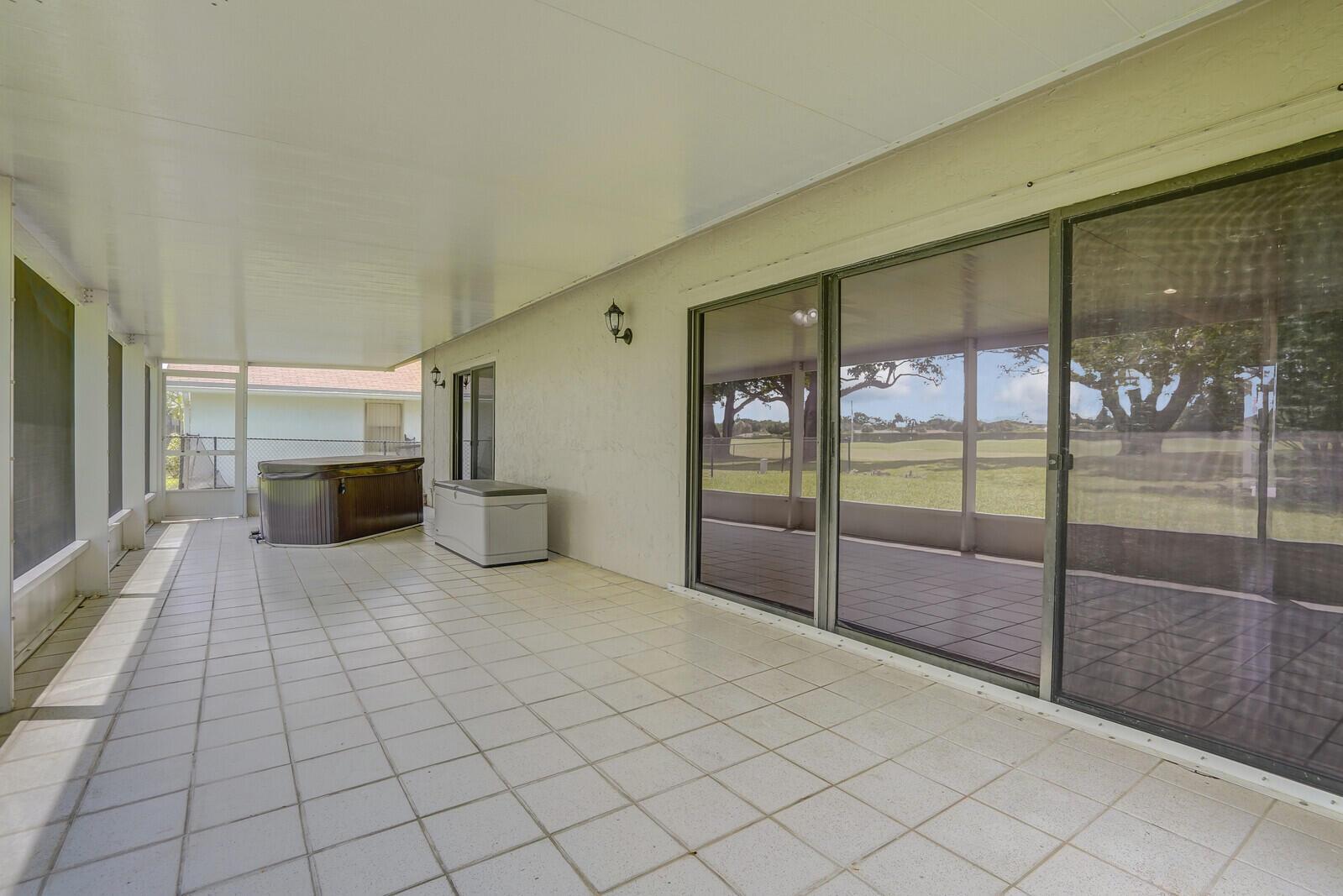 Incredible VALUE! Superb views are seen from this 'RARE'' 3-bedroom, 2-bath, 2-car garage, PLUS BONUS ROOM DEN/OFFICE, (can easily become a 4th BEDROOM by adding a closet) one-story single-family home directly on the Palm Beach County Southwinds Golf course. Large and private backyard with a covered and screened patio almost the full width of the home! The roof was installed 7/17/2020, A/C installed 9/14/2024 and upgraded kitchen cabinets with solid surface countertops. Living areas are fully tiled! INCREDIBLY LOW HOA just $75 MONTHLY. Newly upgraded community lighted amenities include pool, Gathering place, playground area, tennis, pickleball and basketball courts. Highly rated schools. No membership or dues required to play on the Palm Beach County Golf Course. Just pay and play