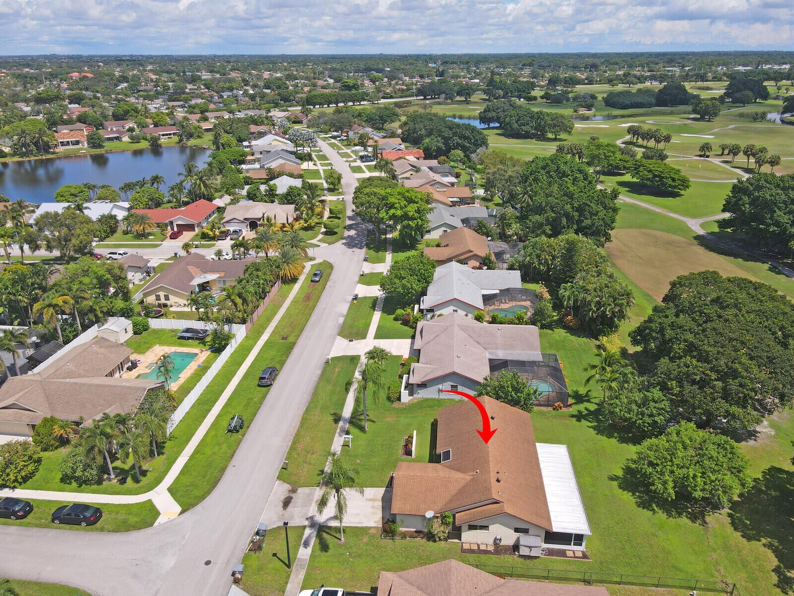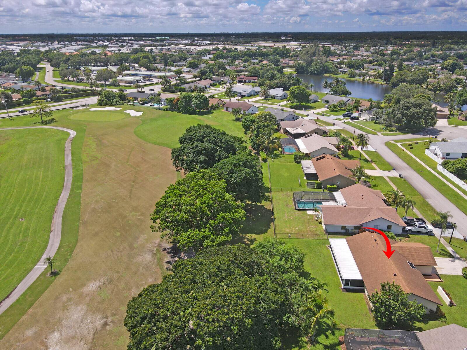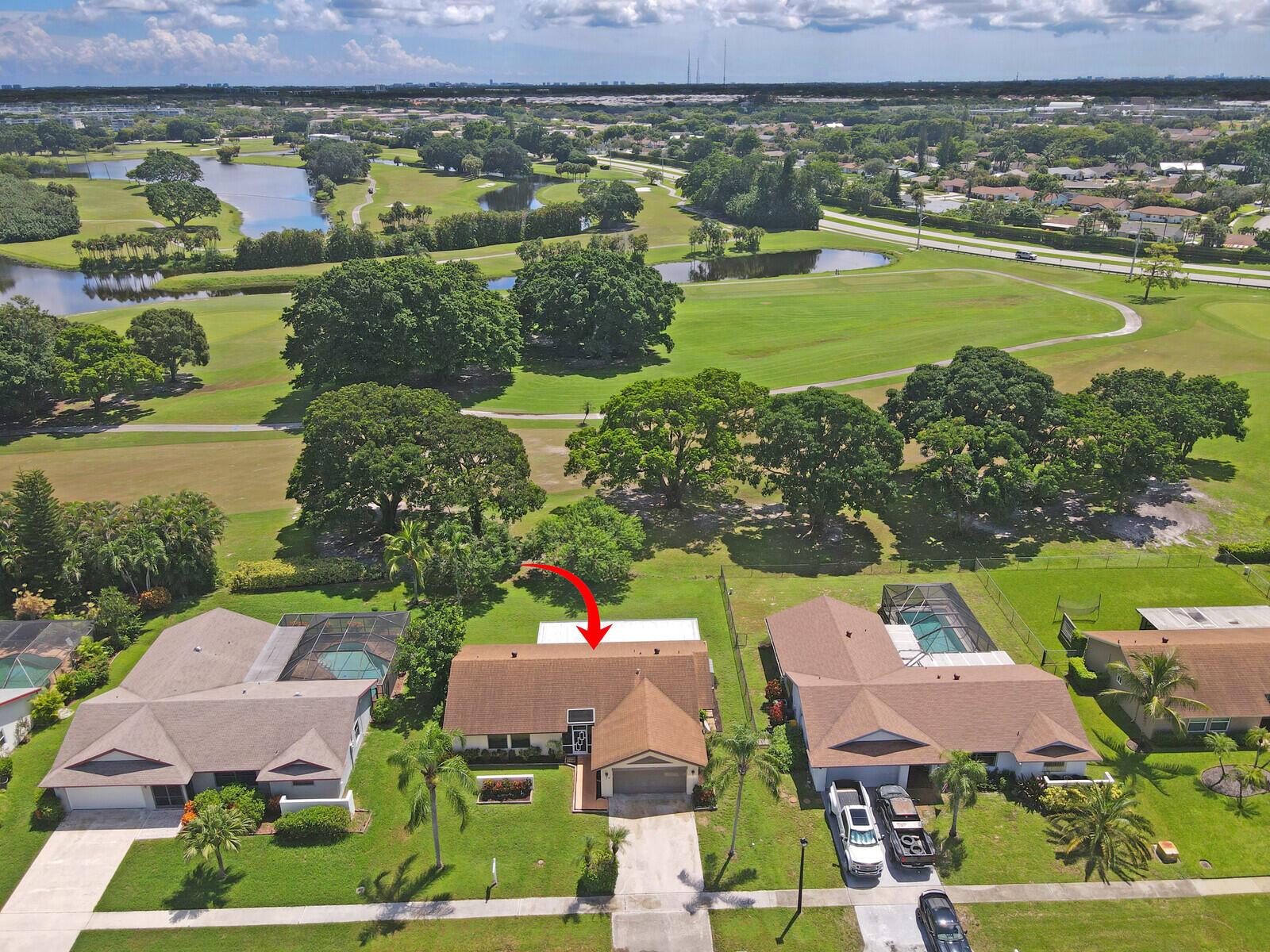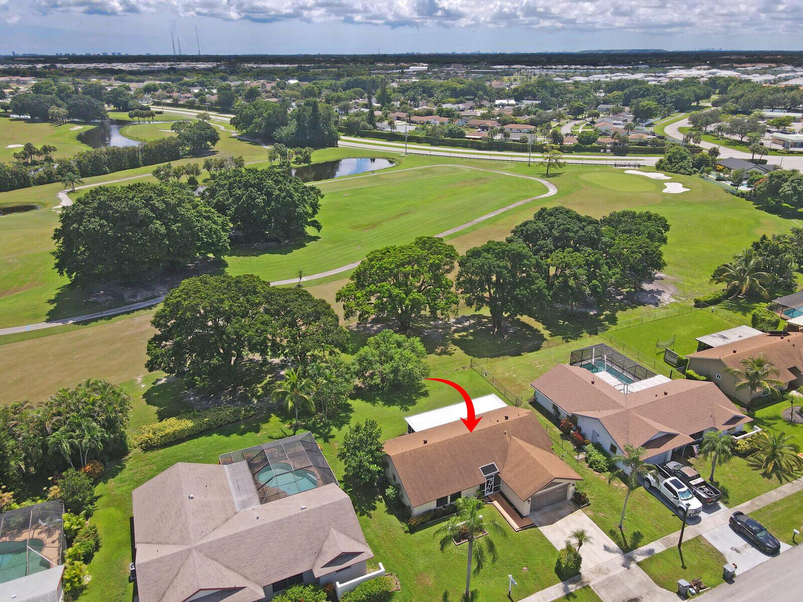 Incredible VALUE! Superb views are seen from this 'RARE'' 3-bedroom, 2-bath, 2-car garage, PLUS BONUS ROOM DEN/OFFICE, (can easily become a 4th BEDROOM by adding a closet) one-story single-family home directly on the Palm Beach County Southwinds Golf course. Large and private backyard with a covered and screened patio almost the full width of the home! The roof was installed 7/17/2020, A/C installed 9/14/2024 and upgraded kitchen cabinets with solid surface countertops. Living areas are fully tiled! INCREDIBLY LOW HOA just $75 MONTHLY. Newly upgraded community lighted amenities include pool, Gathering place, playground area, tennis, pickleball and basketball courts. Highly rated schools. No membership or dues required to play on the Palm Beach County Golf Course. Just pay and play