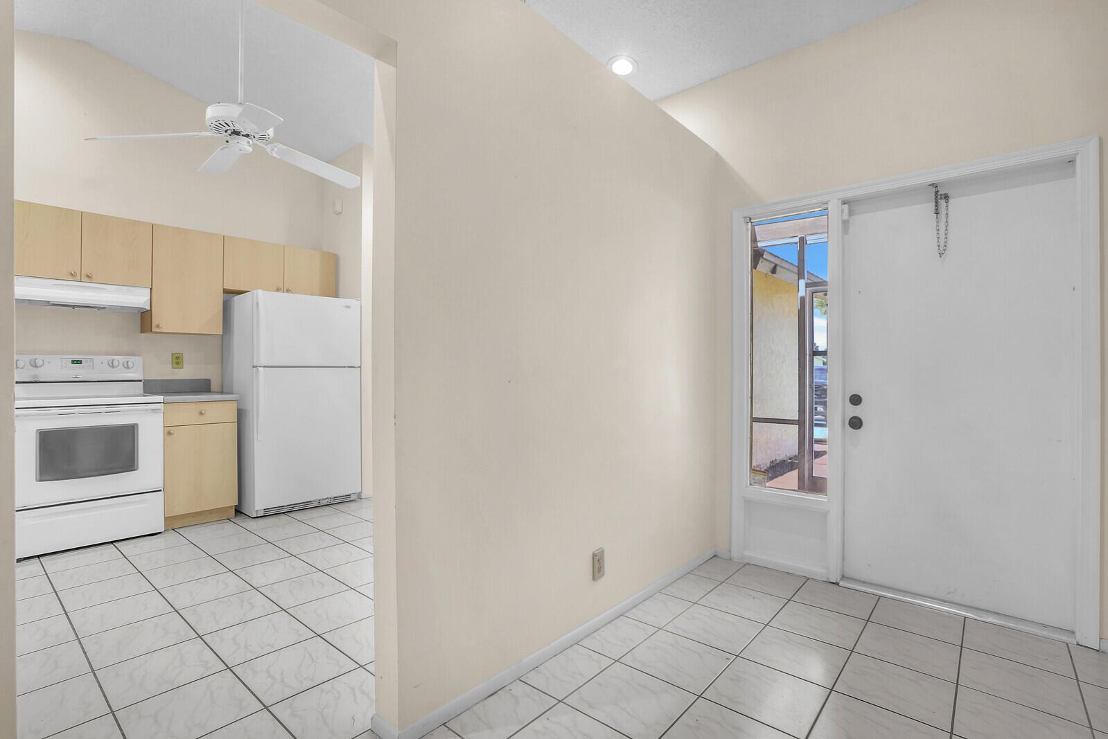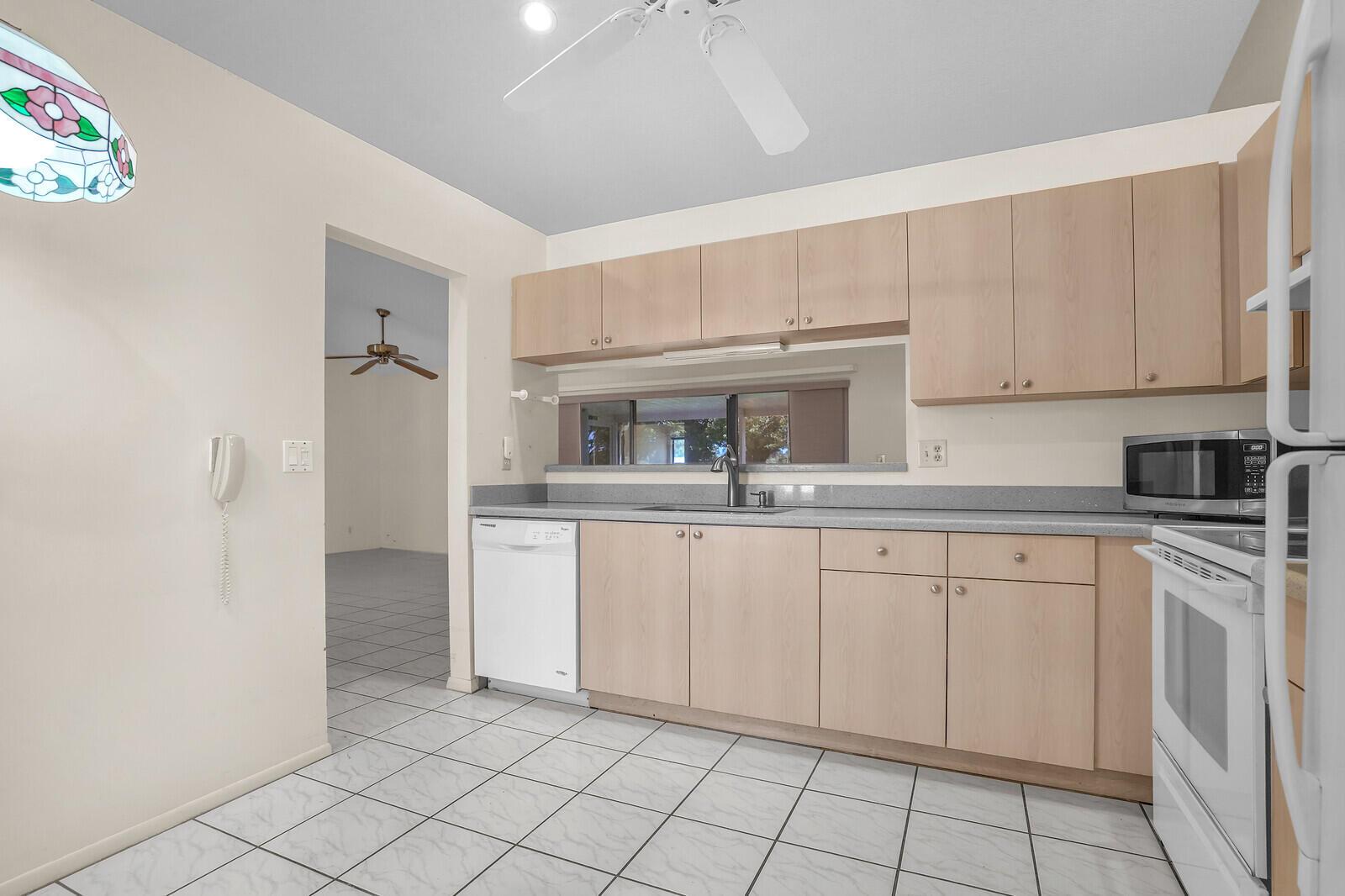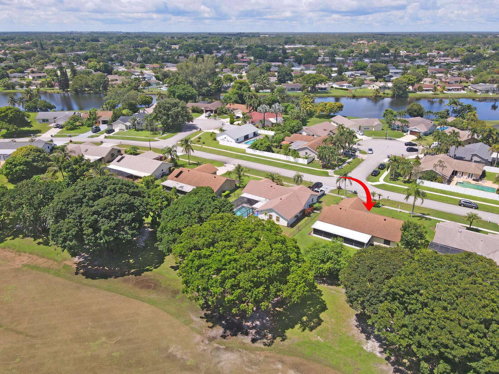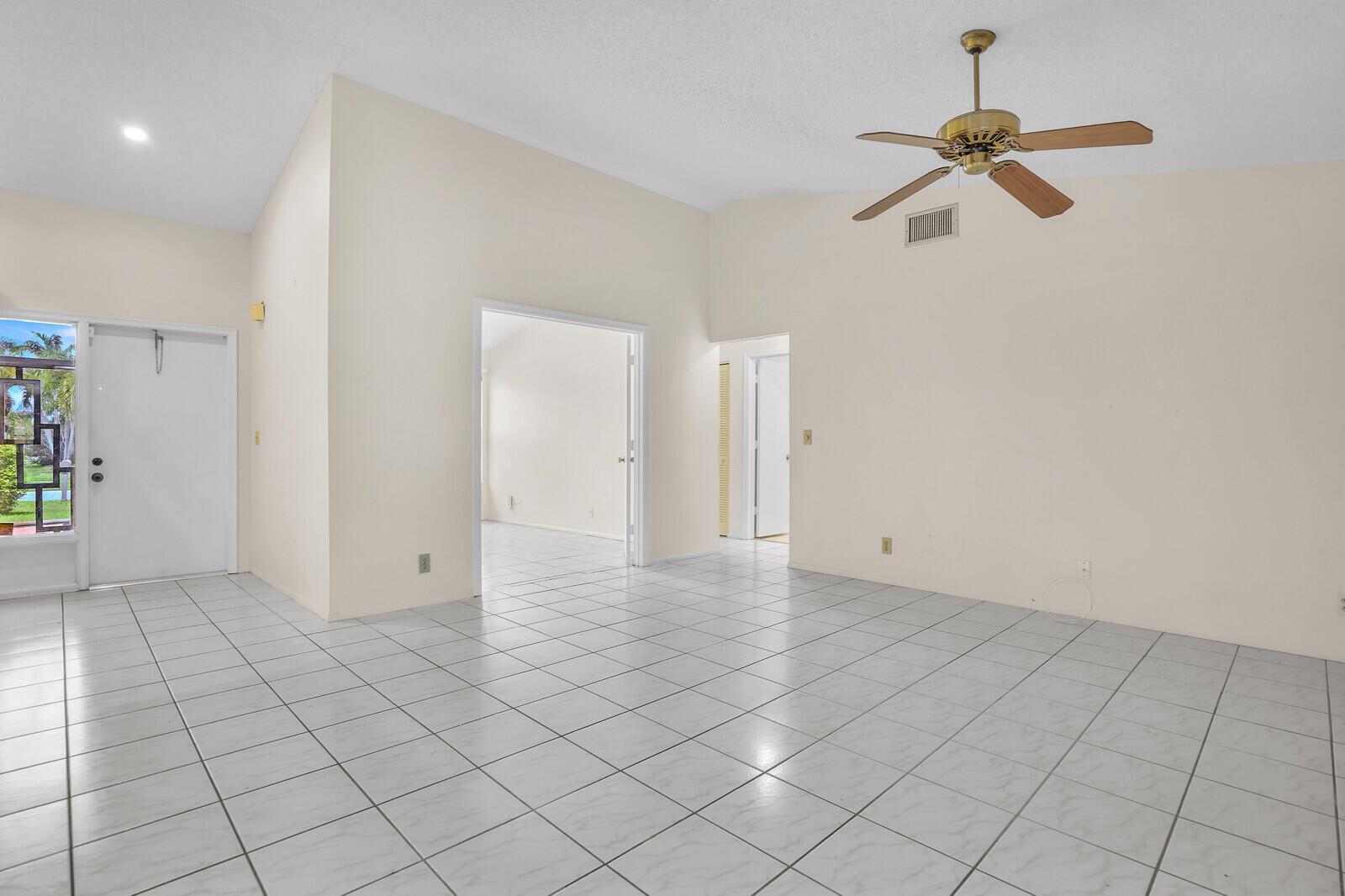 Incredible VALUE! Superb views are seen from this 'RARE'' 3-bedroom, 2-bath, 2-car garage, PLUS BONUS ROOM DEN/OFFICE, (can easily become a 4th BEDROOM by adding a closet) one-story single-family home directly on the Palm Beach County Southwinds Golf course. Large and private backyard with a covered and screened patio almost the full width of the home! The roof was installed 7/17/2020, A/C installed 9/14/2024 and upgraded kitchen cabinets with solid surface countertops. Living areas are fully tiled! INCREDIBLY LOW HOA just $75 MONTHLY. Newly upgraded community lighted amenities include pool, Gathering place, playground area, tennis, pickleball and basketball courts. Highly rated schools. No membership or dues required to play on the Palm Beach County Golf Course. Just pay and play