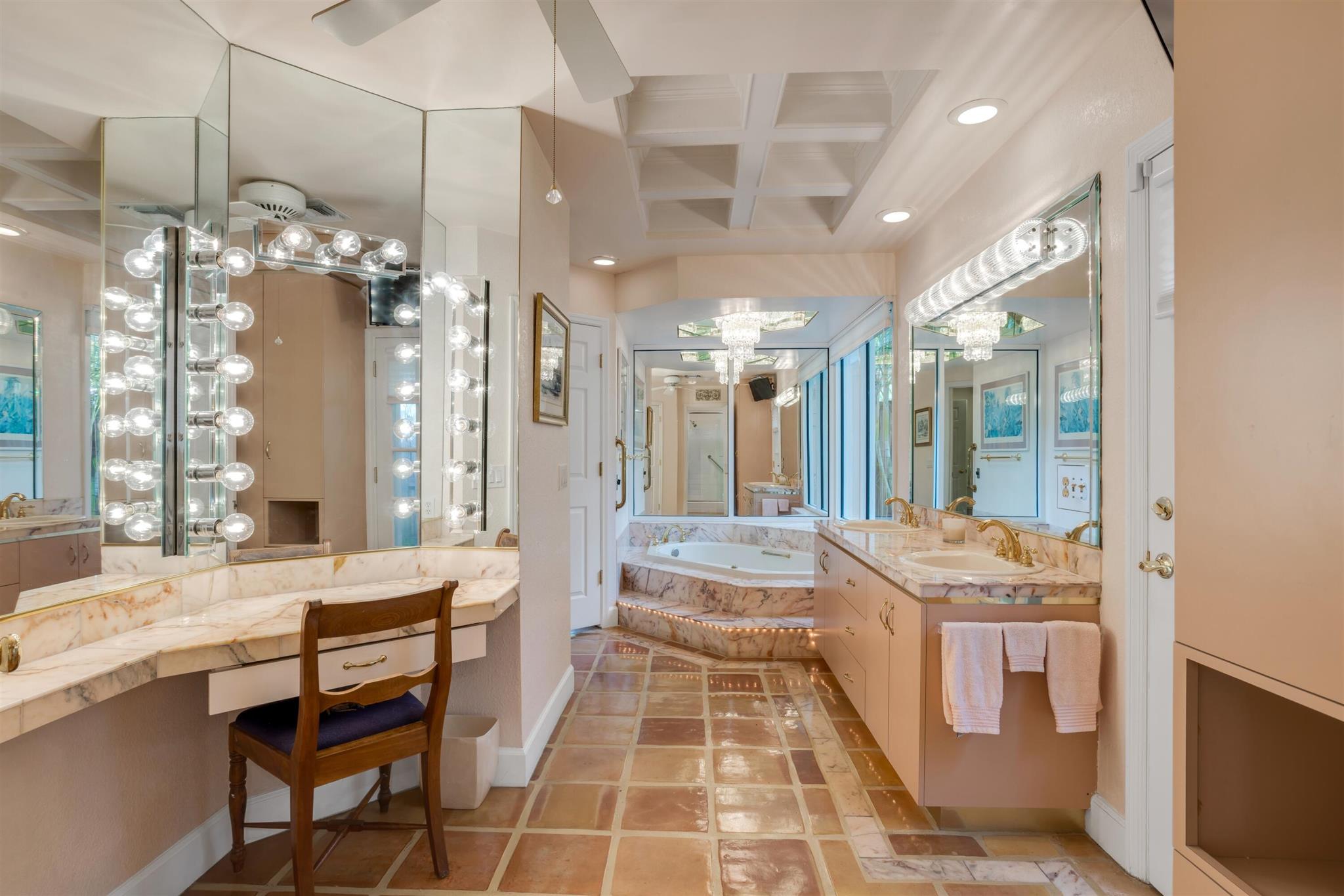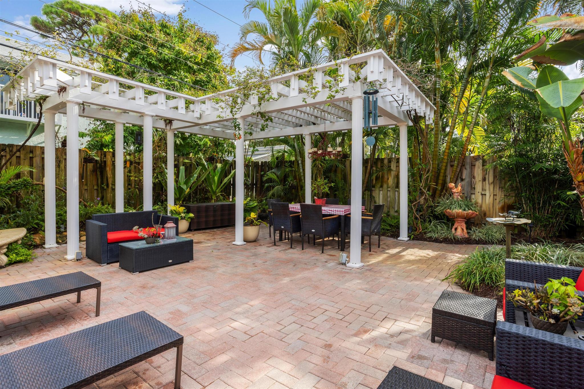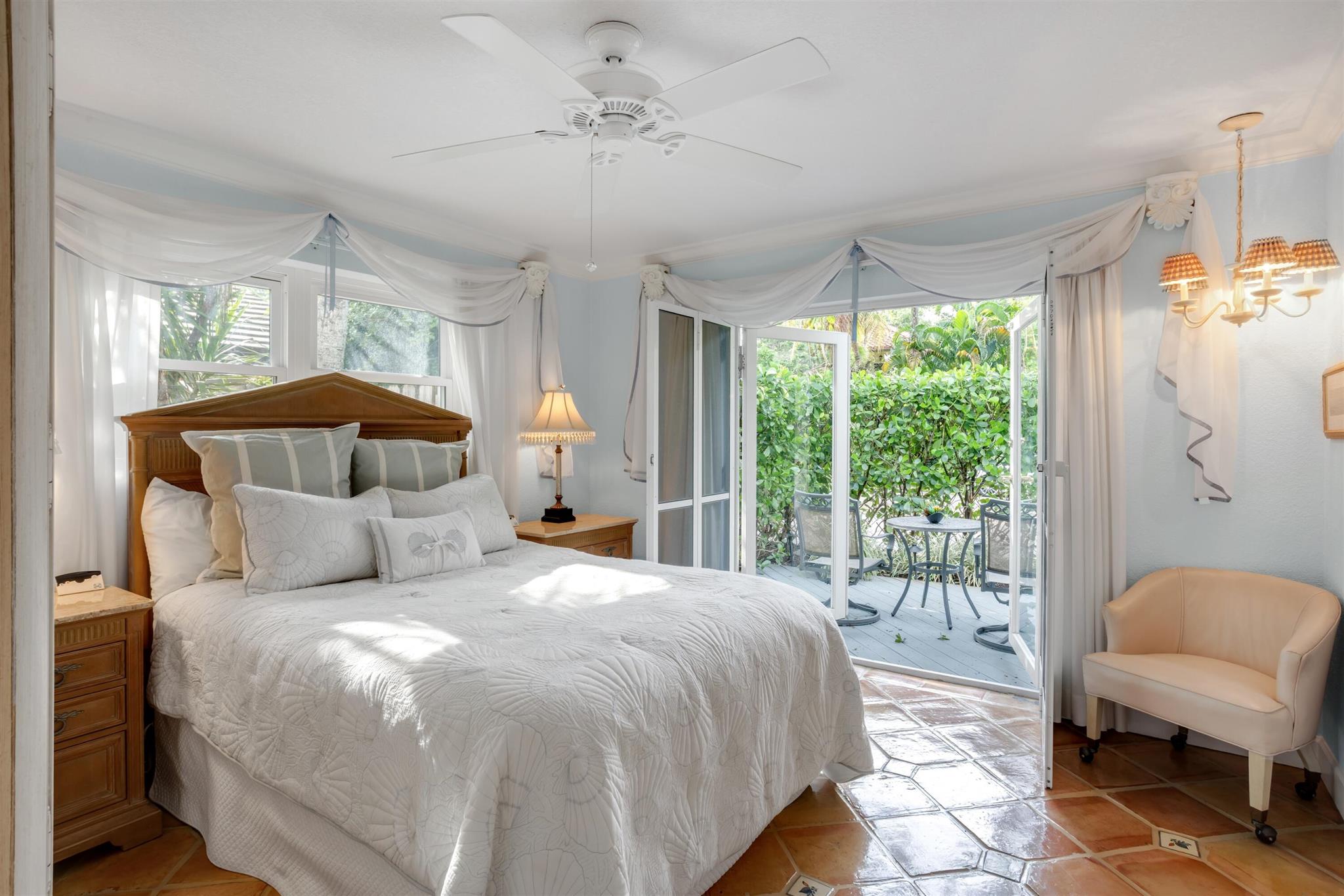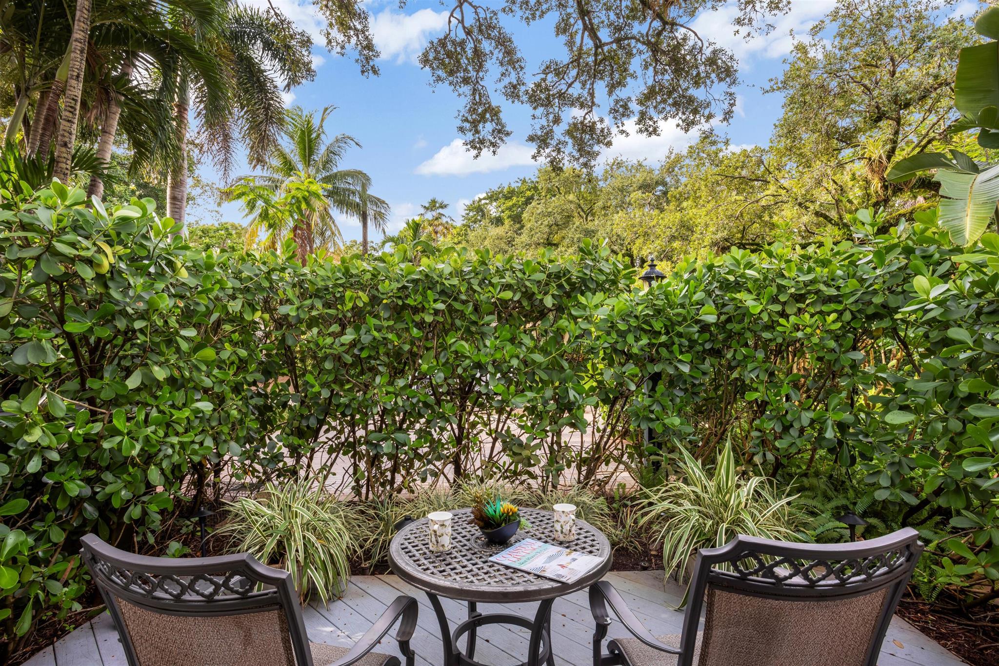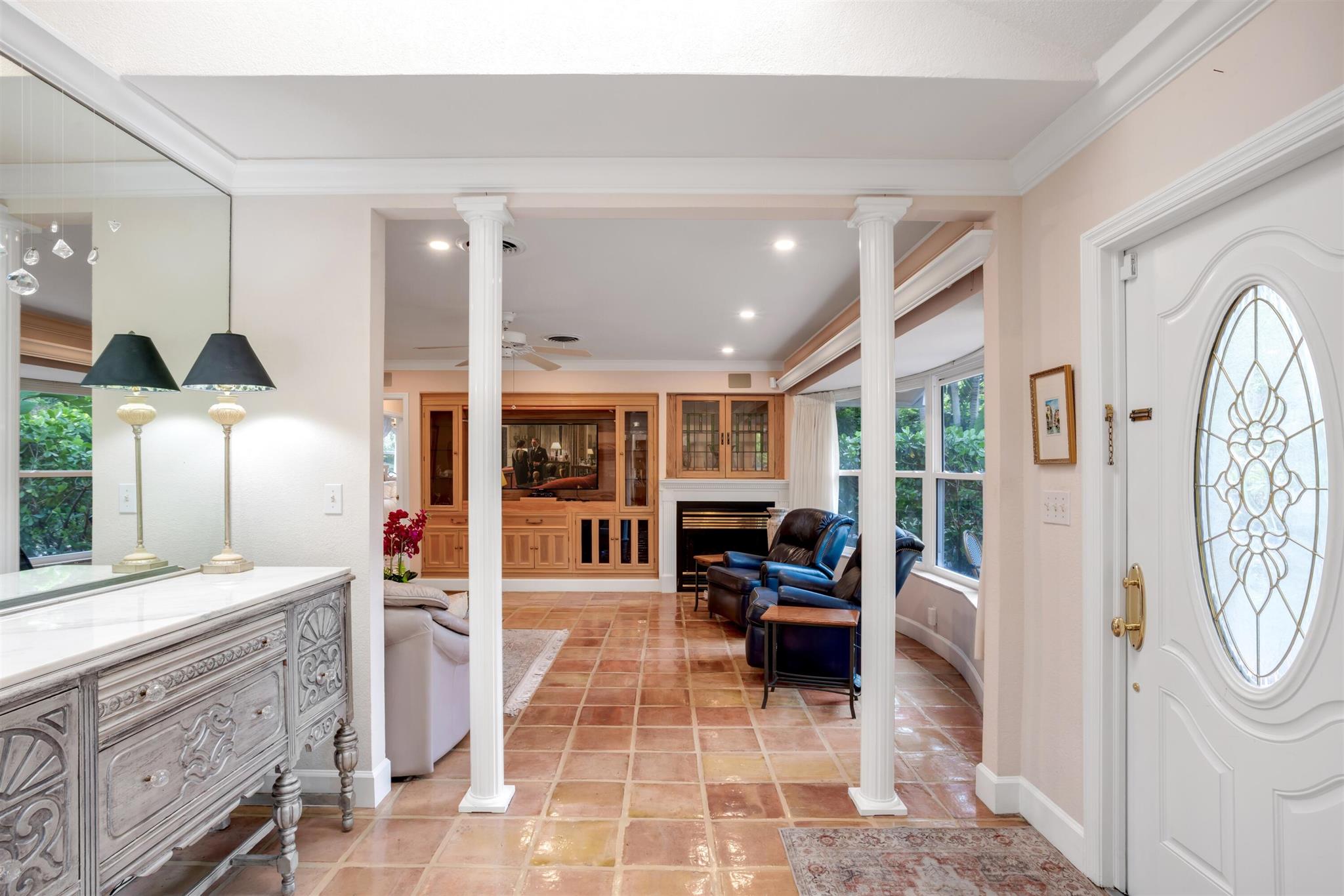 In an exquisite setting and radiating the charm of its era, this beautifully maintained residence is ideal for embracing South Florida's coveted lifestyle. With three bedrooms and 2,408+/- total square feet, its well-conceived floor plan was designed to optimize garden and pool views, seamlessly blending indoor and outdoor spaces. Details throughout include skylights making the interiors light and bright, custom built-in cabinetry, handsome moldings and clay-tile flooring. In the living room, a bay window overlooks the front gardens, while a fireplace adds a welcoming cordiality. The dining area comprises two areas, both defined by skylights and featuring French doors accessing the pool terrace. Just adjacent, the kitchen is fitted with cerused-wood cabinetry, mirrored backsplashes and a p