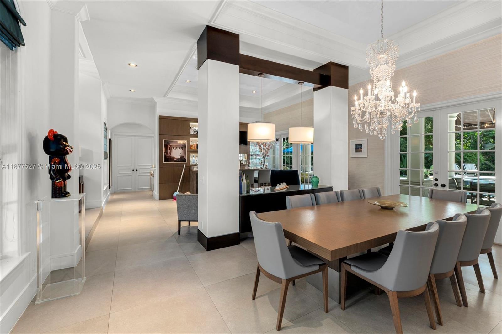 Nestled on a quiet cul-de-sac in prestigious North Pinecrest, this stunning estate offers 6 BD, 6.5 BA, and over 8,000 total SF of refined living. Set on a lushly landscaped acre with specimen palms, the home boasts soaring ceilings, Italian porcelain floors, a custom bar, wine room, home theater, and gym. The gourmet kitchen features Sub-Zero/Miele/Wolf appliances, marble counters, and custom cabinetry. The expansive main suite includes a sitting area, office, dual walk-in closets, and spa-like bath. Resort-style outdoor living offers a saltwater pool with waterfall spa, covered terrace, summer kitchen, tiki hut, and basketball court. Additional features: 3-car garage, full-home generator, smart systems, and full security. A rare Pinecrest offering blending luxury, comfort, and privacy.