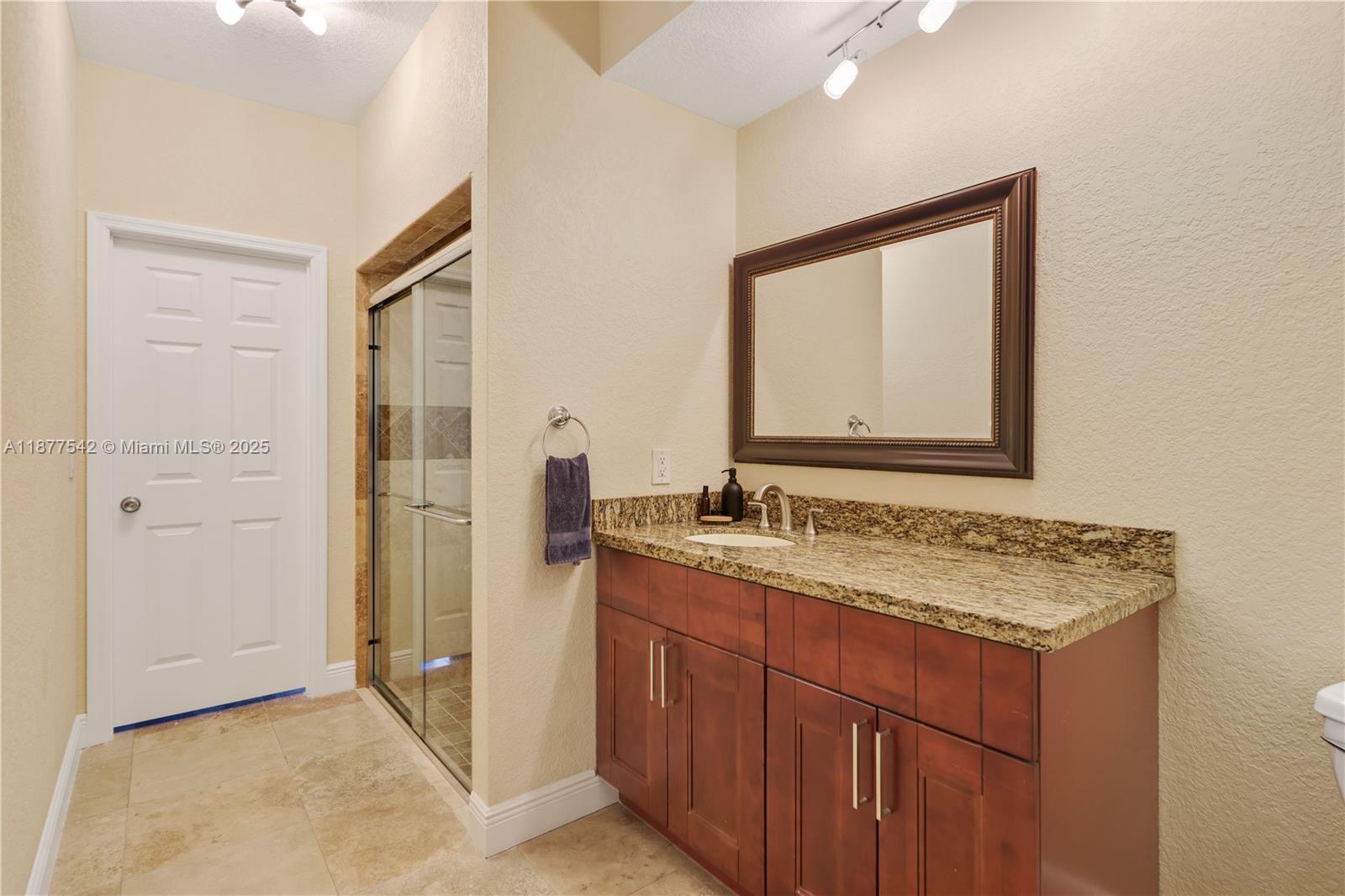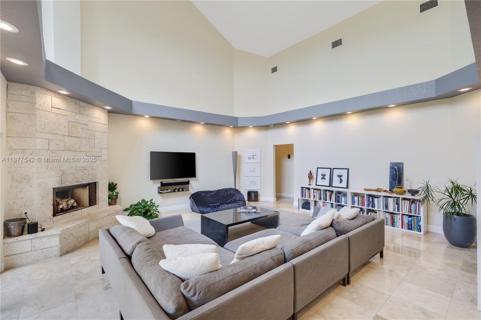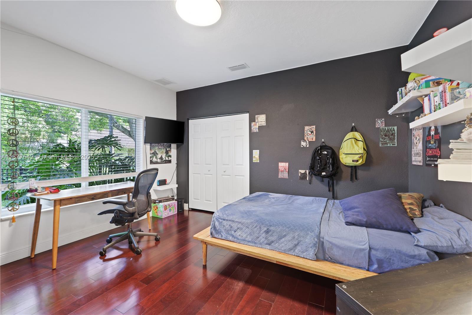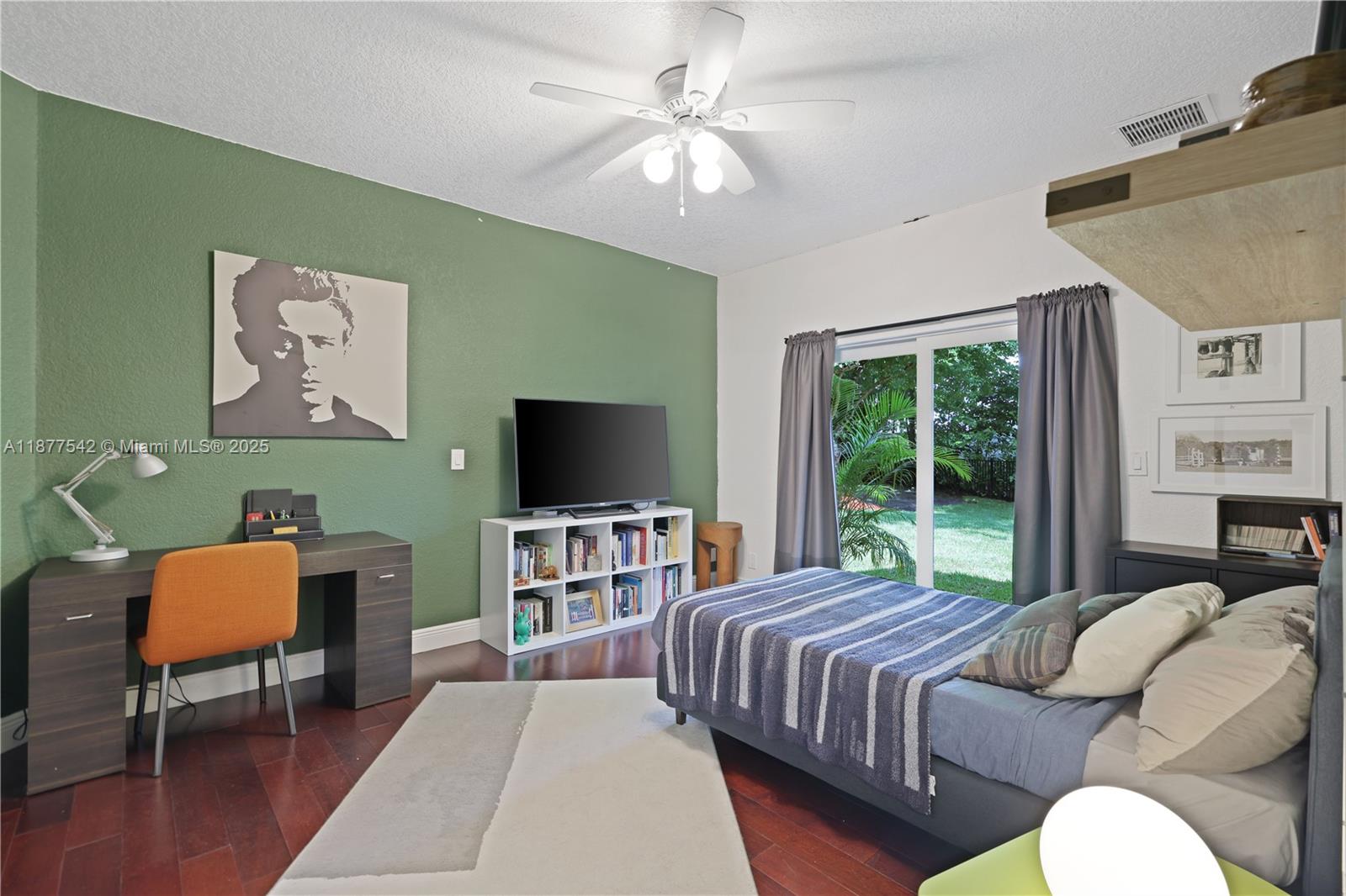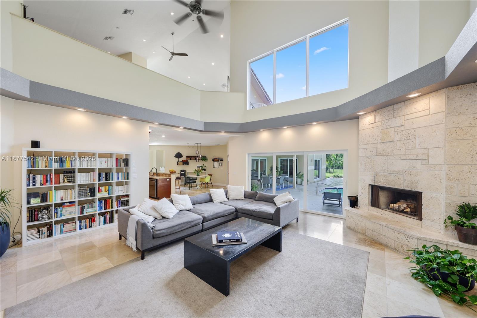Beautiful home in the exclusive gated community of Maplewood Isle, offering ultimate luxury living. Featuring 7 bedrooms, 4 full baths 3 half baths, and over 6,000 sq ft of indoor space. Soaring ceilings, expansive windows, and an open layout filled with natural light. Six bedrooms are on the main floor, with an entertainment loft upstairs. The master suite includes his and hers walk-in closets. Enjoy open living areas with sliding doors that flow to the outdoors. Recent upgrades include new hurricane impact windows/doors and a resurfaced pool. The fenced, landscaped yard offers mature vegetation for privacy. Ideal for large families or in-law quarters, with a 2-car garage, ample driveway parking, and cul-de-sac location. Property taxes reflect extra $7,465 for impact windows financing.
