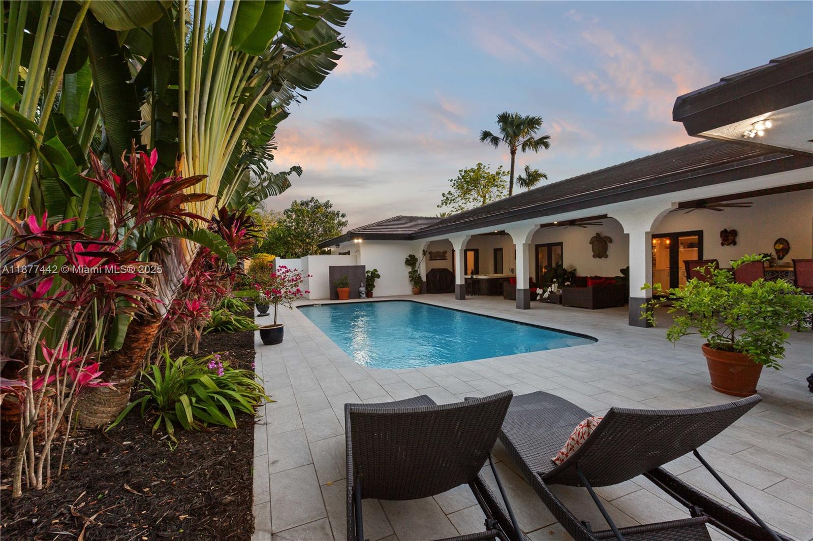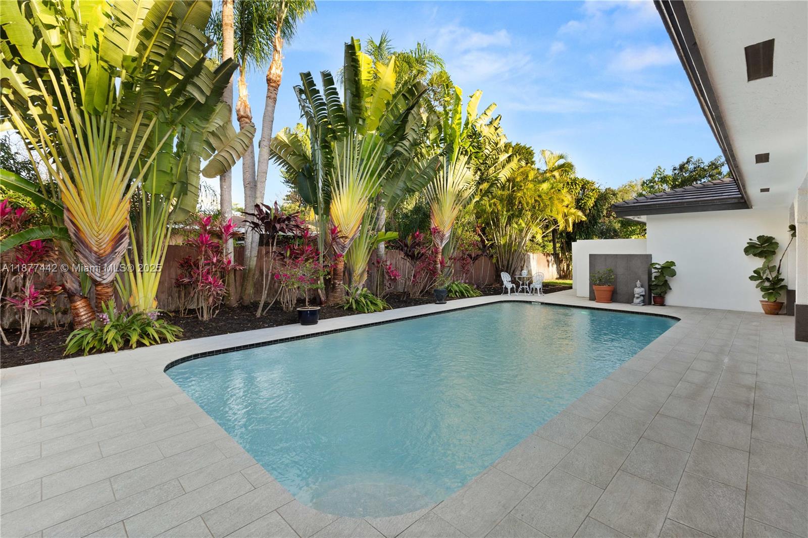 Modern 4 bedroom, 4 bath Pinecrest home, remodeled in 2020 on a “true” half-acre lot on a cul-de-sac with circular driveway & plenty parking. Lots of space to add a tennis/pickle ball court. High ceilings & impact windows & doors. Large kitchen with quartzite countertops, oversized island and seating, with all new stainless-steel appliances. One-of-a-kind professionally designed wine room with commercial refrigeration that seats up to 8 people. Spacious master suite and master bath with two generous bedrooms with accompanying bathrooms & walk-in closet. Large playroom (or 5 bedroom) and 4th bedroom/office which opens to the pool & garden. Inviting pool with jacuzzi, exterior bar, Bose sound system. 2 car garage with excellent storage. This property is not in a flood zone.