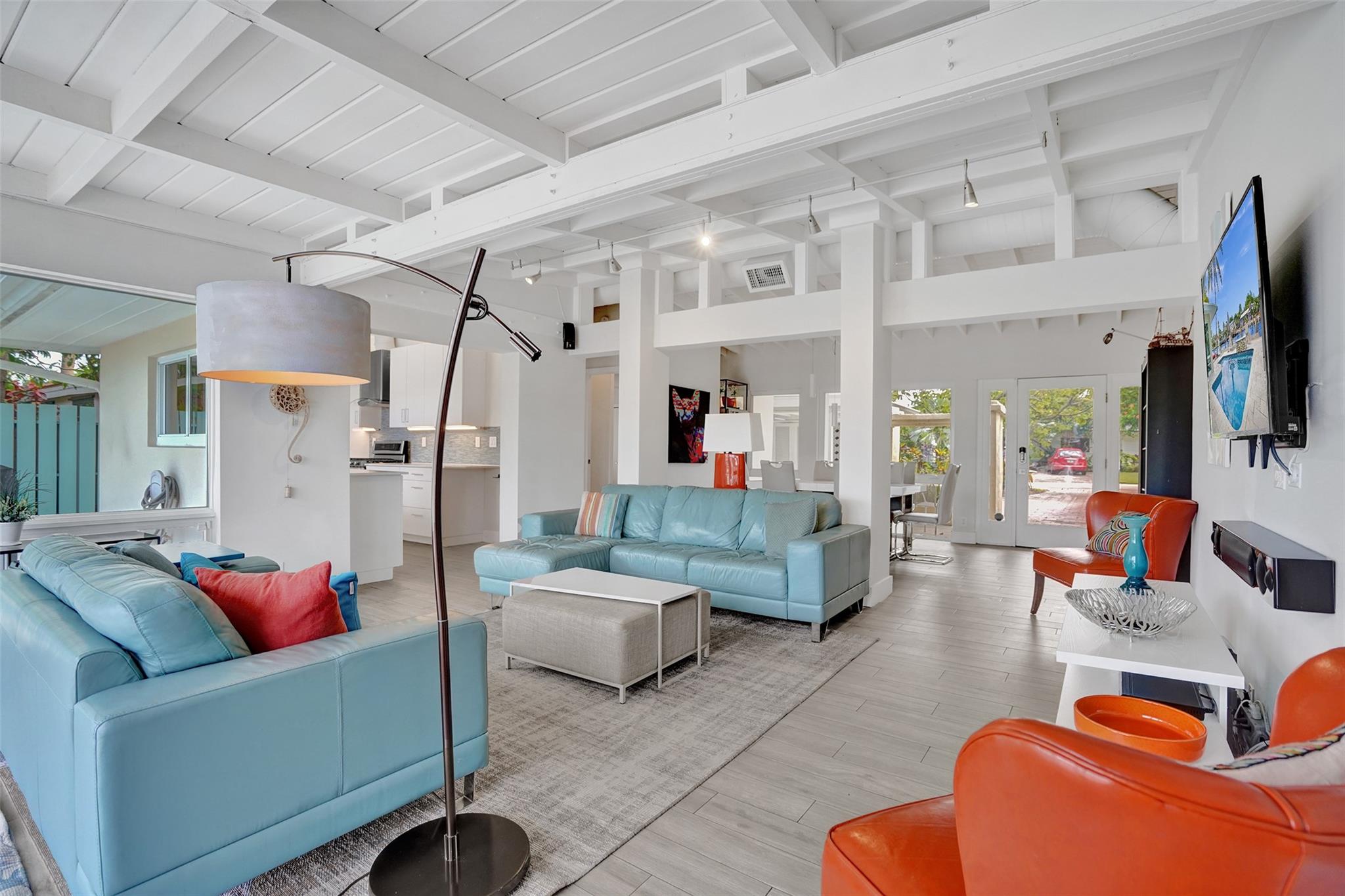 STUNNING EAST WILTON MANORS 3/2 WATERFRONT HOME IN SOUGHT-AFTER CORAL GARDENS NEIGHBORHOOD. NO EXPENSE WAS SPARED IN THIS COMPLETELY RENOVATED HOME. LOFT-LIKE, VAULTED CEILINGS, AND A SEAMLESS FLOW FROM ENTRY TO BACKYARD ON THE NORTH FORK OF MIDDLE RIVER. INTERIOR FEATURES A COMPREHENSIVE RENOVATION WITH QUARTZ COUNTERTOPS IN KITCHEN AND BATHS, IMPORTED GLASS TILE BACKSPLASH, BLANCO SOLID SURFACE SINK, NEW APPLIANCES INCLUDING PROPANE RANGE, AND NEW ELECTRICAL SYSTEM. IMPACT GLASS SLIDERS. NEW 2020 ROOF, PROPANE GAS TANKLESS WATER HEATER. EXTERIOR BOASTS A COMPLETE POOL RENOVATION WITH FIRE PIT AND WATERFALL, 80' WATERFRONT, RAISED SEAWALL, NEW PILINGS, AND 70' DOCK. PLUS, MUCH MORE. BEING SOLD FURNISHED.