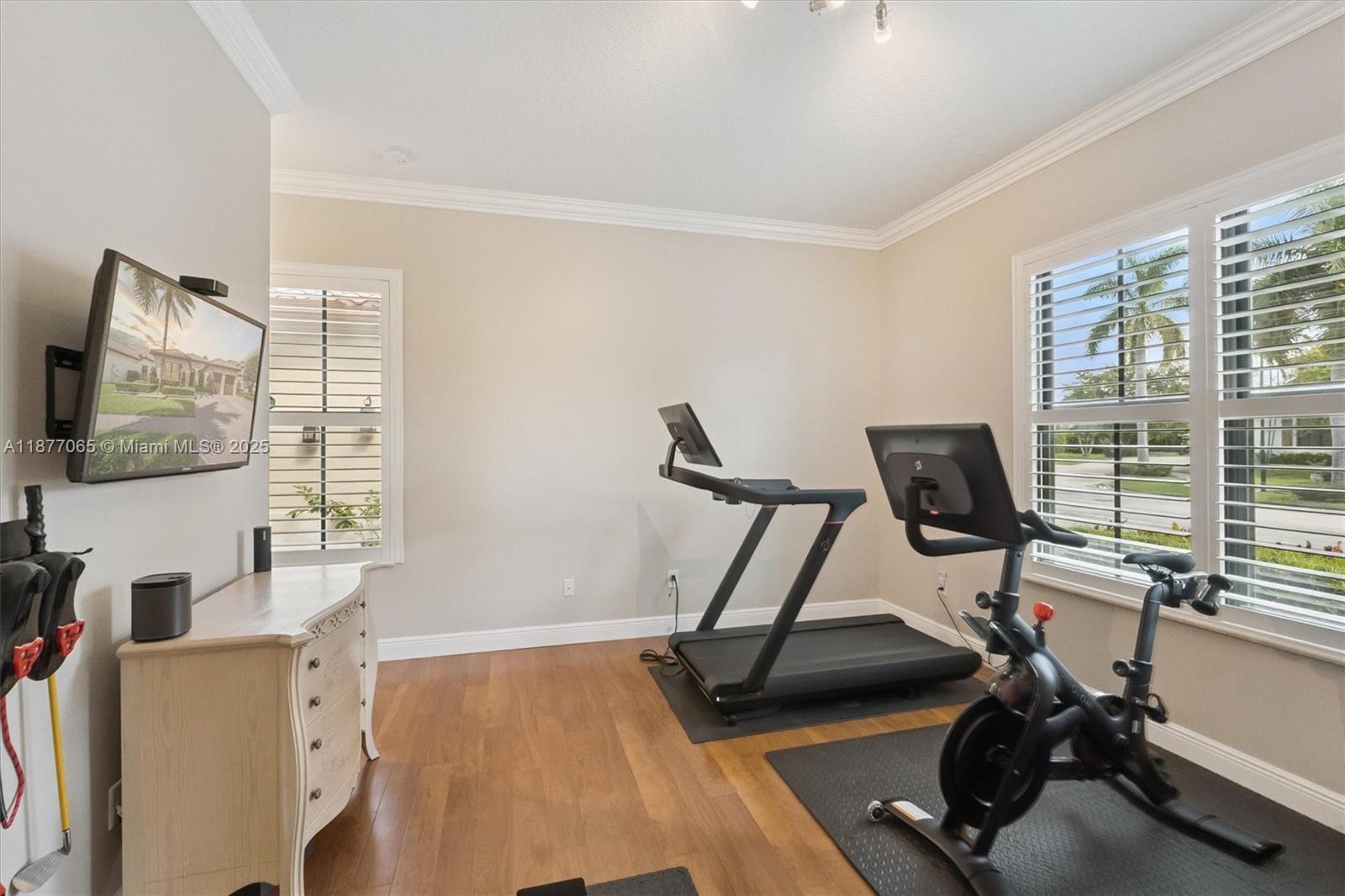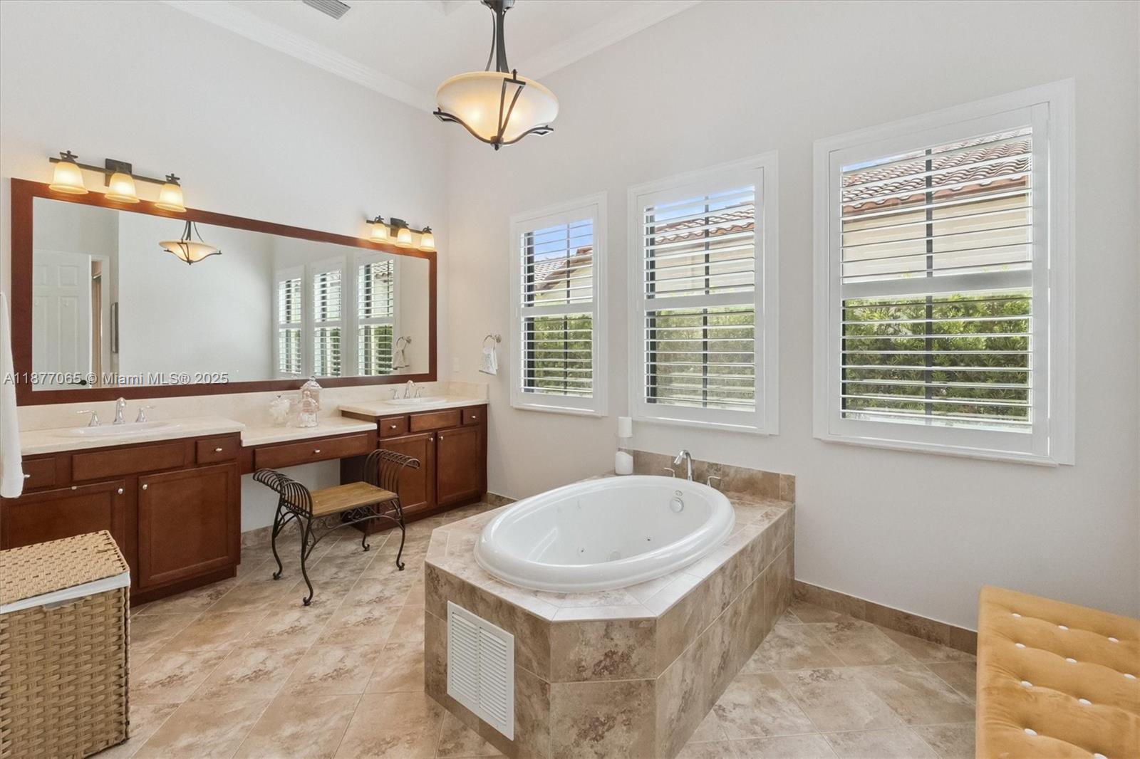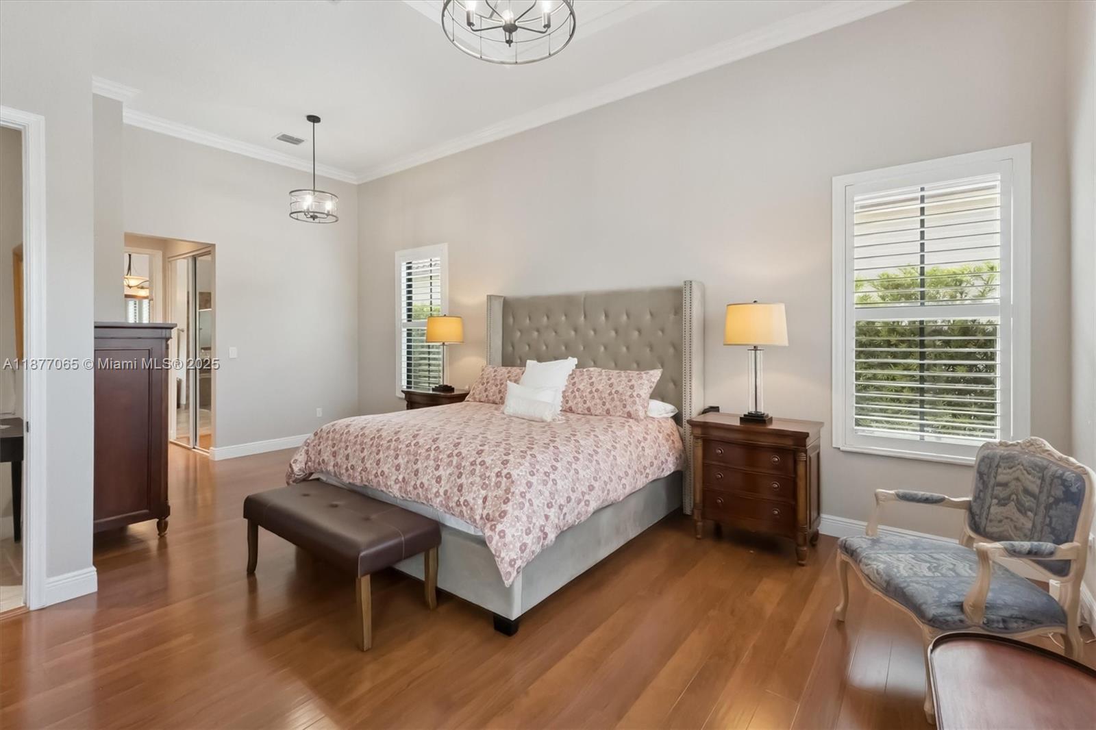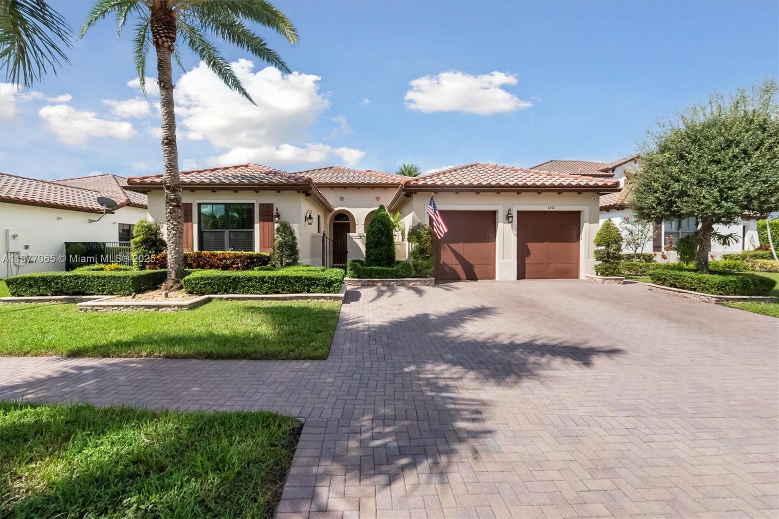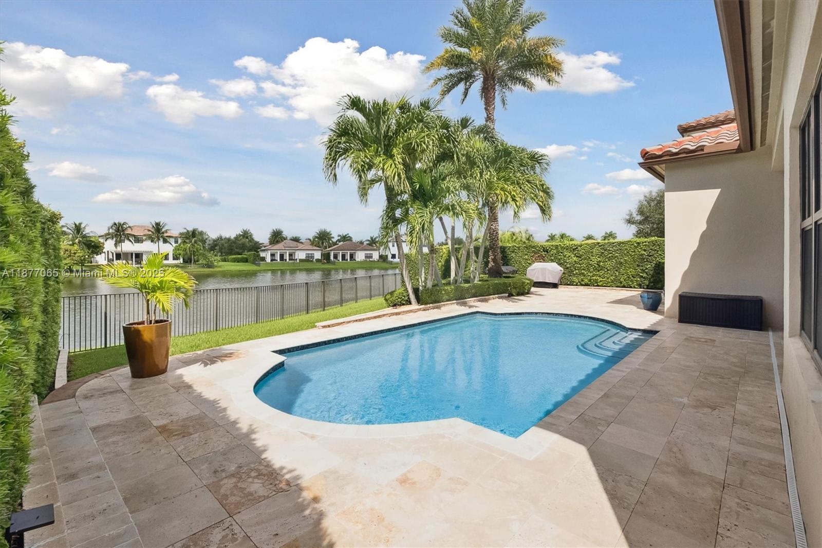 Secluded on a private cul-de-sac with tranquil waterfront views, this Monterra Estate pairs timeless sophistication with modern comfort. Marble floors & soaring ceilings flow beneath elegant crown molding and plantation shutters, while walls of PGT/CGI impact glass (2019) invite seamless indoor-outdoor living. A refinished pool & expansive travertine terrace are surrounded by lush privacy landscaping & full fencing, creating a private resort at home. Practical elegance abounds with an extended driveway, epoxy-finished garage w/attic ladder & EV connection, dual A/C's, & generator wiring for half the residence. Resort-style amenities include clubhouse, fitness center, basketball & tennis courts, dog park, and walking trails. A+ rated schools and convenient access to house of worship.