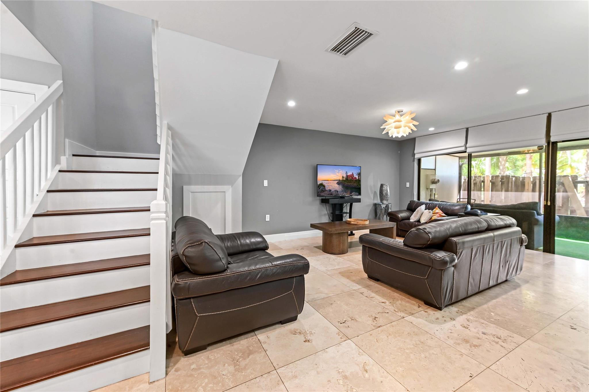 WOW. Remodeled 3 bed 2.5 bath corner townhome (garage converted to 4th bed/office easily return to garage). Quiet community conveniently just off 18th St West Boca. 2 story w screened porch. Downstairs tile floors, LED lighting & gourmet kitchen. Ideal first time home or growing family. Roof 2016. Tankless water heater. AC 2009. Washer / Dryer inside. Saturnia tile downstairs, rich chocolate engineered floor upstairs. Kitchen and 3 baths remodeled. Attractive front impact door. Primary bedroom w volume ceiling and walk in closet. Checks all the boxes, great first home. Community clubhouse, pool, tennis, cable, landscaping /lawn maint, trash included w HOA. Attached garage, private driveway and guest parking. All ages. Fee simple townhome. 2 pets 35 lbs. See 3d tour! RATES DOWN time to buy.