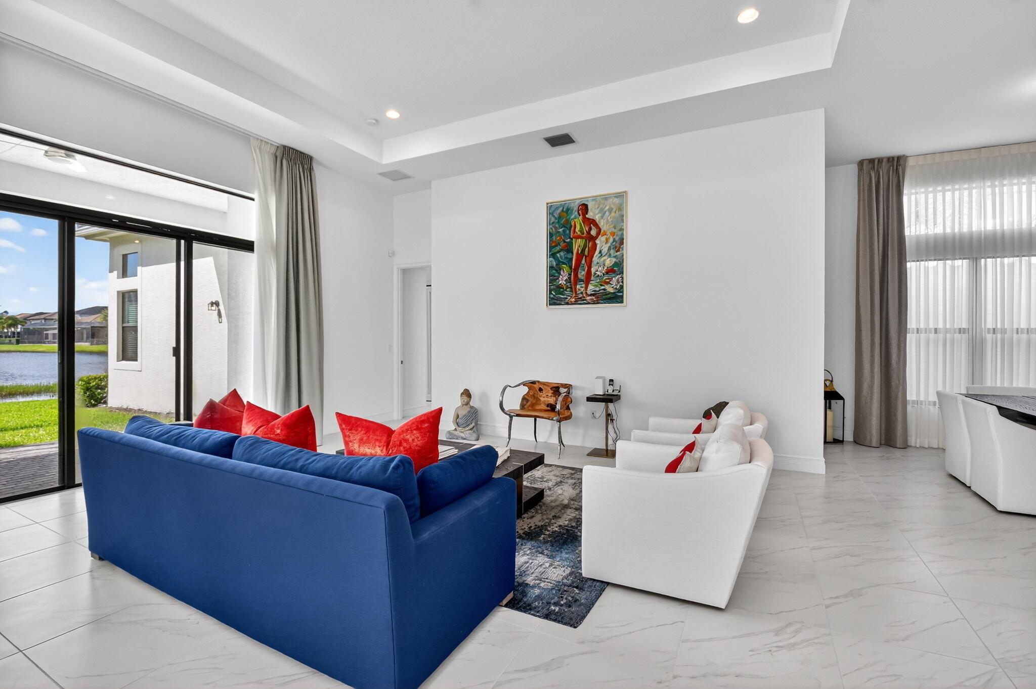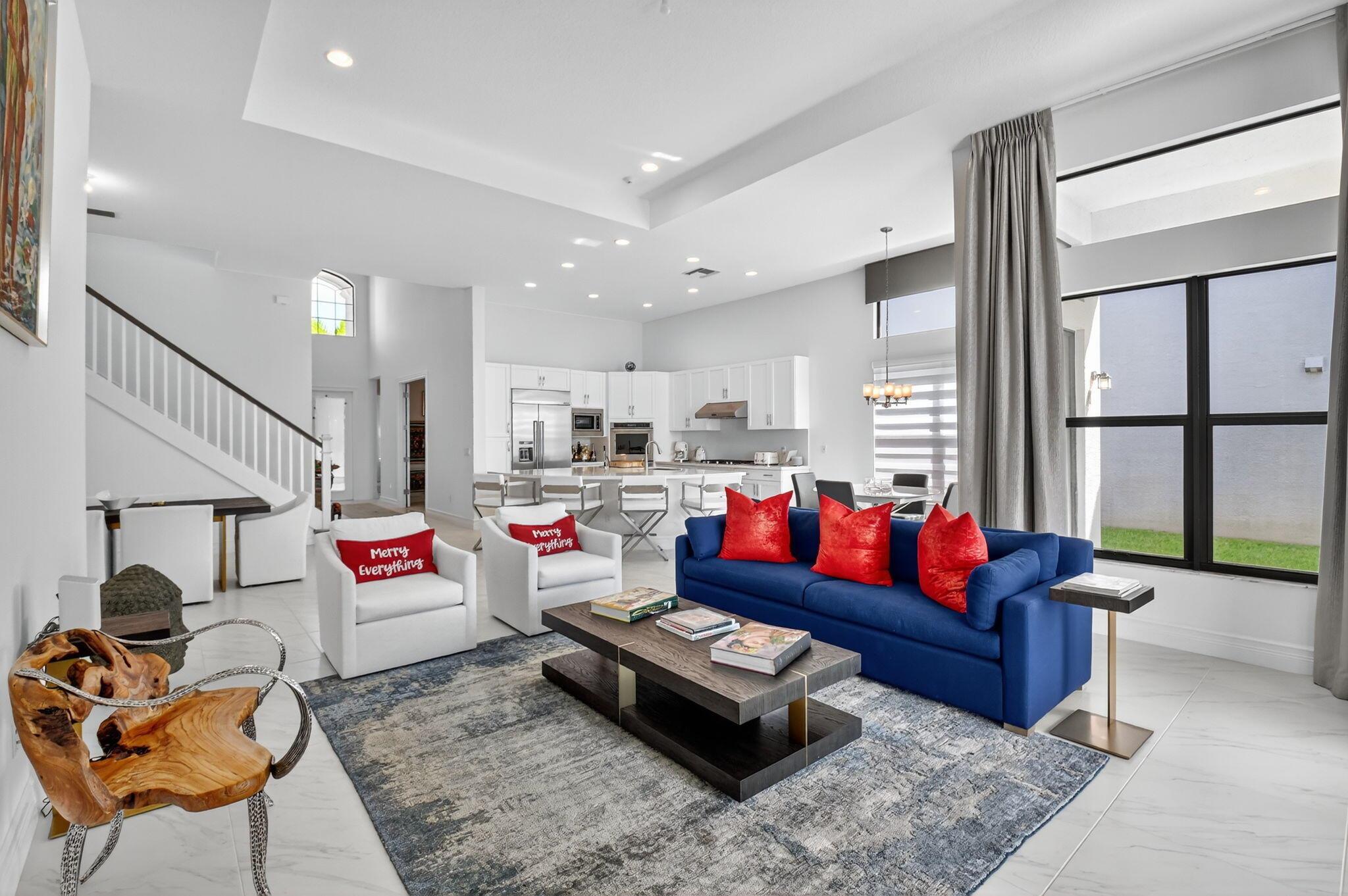 Walk in to stunning Long lake views with this 3BR/3.5BA home with a den downstairs and a huge 500 SQ FT loft area upstairs. Modern living with an open floor plan, high ceilings, and elegant finishes. Built in 2018, it features a gourmet kitchen with quartz counters, premium cabinetry, and high-end appliances. Pool and summer kitchen ready with gas stub out purchased during construction. The spacious primary suite includes custom closets and a luxurious bath with soaking tub and walk-in shower. Enjoy a private backyard with water views, covered patio, and 2-car garage. Seven Bridges residents enjoy a 30,000 sq ft clubhouse, restaurant, resort pool, spa, fitness center, tennis, basketball, playgrounds, and year-round social events all minutes from top schools, shopping, and dining.