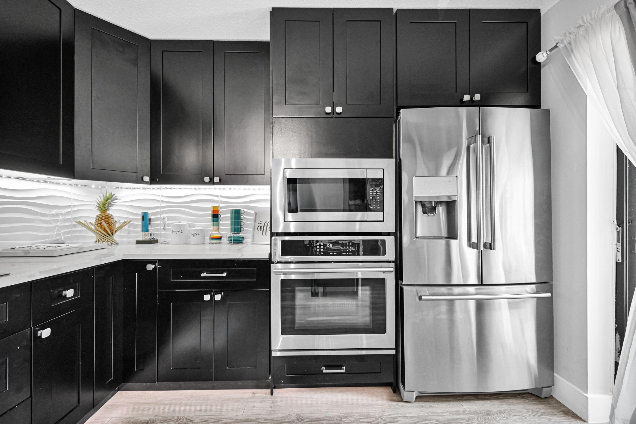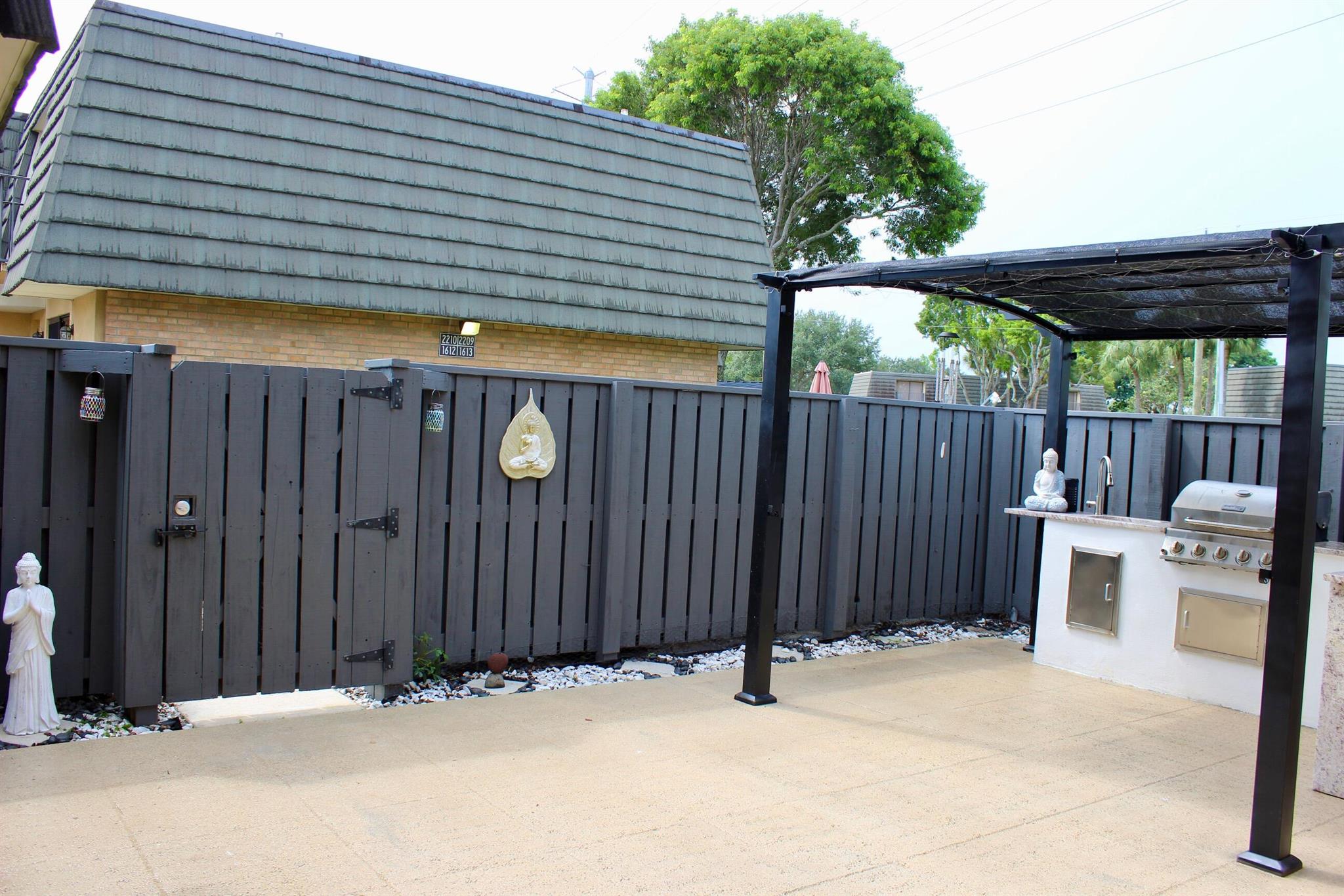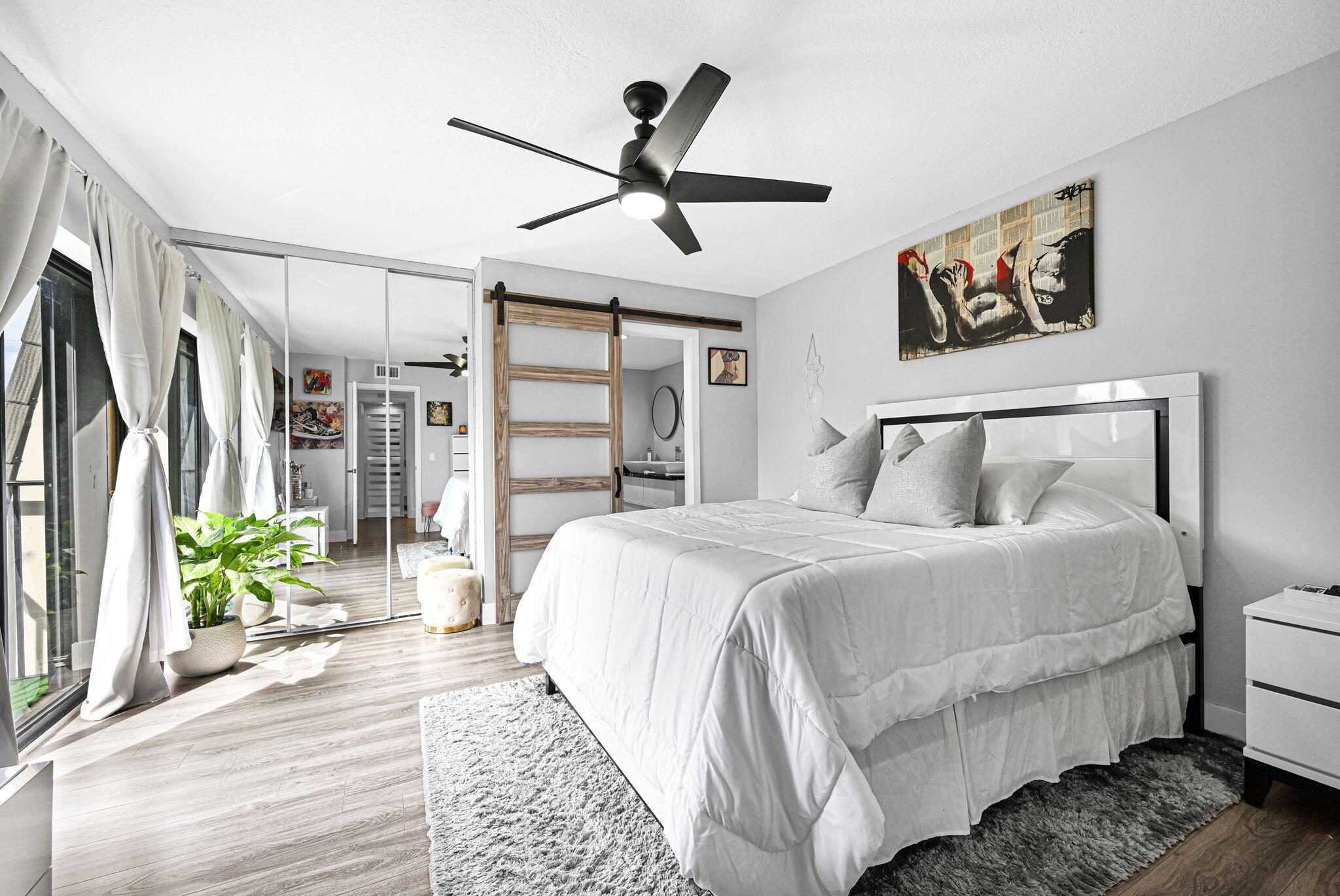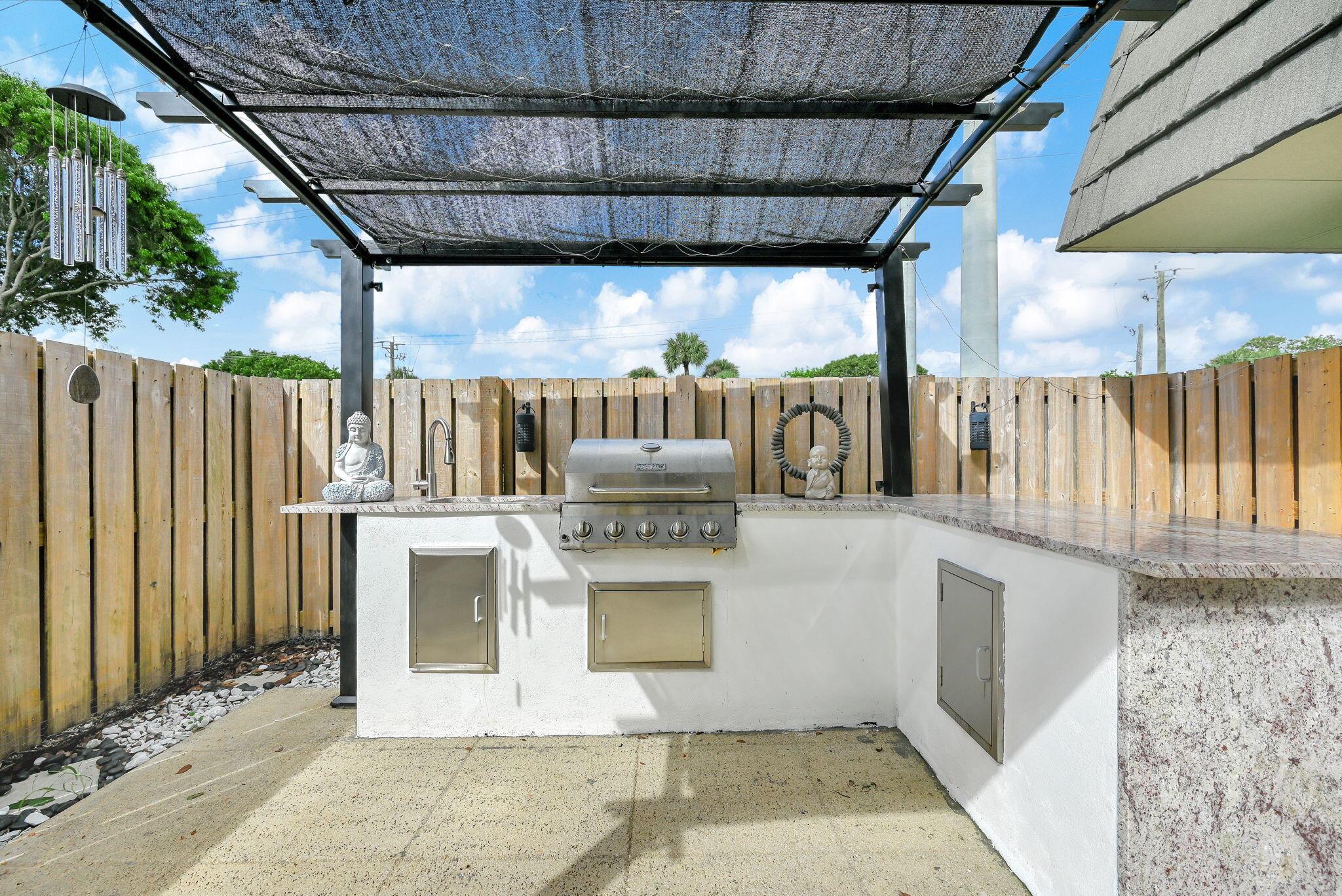 Beautifully updated 2BR/2.5BA townhouse offering 1,236 sq. ft. with updated kitchen, remodeled bathrooms, 2 year old water heater and updated flooring throughout. Spacious primary suite features private balcony, a walk-in closet and updated master bathroom with dual sinks, & modern separate shower, while the second bedroom has also its own bathroom, large closets and private balcony as well. Enjoy a large fenced patio, with outside kitchen area, accordion shutters, and newer roof (2018). HOA includes cable, water, exterior, roof & more. Community amenities: pools, tennis, playgrounds, dog park & fitness trails. Conveniently located near shopping, dining, I-95 & downtown West Palm Beach. Pet friendly & water and cable included with HOA!