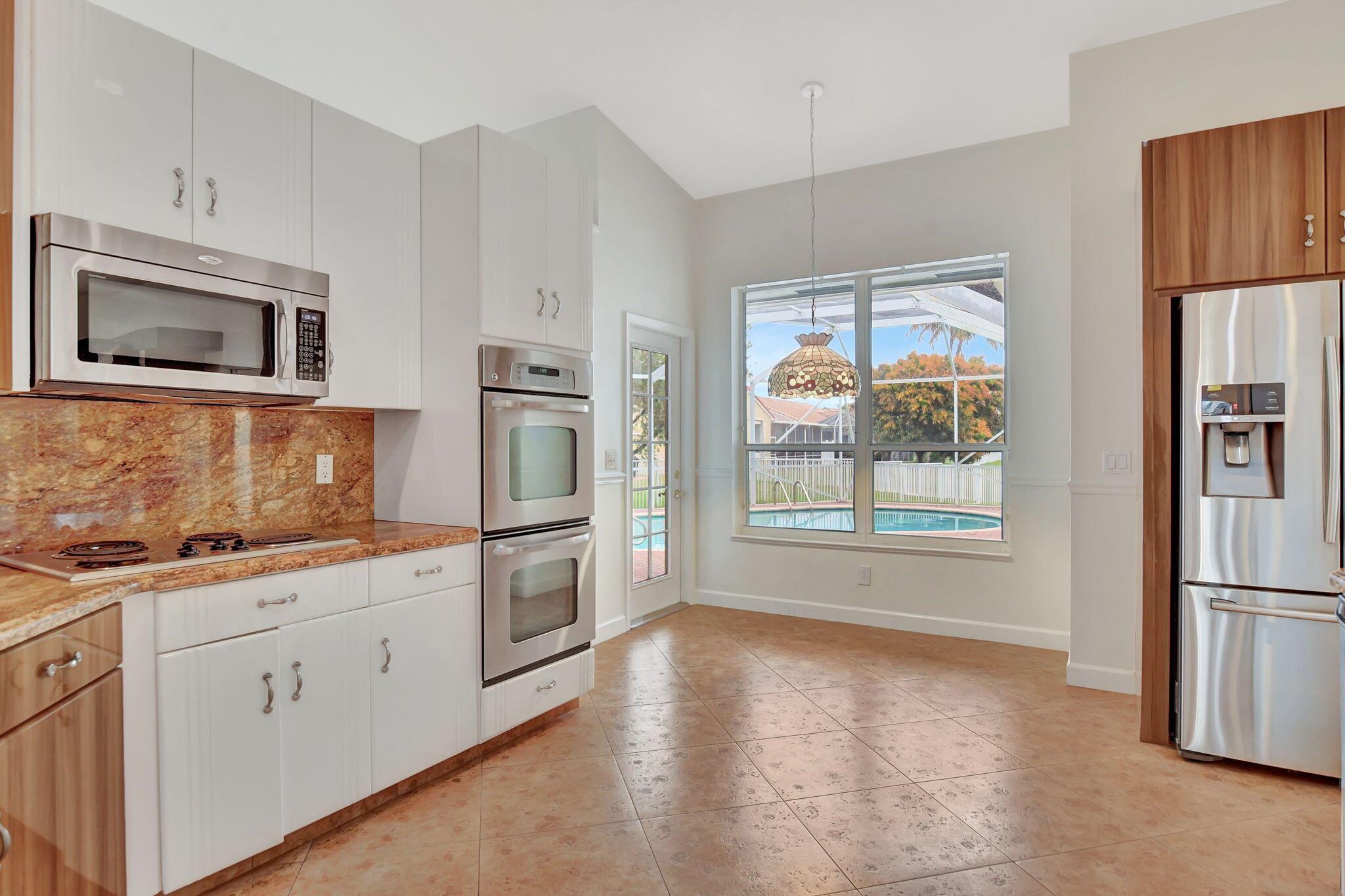 Beautiful 4 bedroom, 2 bath one story home w/screened in pool, lake views on a cul-de-sac street. Roof 2022, A/C 2017. New pool pump 2023. Kitchen renovated featuring stainless appliances, double ovens, 3 drawer refrigerator, granite countertops and oversized sink. Both bathrooms have been renovated featuring seamless shower doors, new vanities, & clawfoot tub in master bathroom. No carpet! French doors out to the pool & patio from the master bedroom. Boca Vista HOA includes Breeze line fiber optic cable, 3 boxes & wi-fi. Community re-center w/Olympic sized pool, kiddie pool, 2 tot lots, tennis Raquetball & pickleball. Sidewalks throughout neighborhood. Perfect for walking & riding your bike. Best shopping & schools!