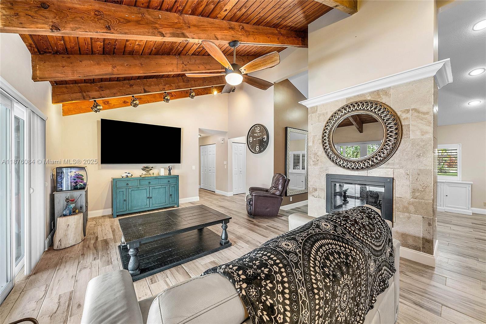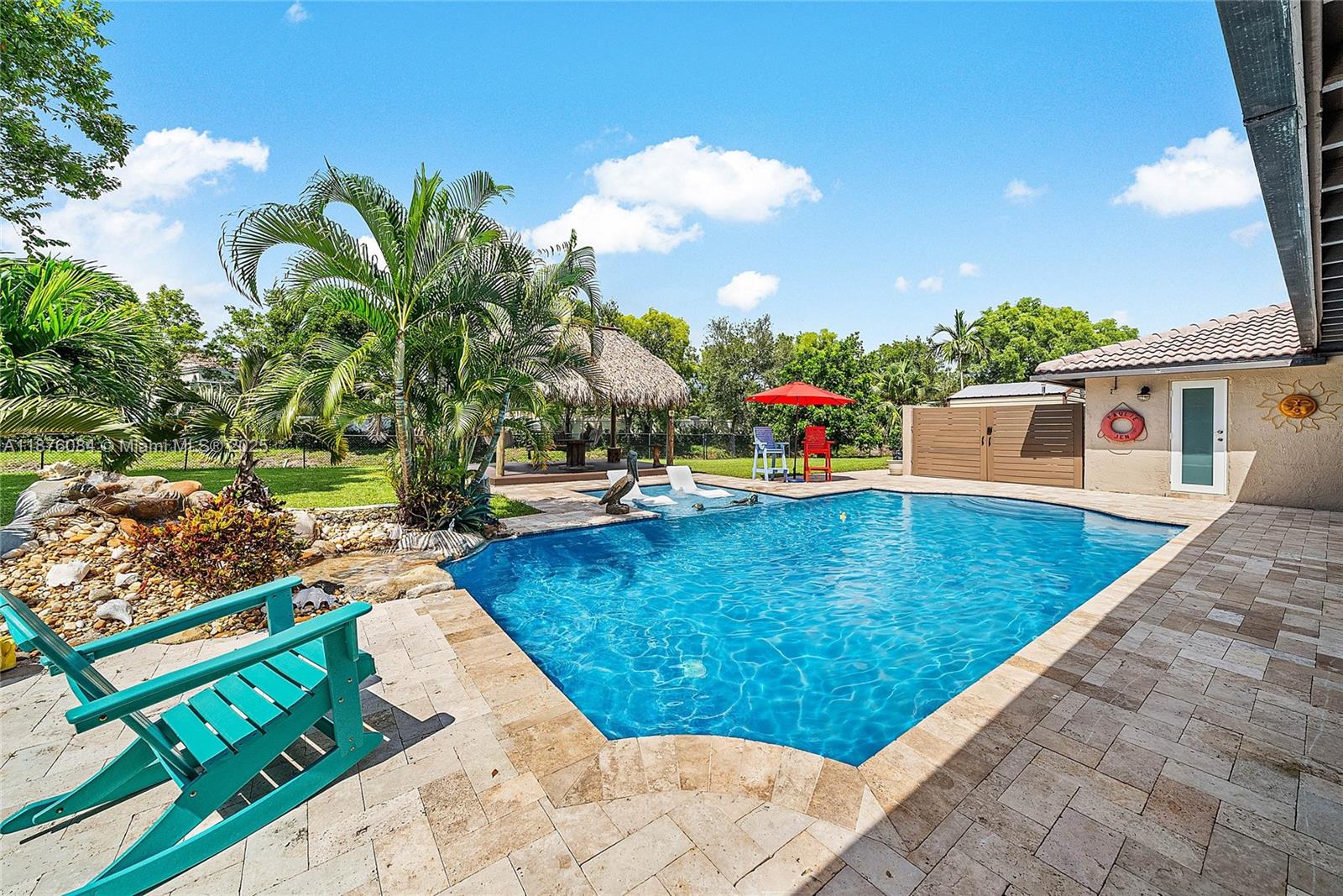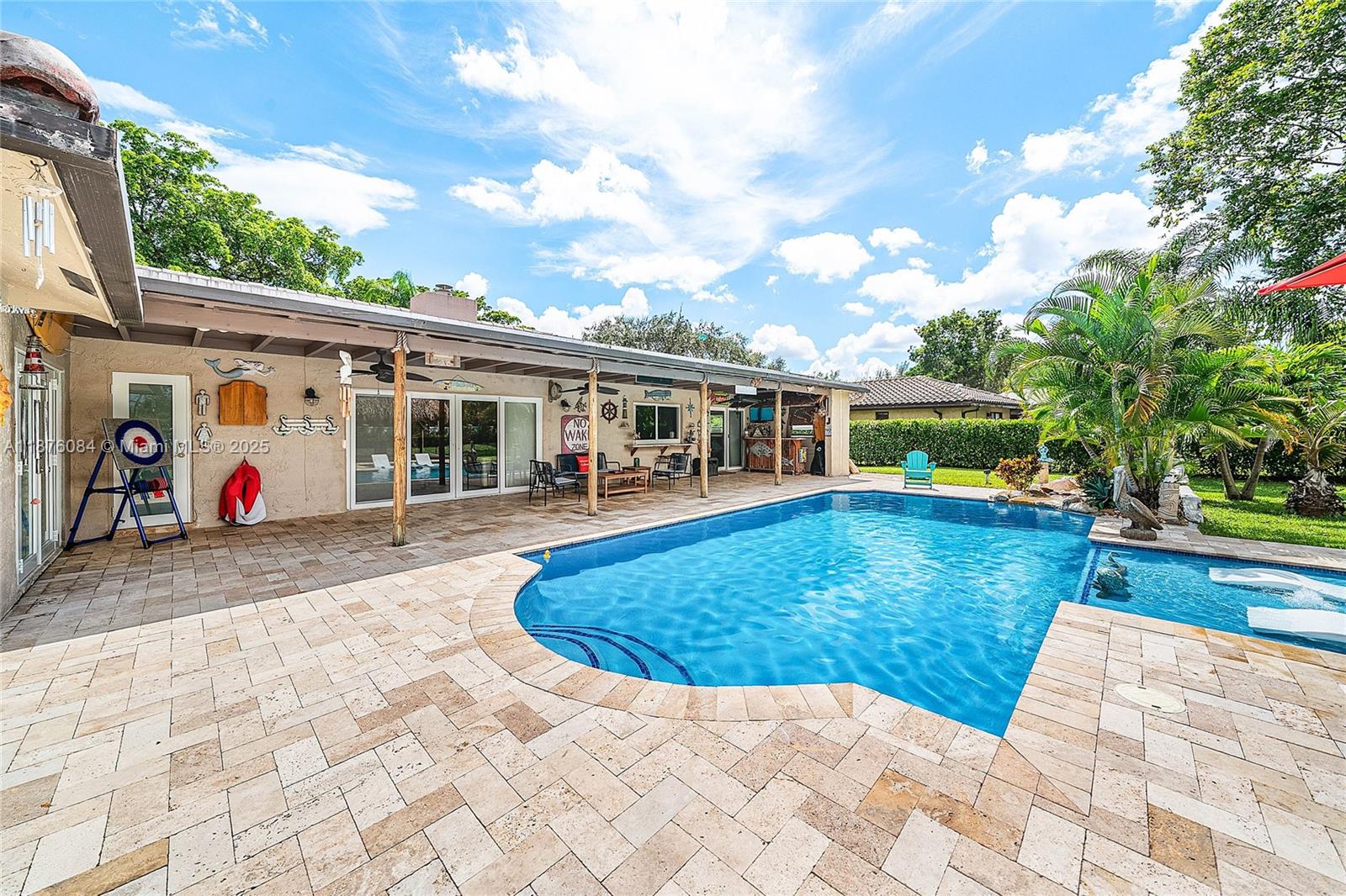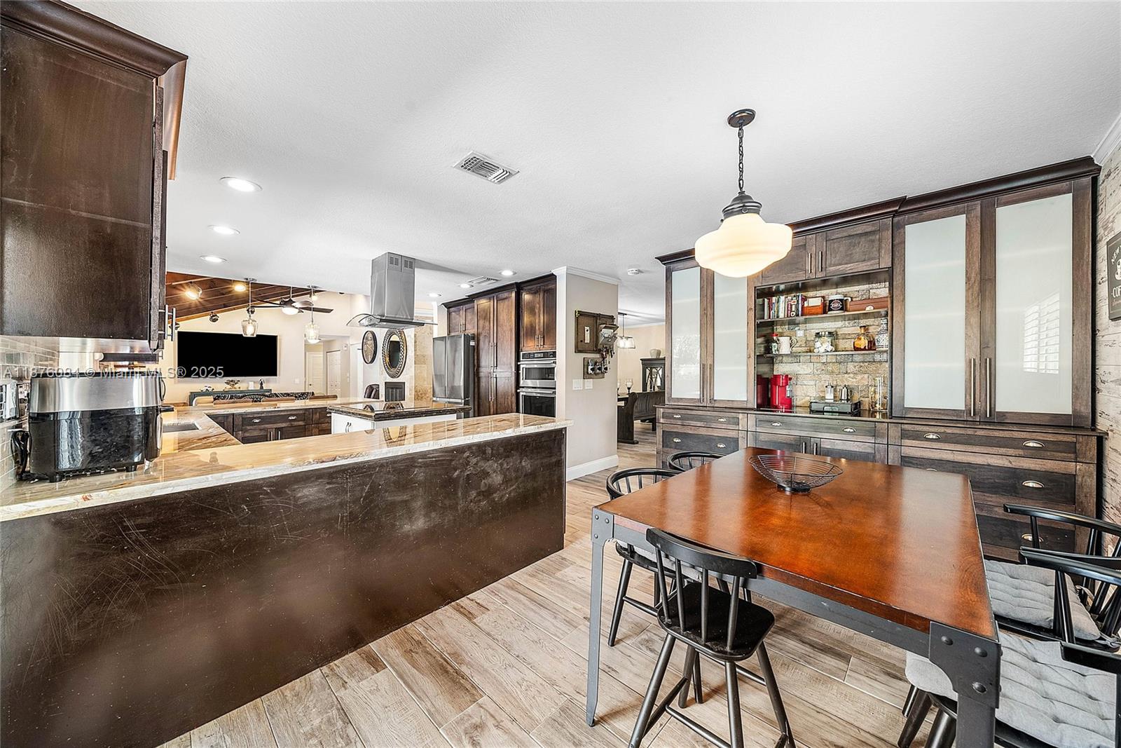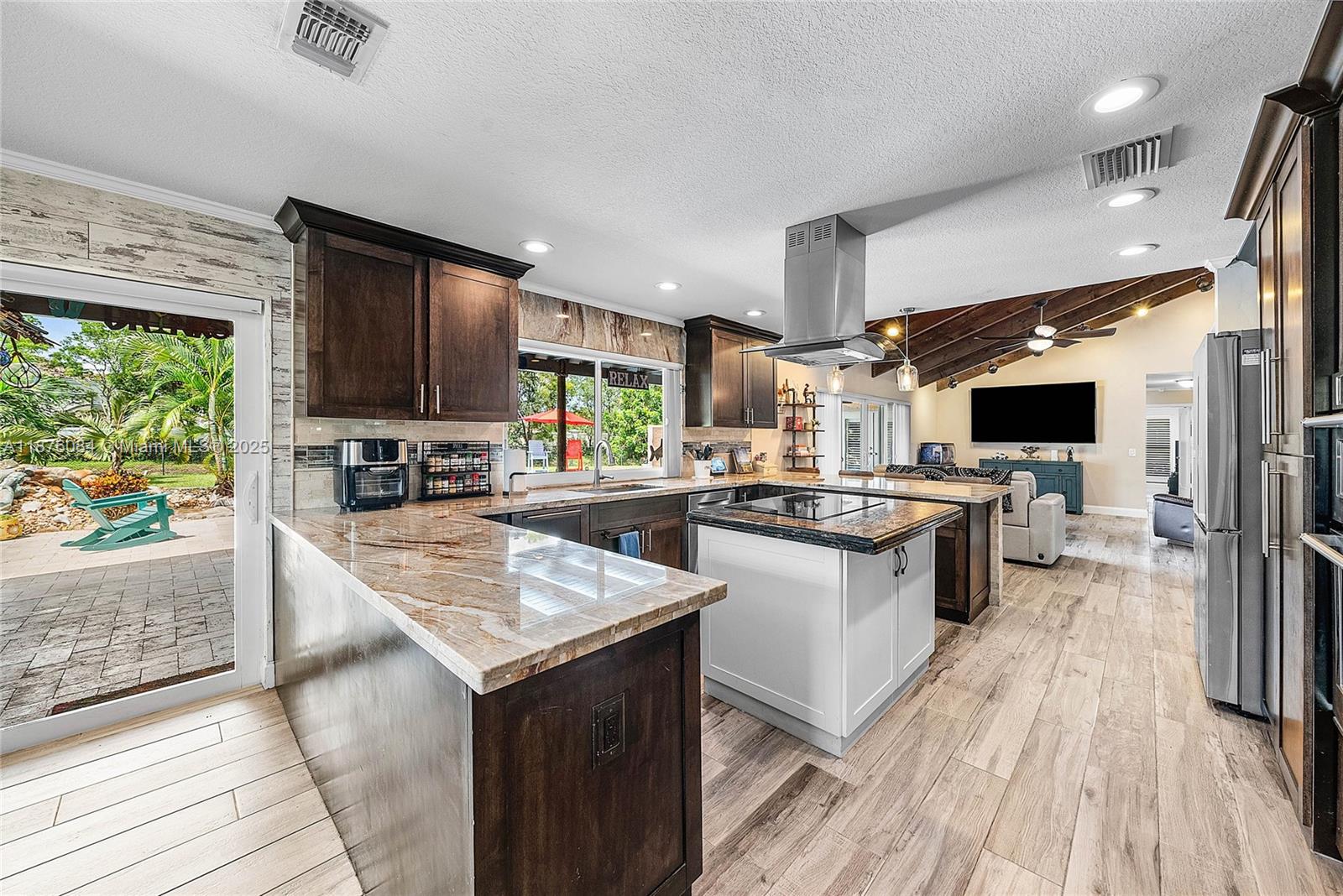 Imagine having everything you ever wished for in a house, and then seeing that house available to you right now. Come up the circular driveway and notice the brickwork, the tile roof, the granite along the front porch, the Euro front door, and you feel like you’re somewhere in the Mediterranean. Inside, the family room features porcelain tile flooring, pitched ceilings, and the grandiose travertine-lined double-sided fireplace as a focal point. Next, arrive in the updated kitchen and nook with well-appointed 42” cabinetry “all the way up”, stainless appliances, and an island with electric cooktop, hood vent and custom triple pencil edge granite. The house features 4 full bedrooms + office, with every detail having been updated! But then, the best part awaits you when you step out back...