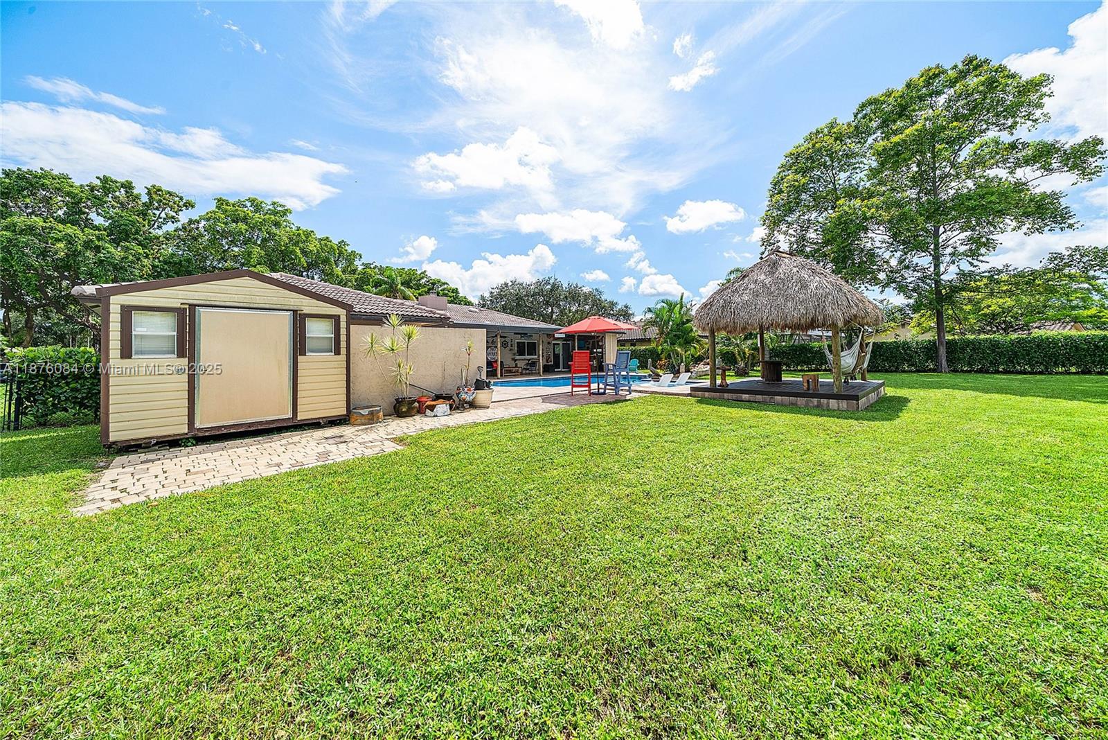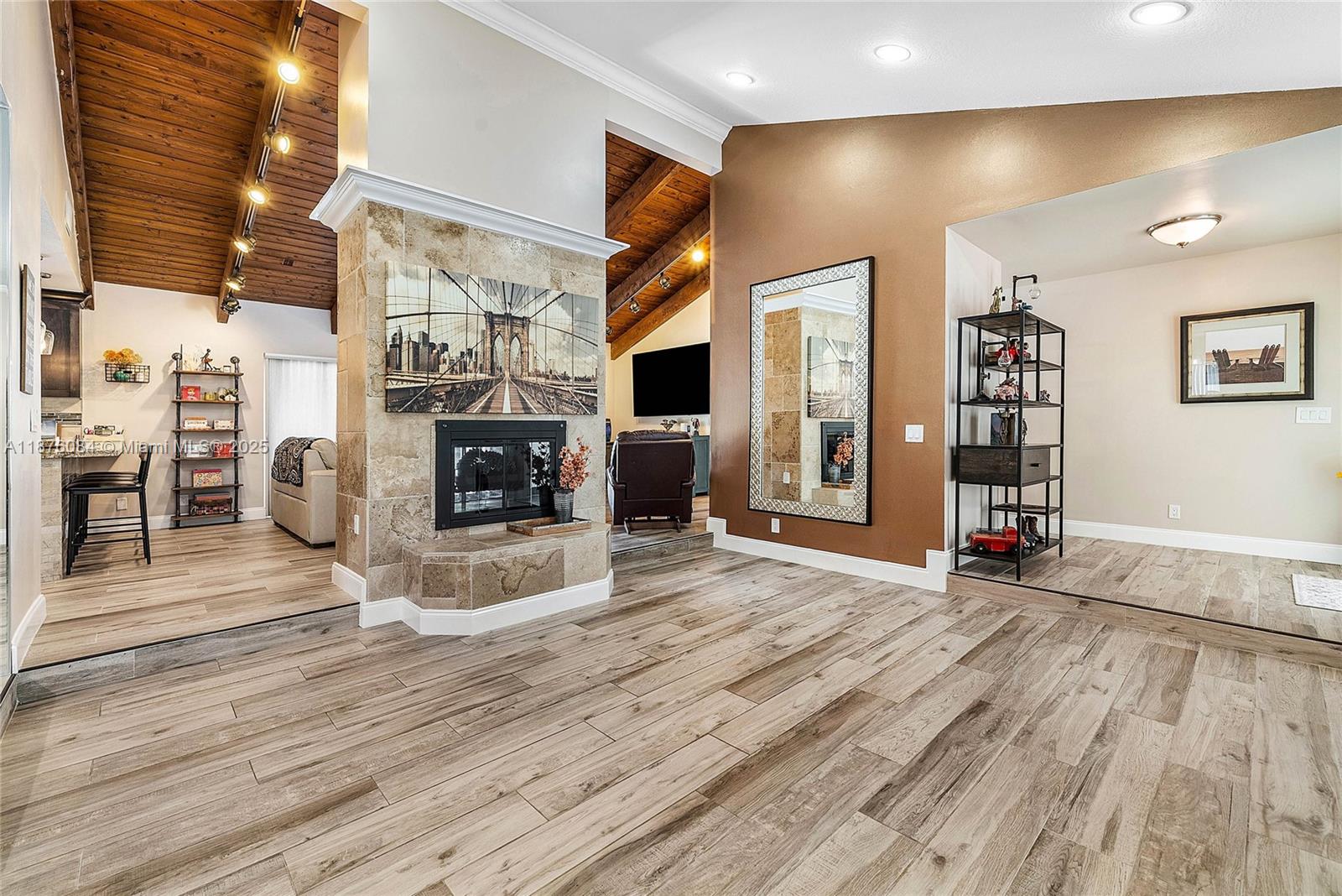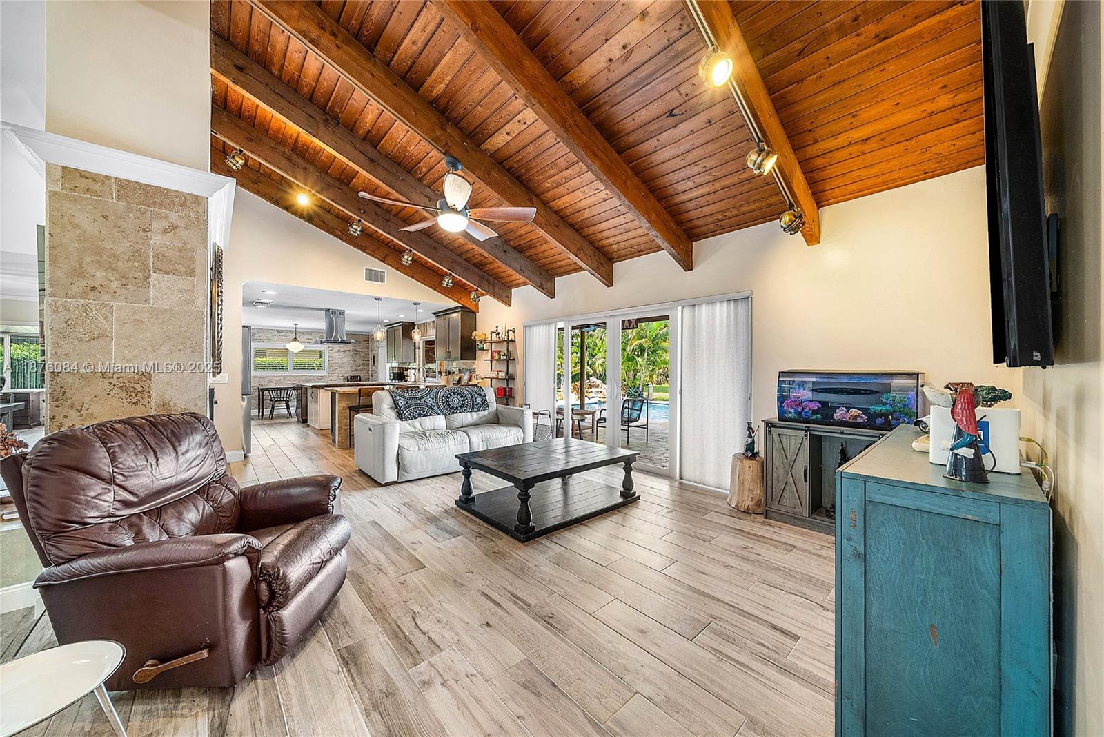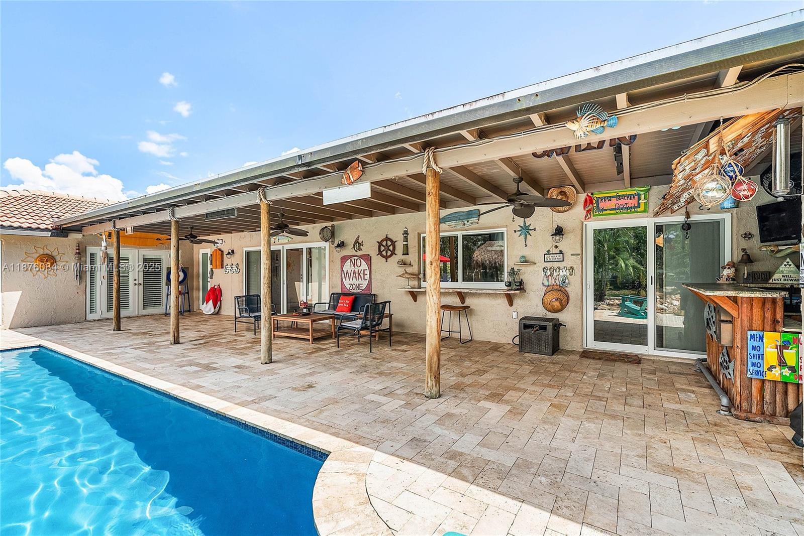 Imagine having everything you ever wished for in a house, and then seeing that house available to you right now. Come up the circular driveway and notice the brickwork, the tile roof, the granite along the front porch, the Euro front door, and you feel like you’re somewhere in the Mediterranean. Inside, the family room features porcelain tile flooring, pitched ceilings, and the grandiose travertine-lined double-sided fireplace as a focal point. Next, arrive in the updated kitchen and nook with well-appointed 42” cabinetry “all the way up”, stainless appliances, and an island with electric cooktop, hood vent and custom triple pencil edge granite. The house features 4 full bedrooms + office, with every detail having been updated! But then, the best part awaits you when you step out back...