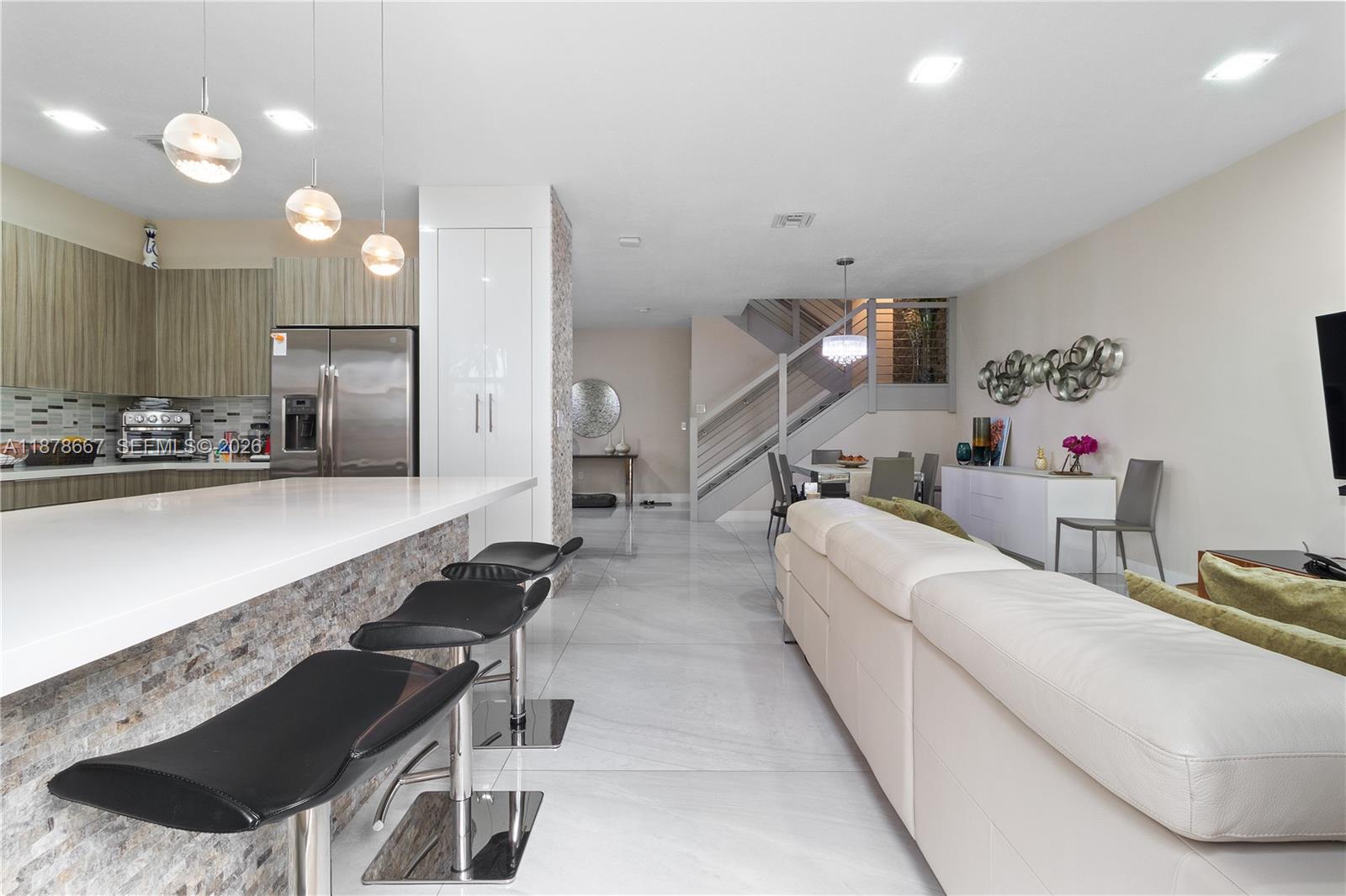 Extraordinary corner Townhouse, combines elegance, comfort and modern living, Enjoy the numerous upgrades like Hunter Douglas blinds, retractable patio roof, second refrigerator, kitchen with quartz countertops, stainless steel appliances, and custom cabinetry, as well as luxury bathrooms with designer finishes. Delight open concept living with high end flooring & contemporary lighting. Located in a sough after community offering amenities such as a beautiful Grand Central Club house, this move in ready home also provides easy access to shopping, dining and excellent schools. Making it the perfect blend of style and functionality!